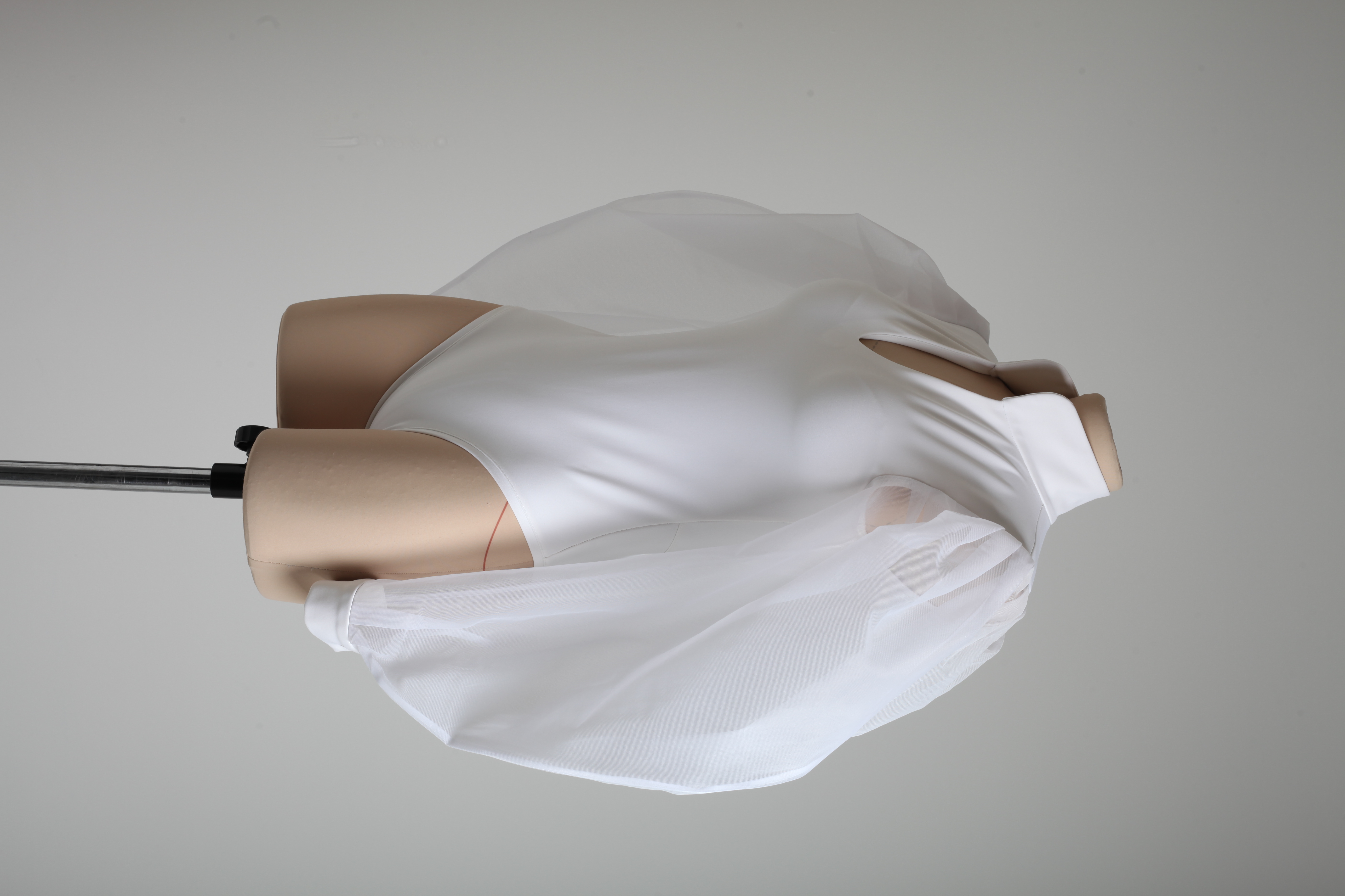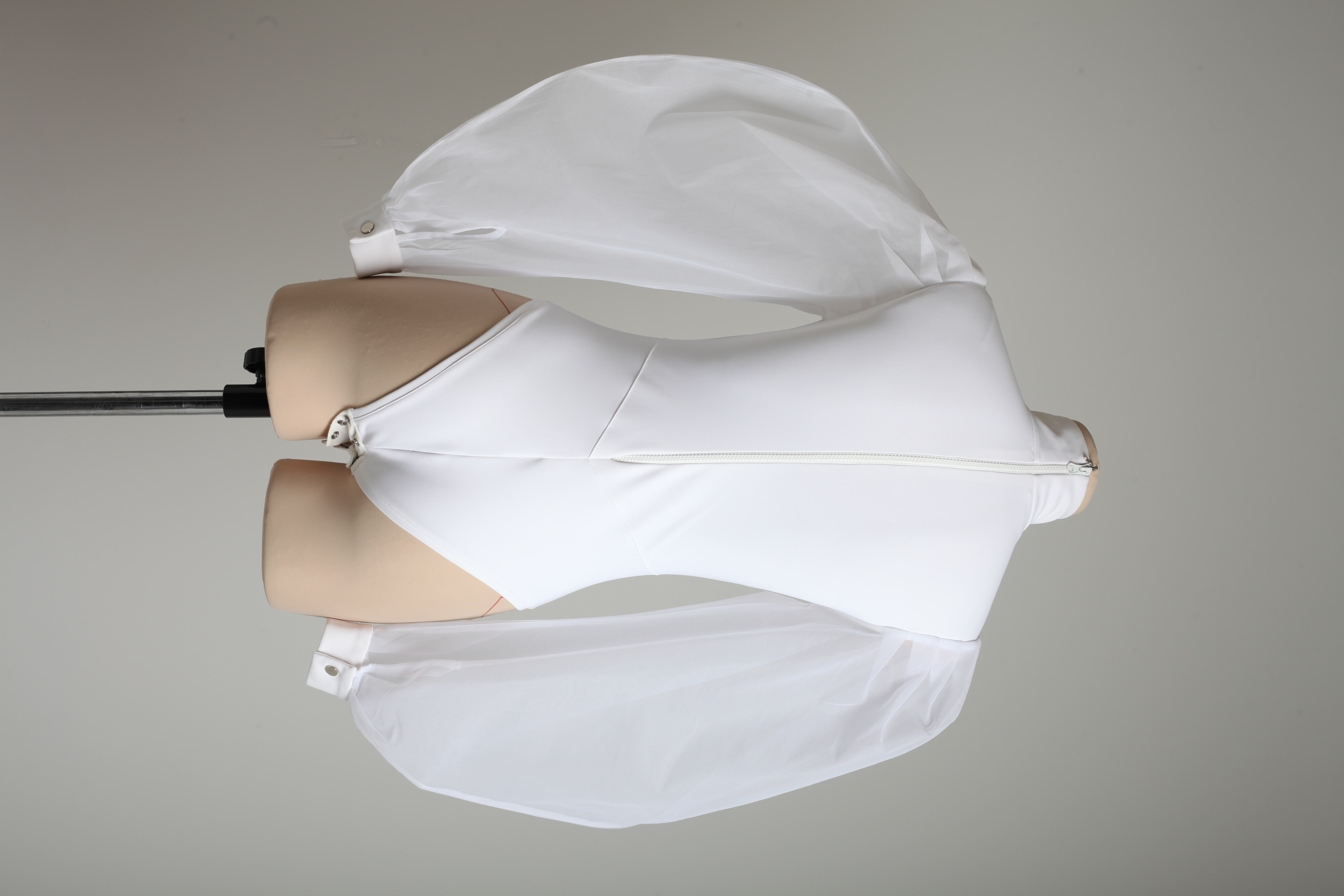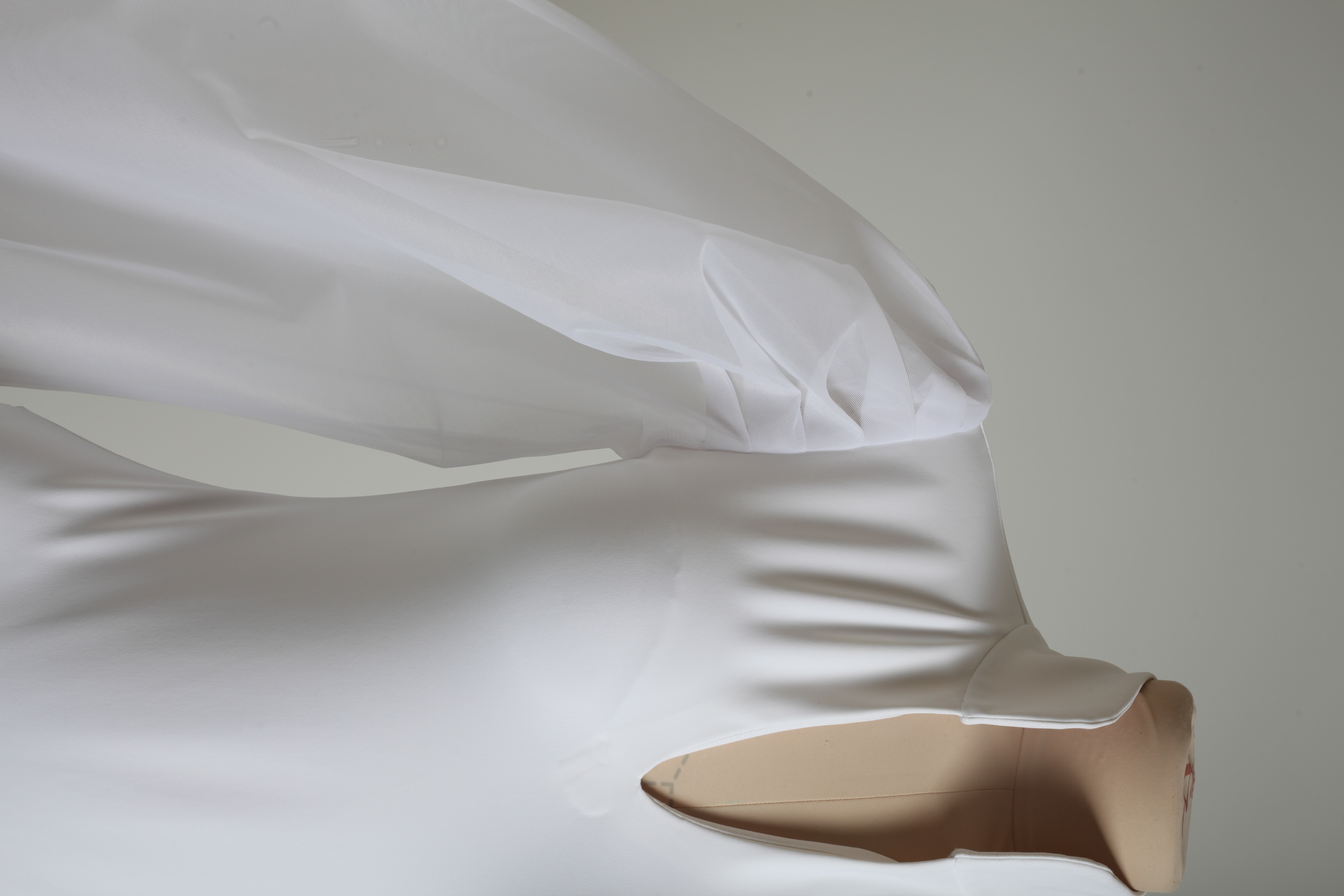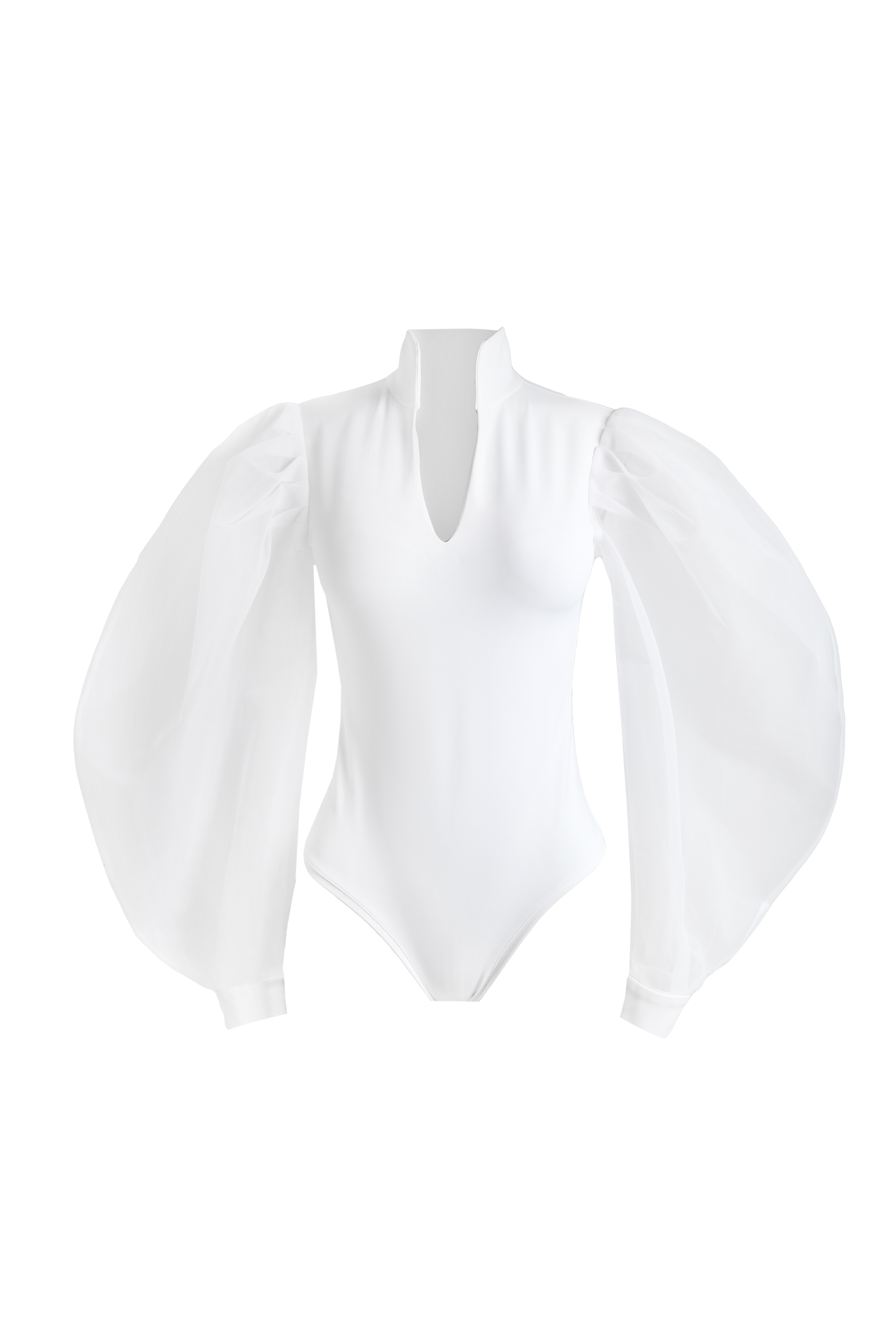 Боди белое из бифлекса с прозрачными объемными рукавами