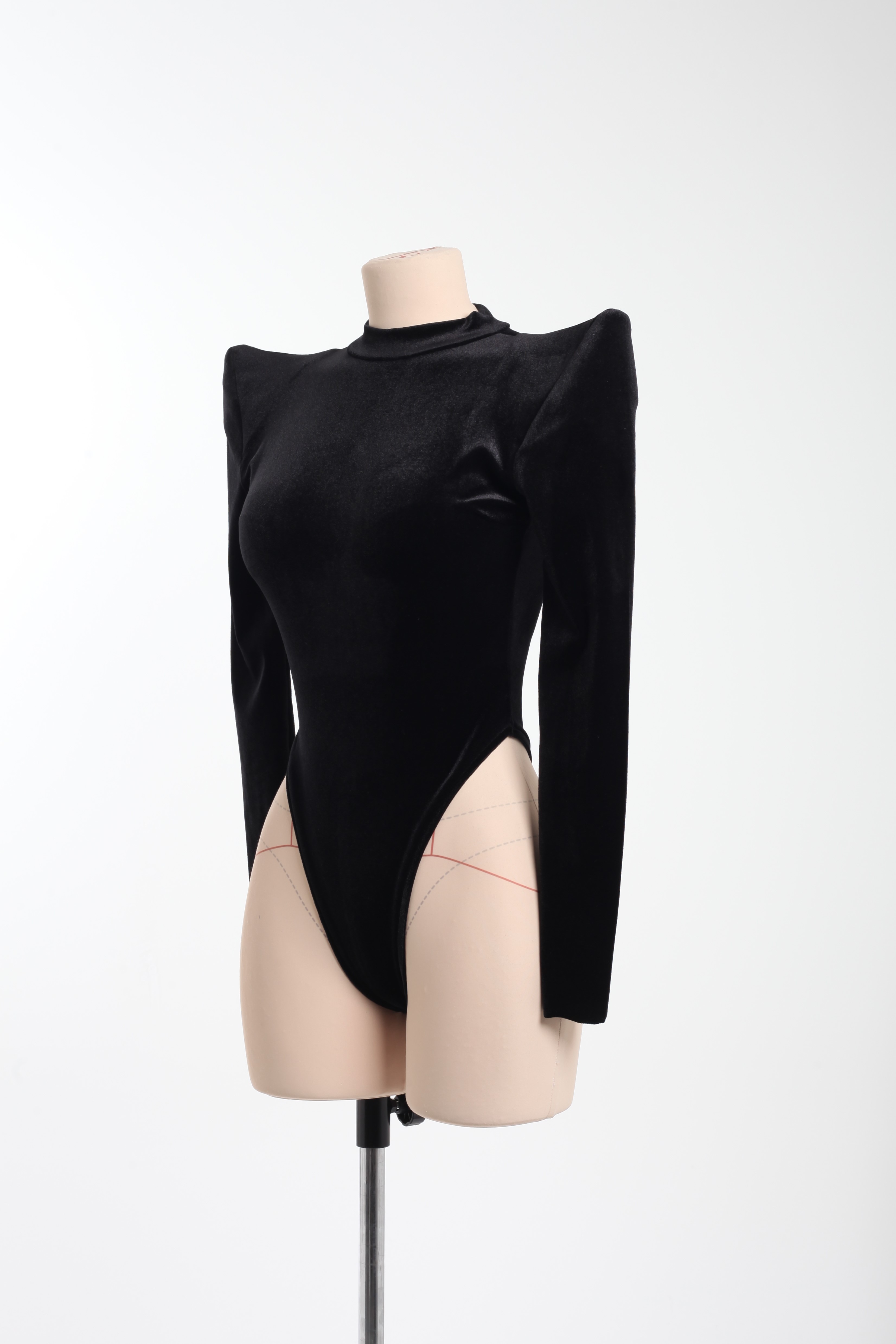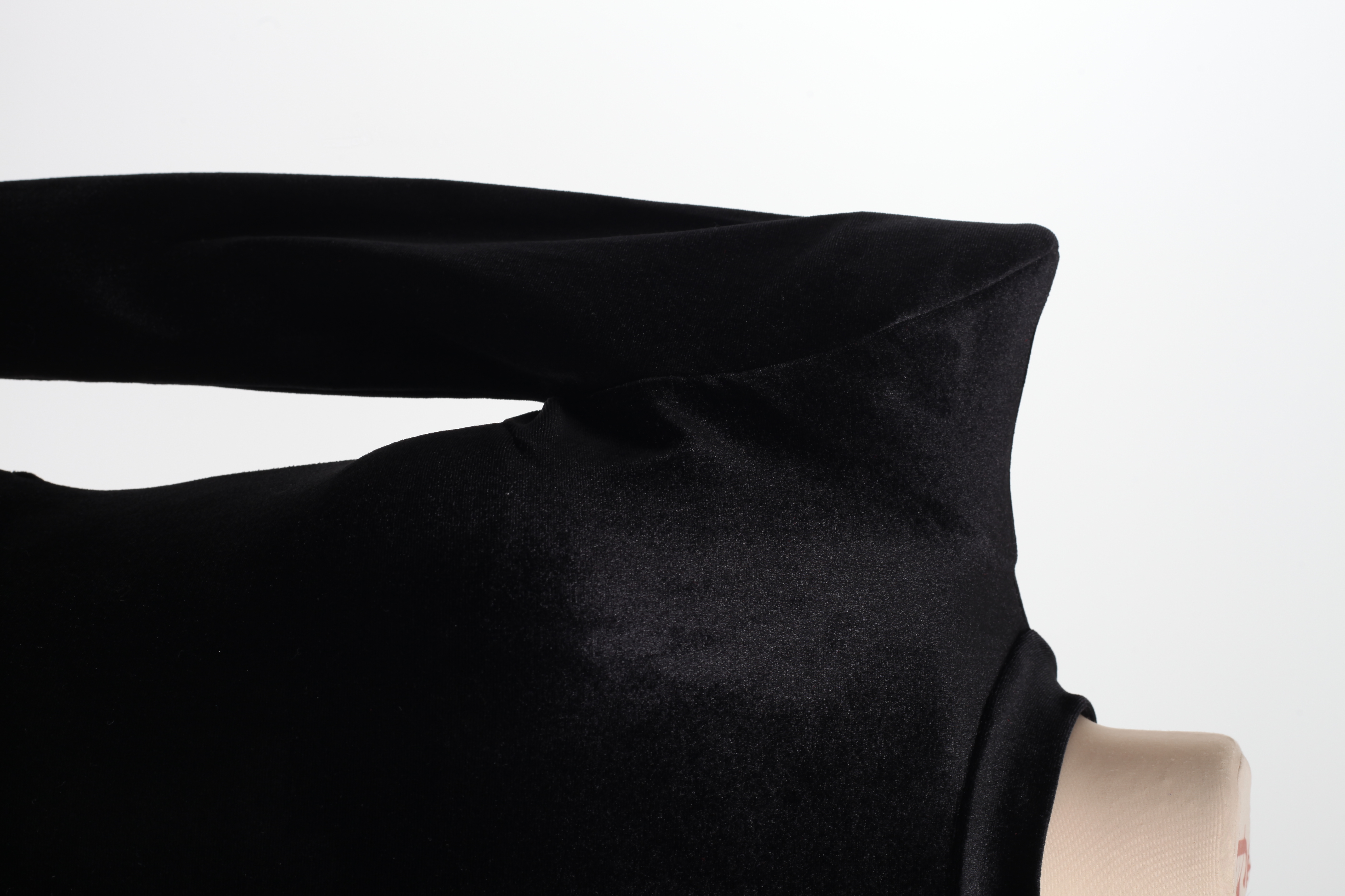Боди черное бархатное с заостренными плечами