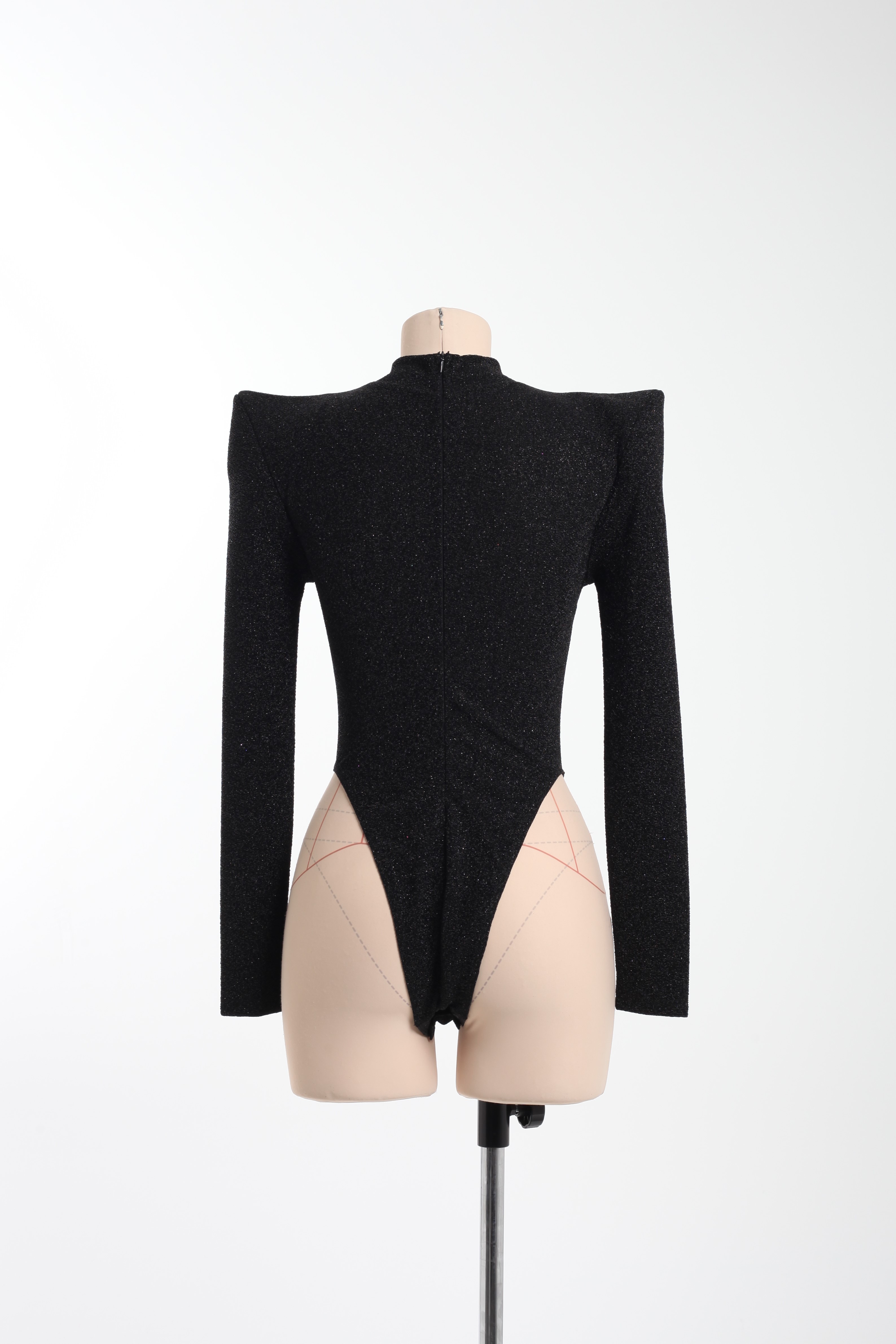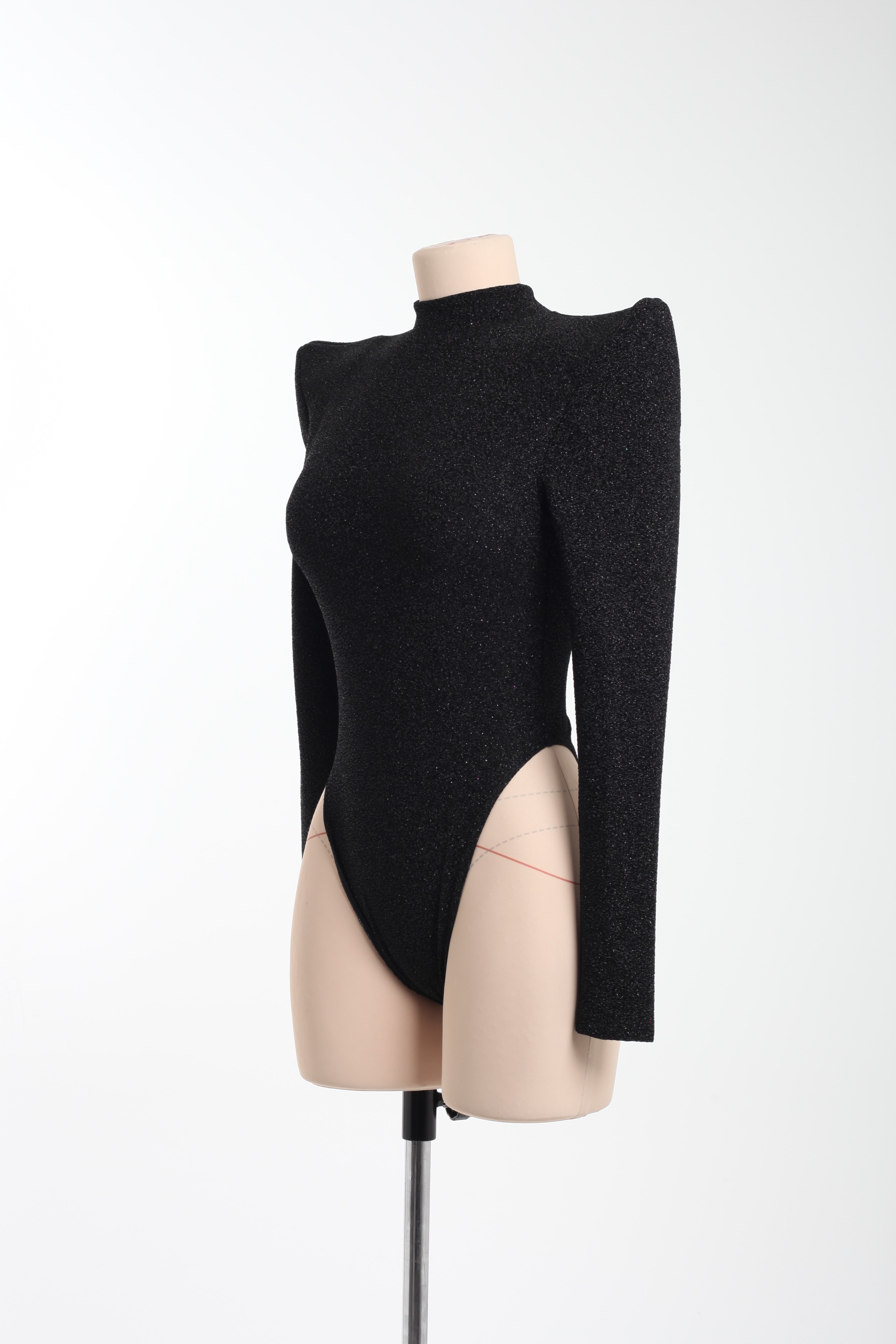Боди черное из блестящей ткани с люрексовой нитью и акцентными плечами - уникальная вещь для создания неповторимого образа. Высокое качество исполнения и внимание к деталям. Материал черная ткань с люрексовой нитью подчеркивает качество и статусность изделия. Доступны размеры: XS,S,M. Идеально для фотосессий, особых мероприятий и создания образов мечты!