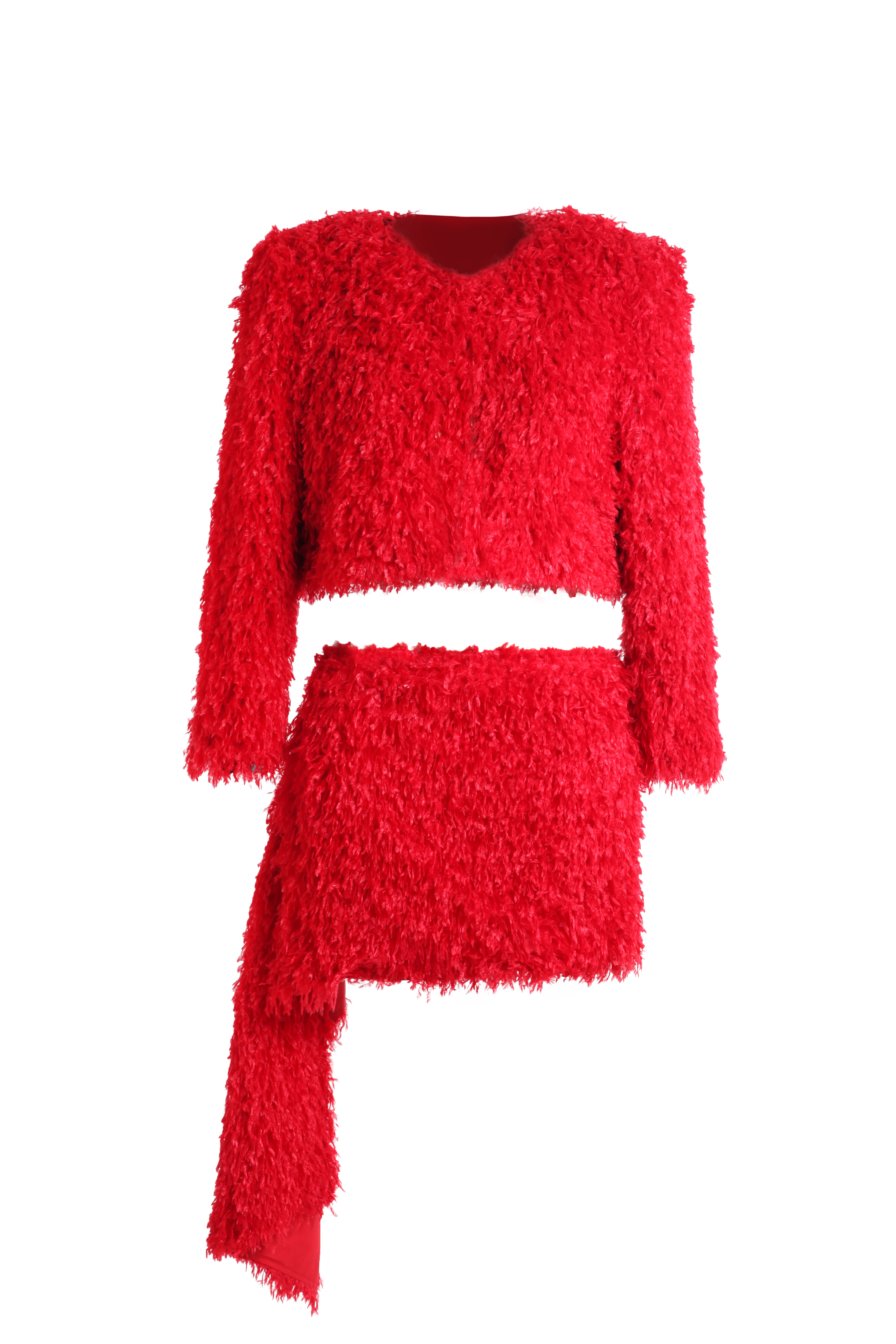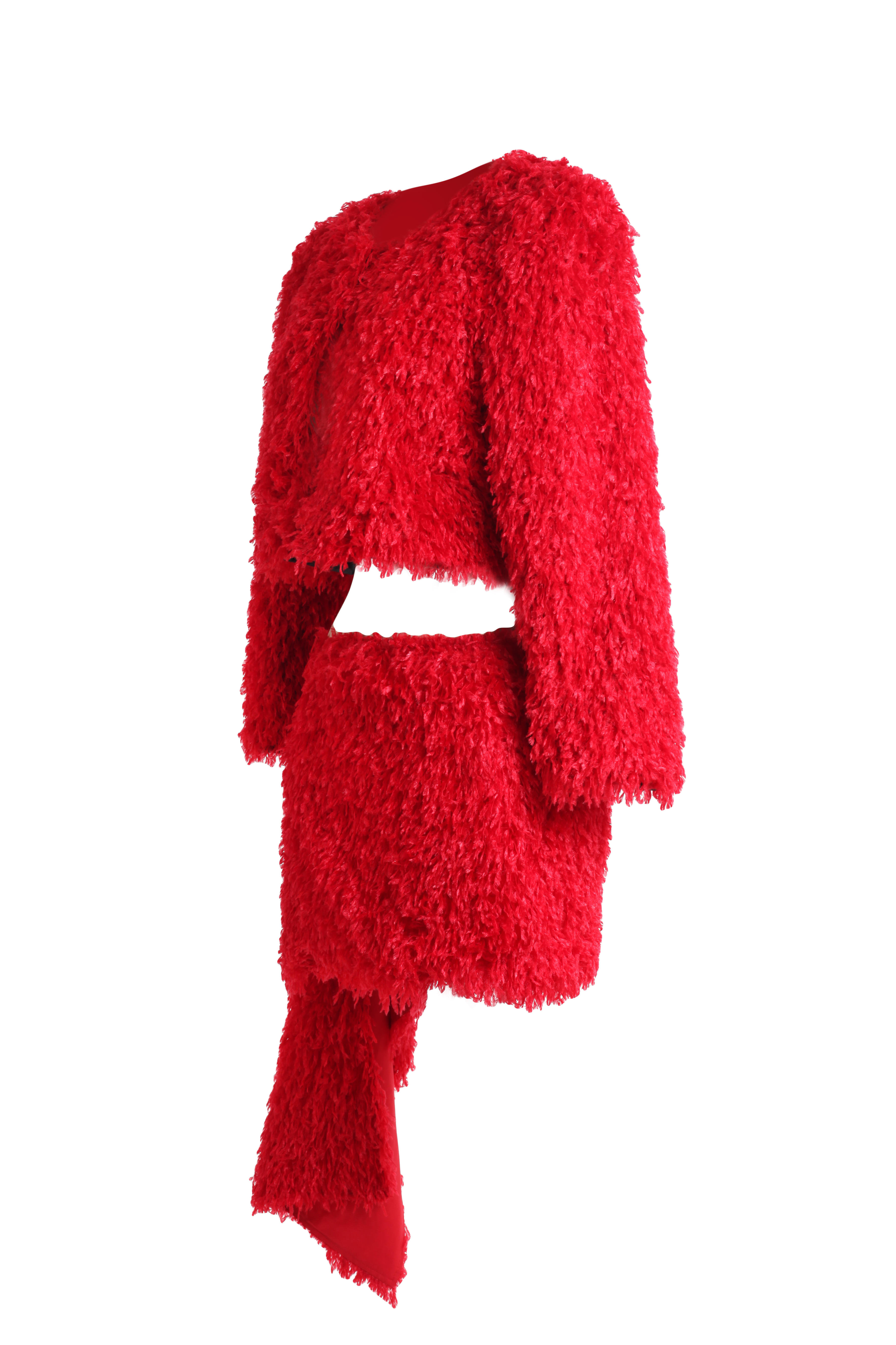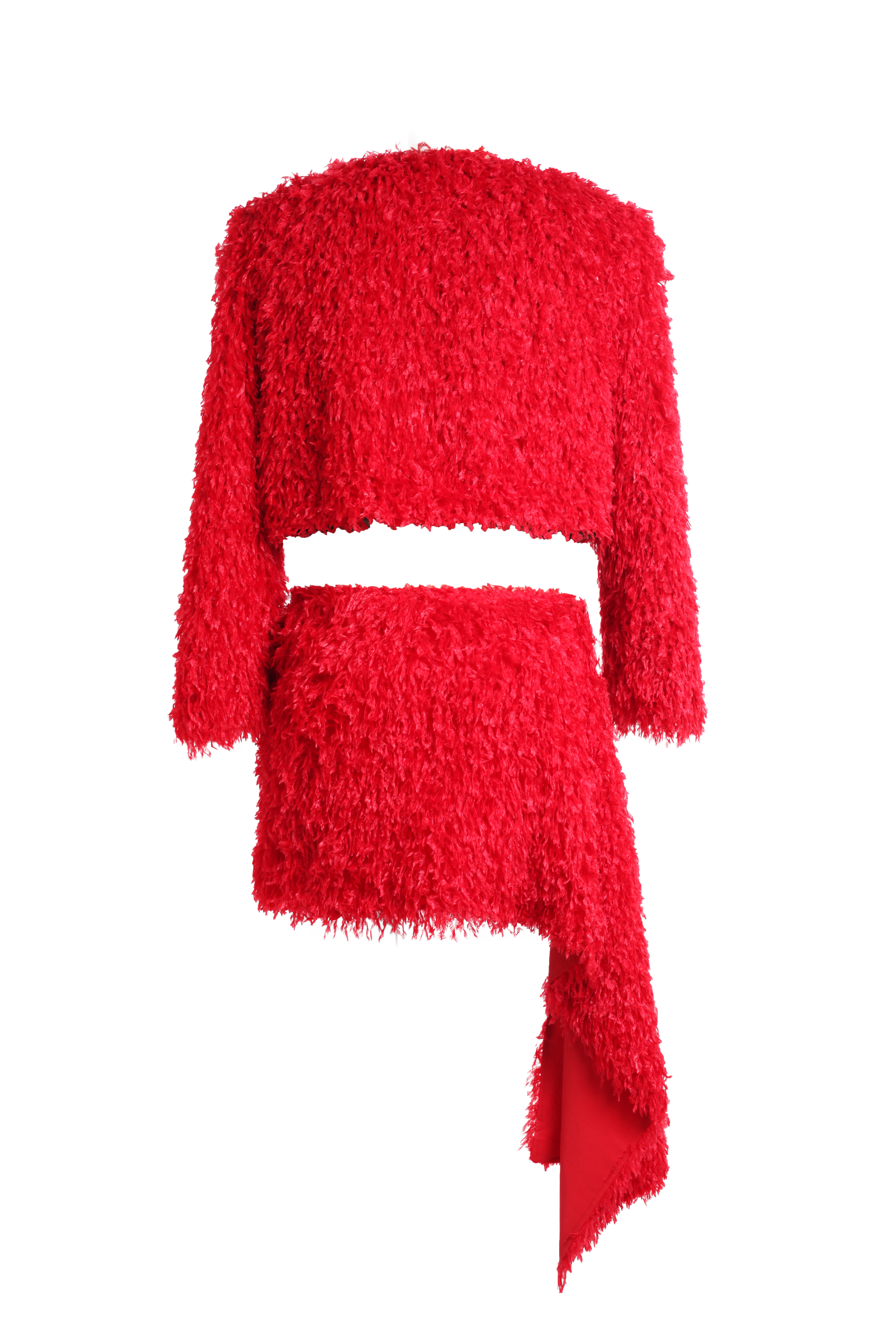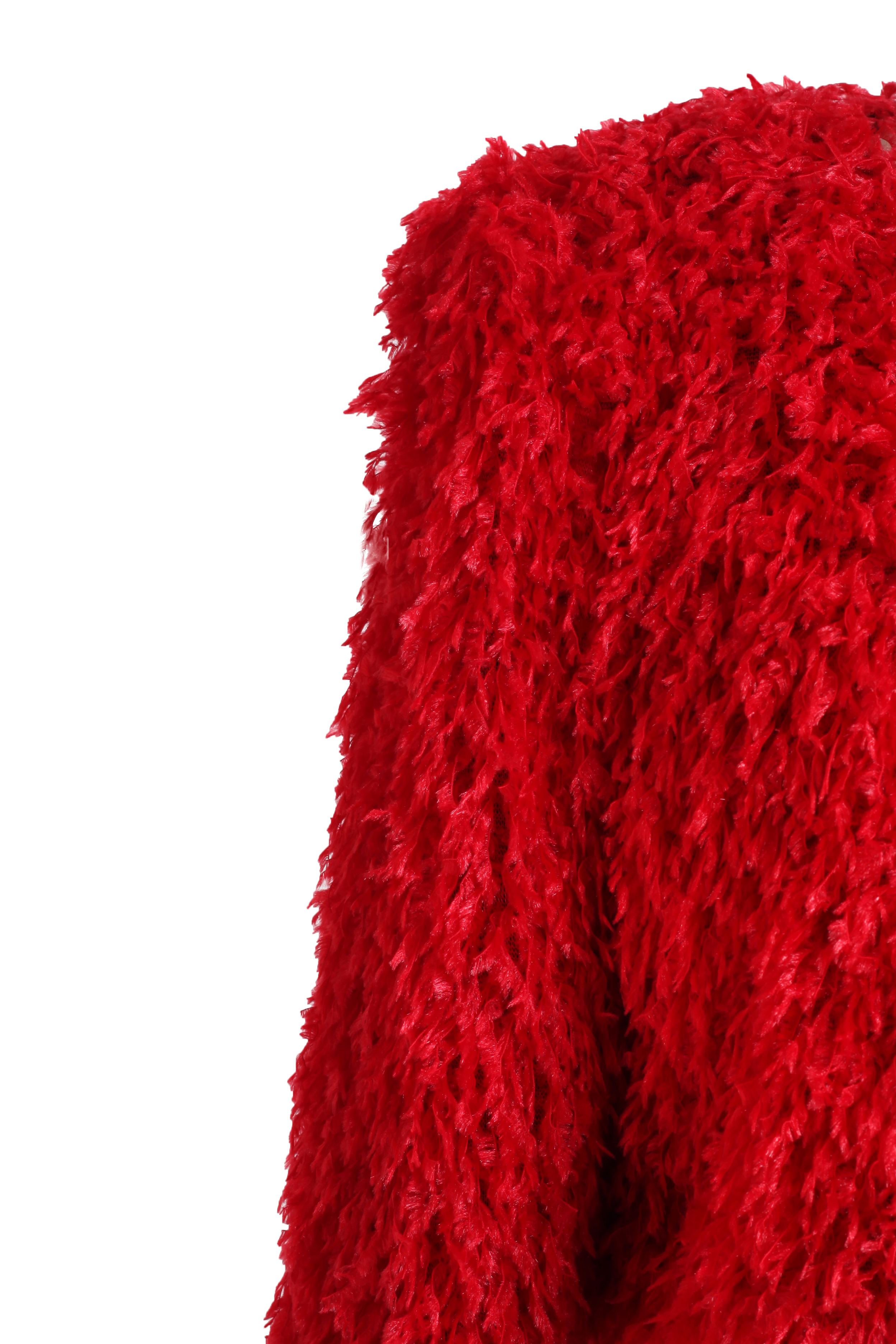 Жакет -накидка красный с имитацией перьев