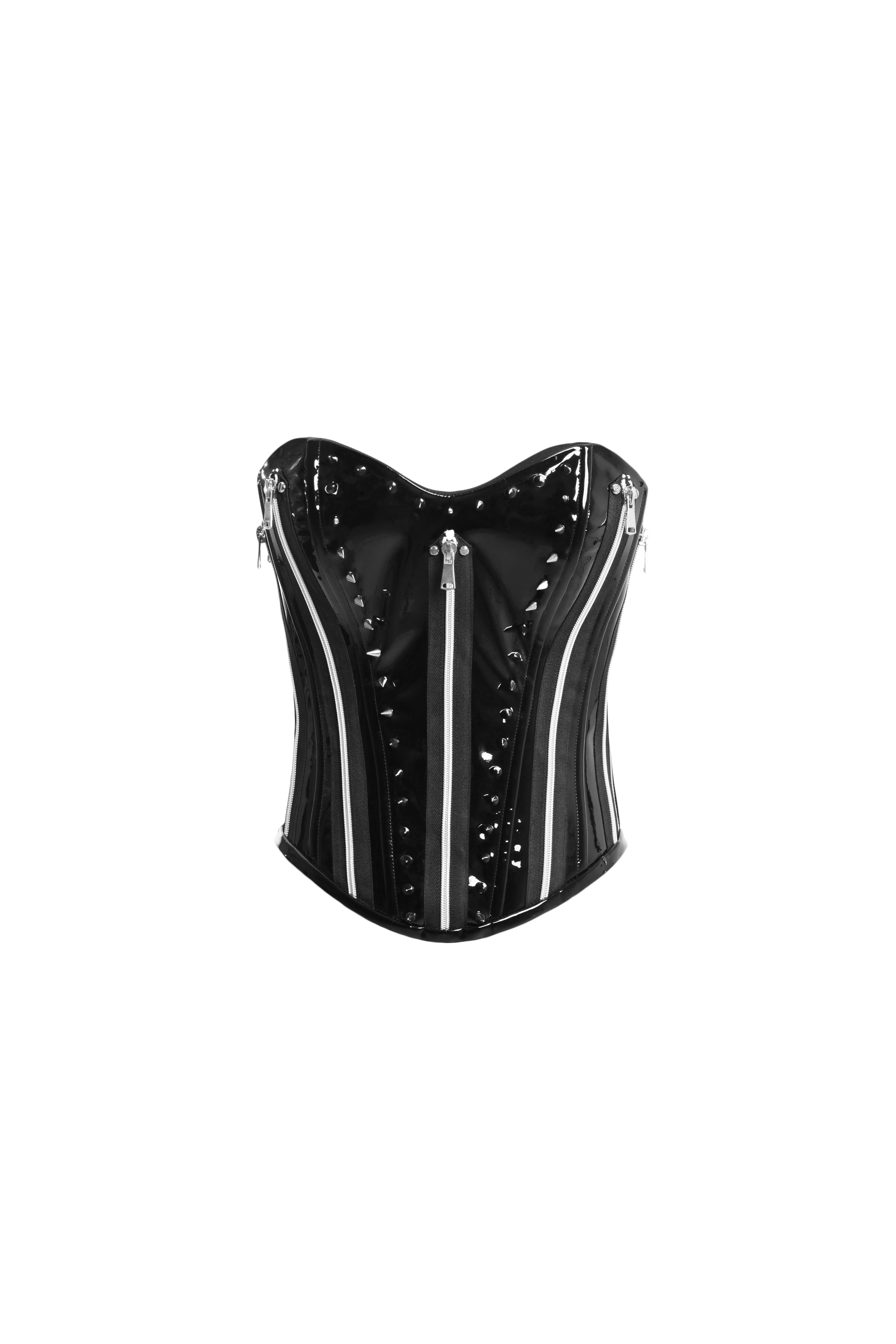 Корсет черный из лака с молниями и шипами