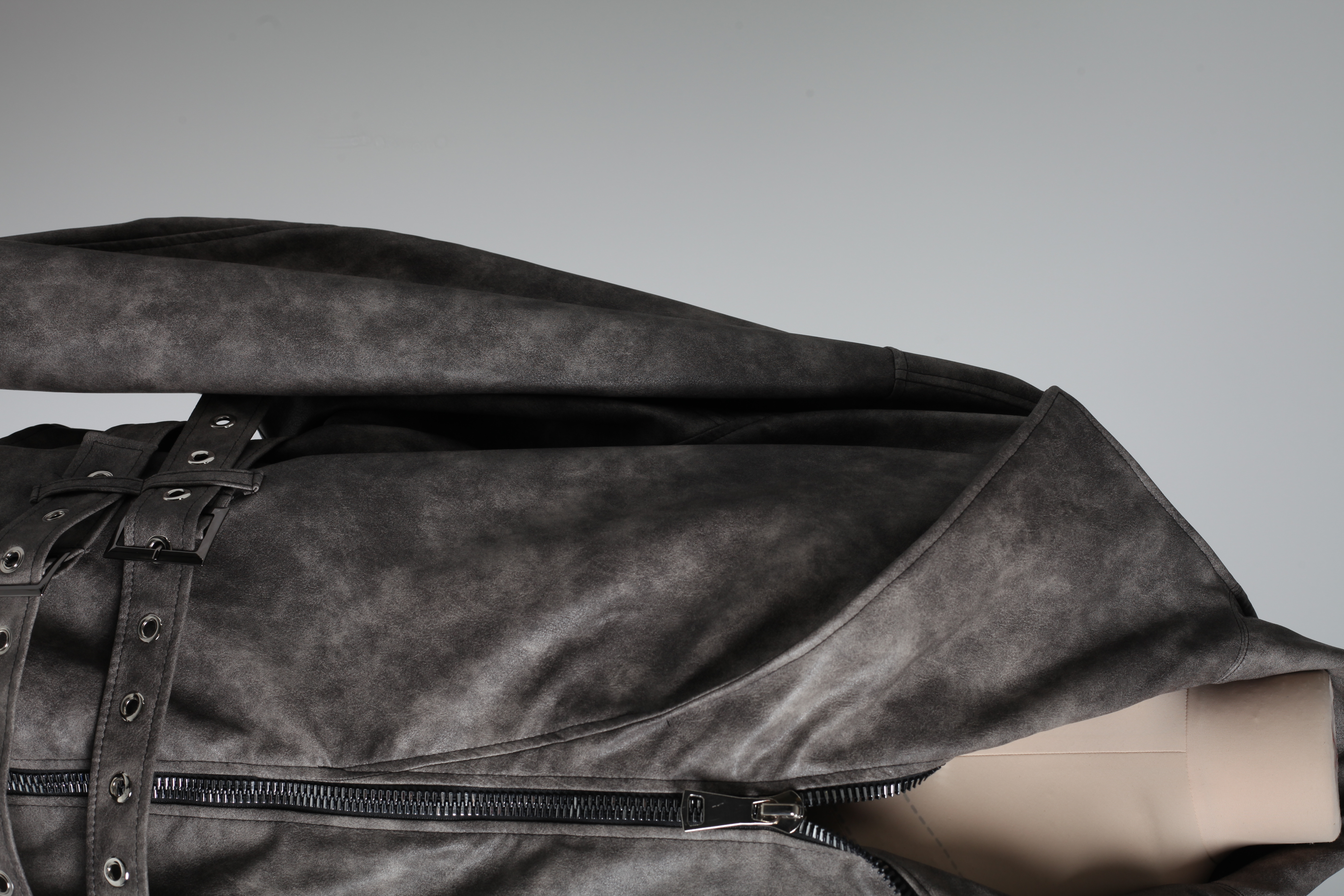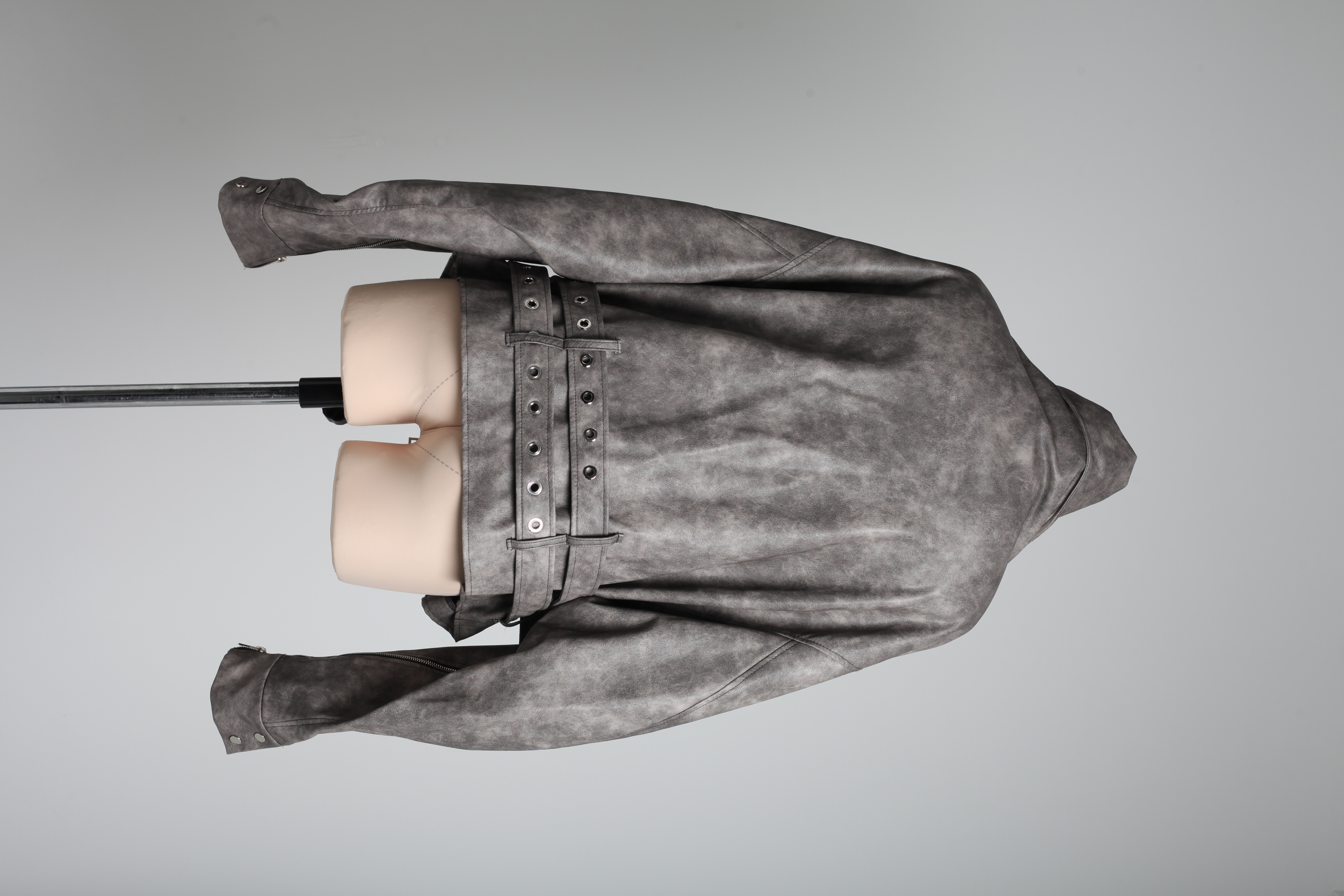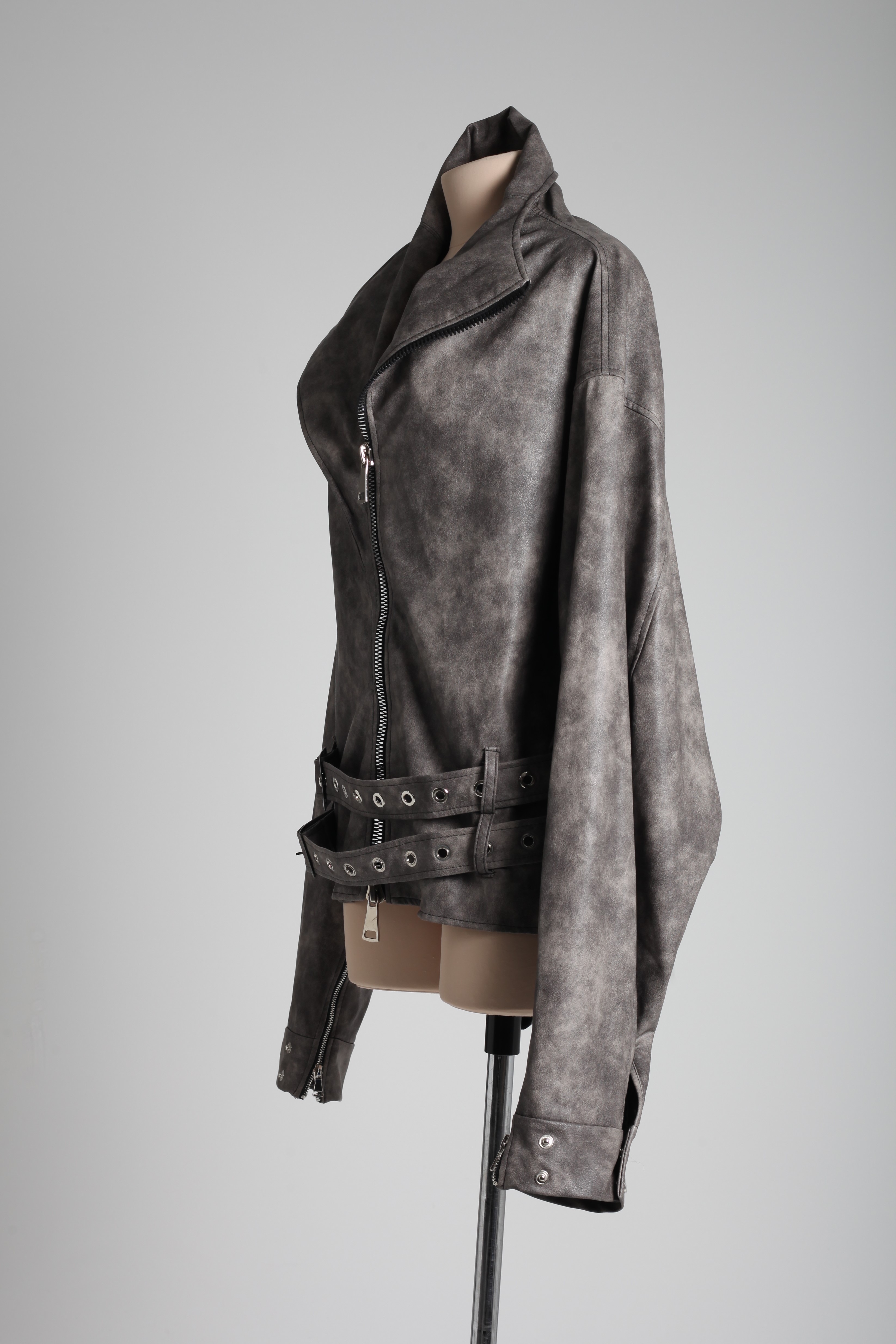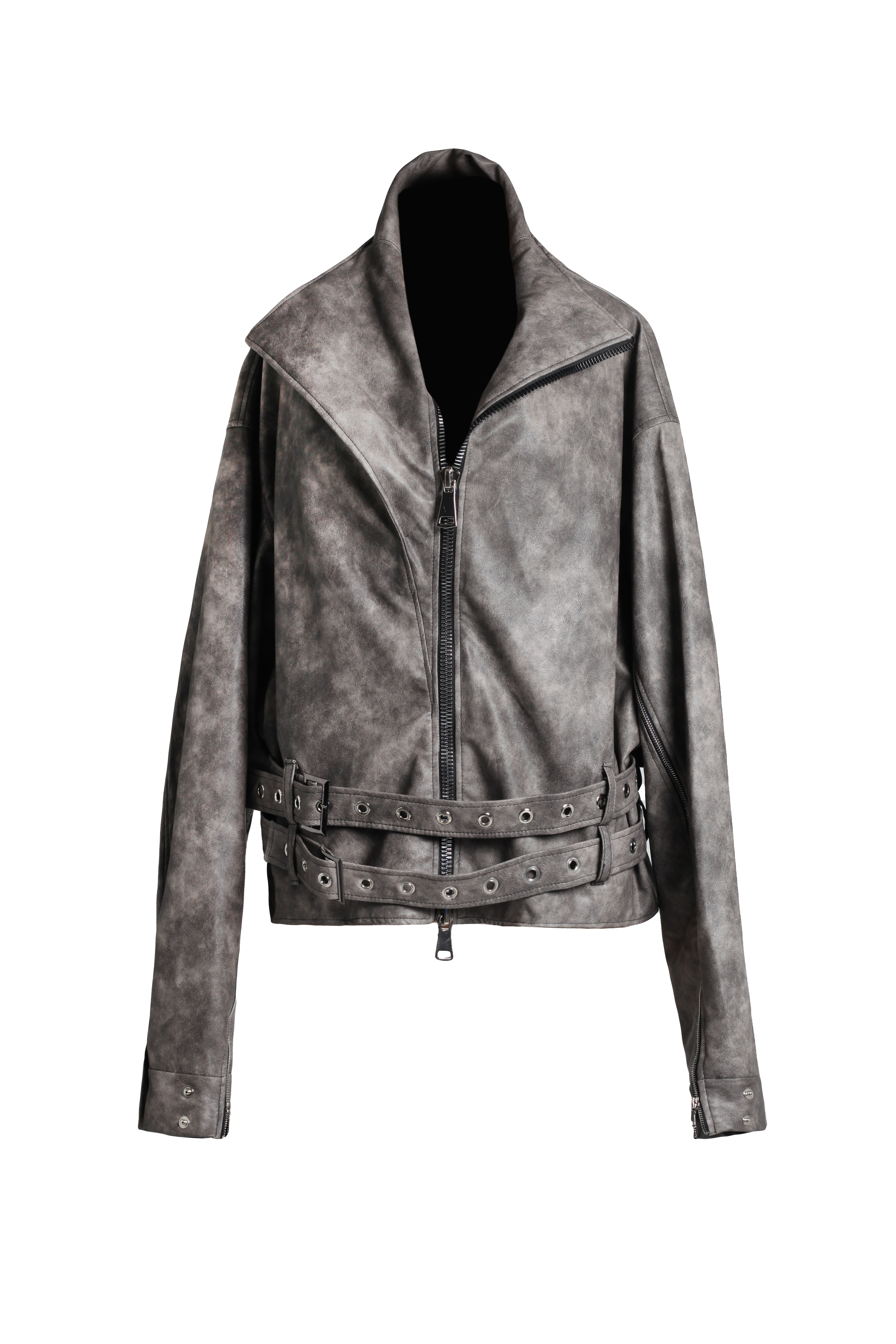 Куртка серо-коричневая из экокожи с двумя ремнями