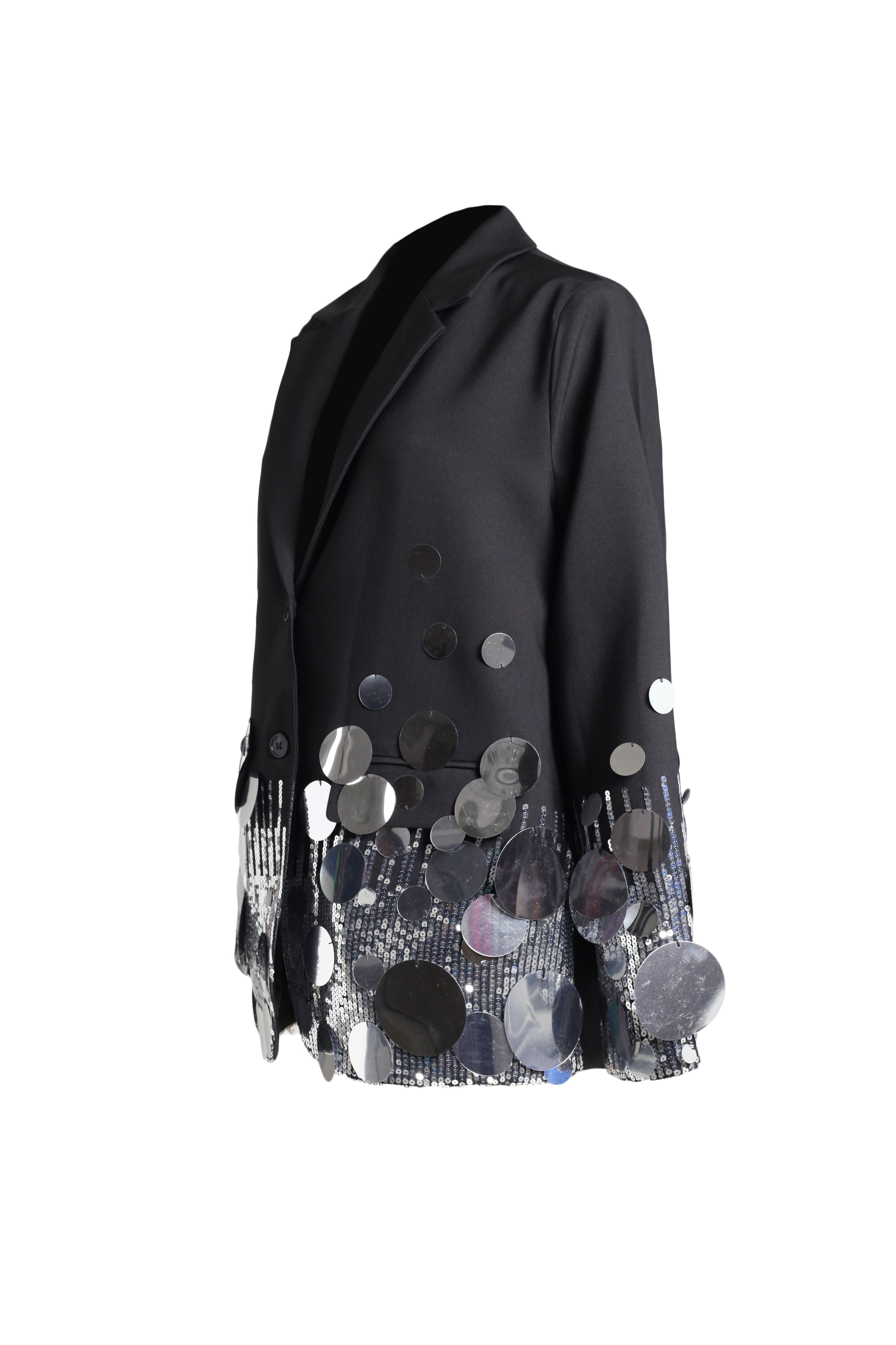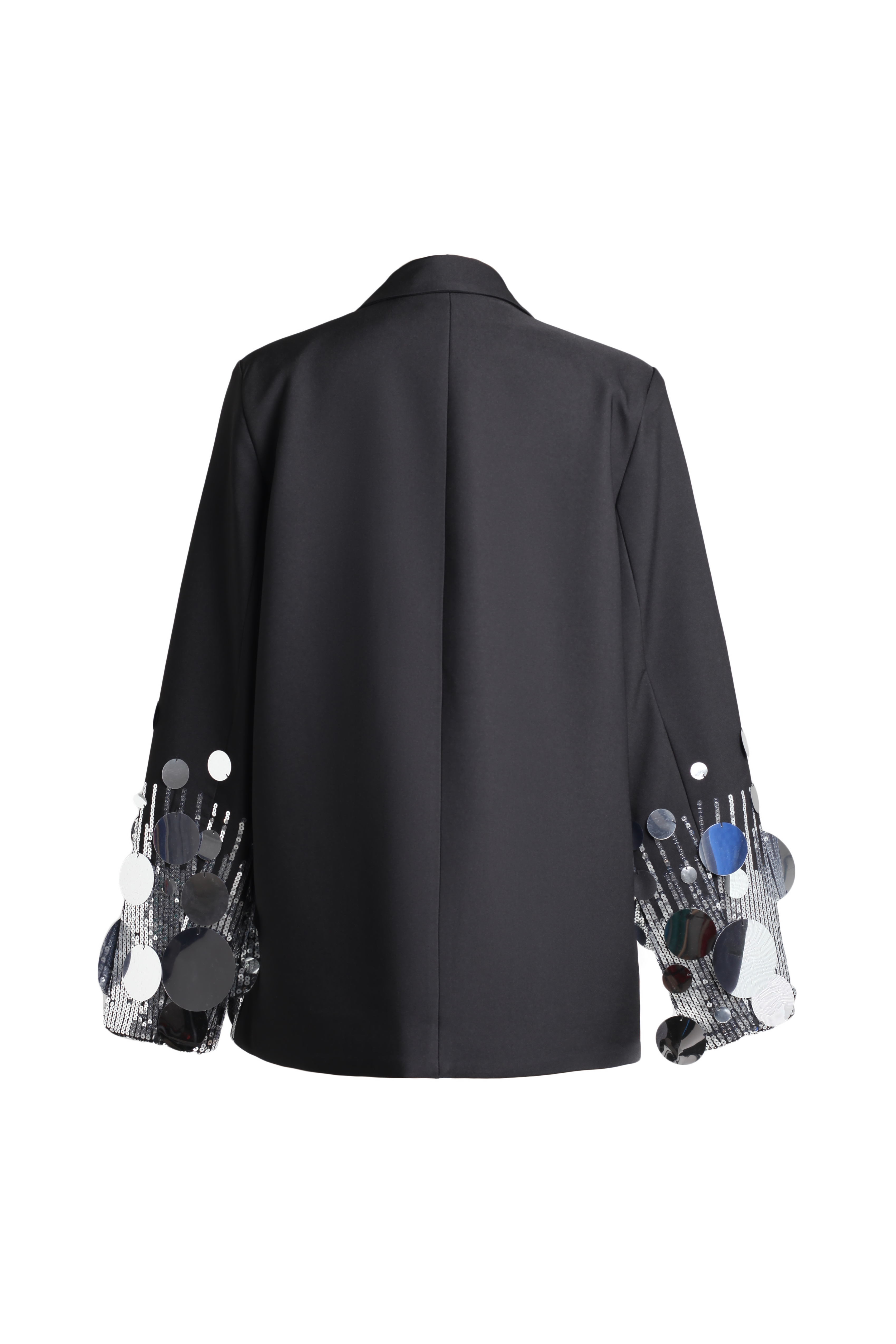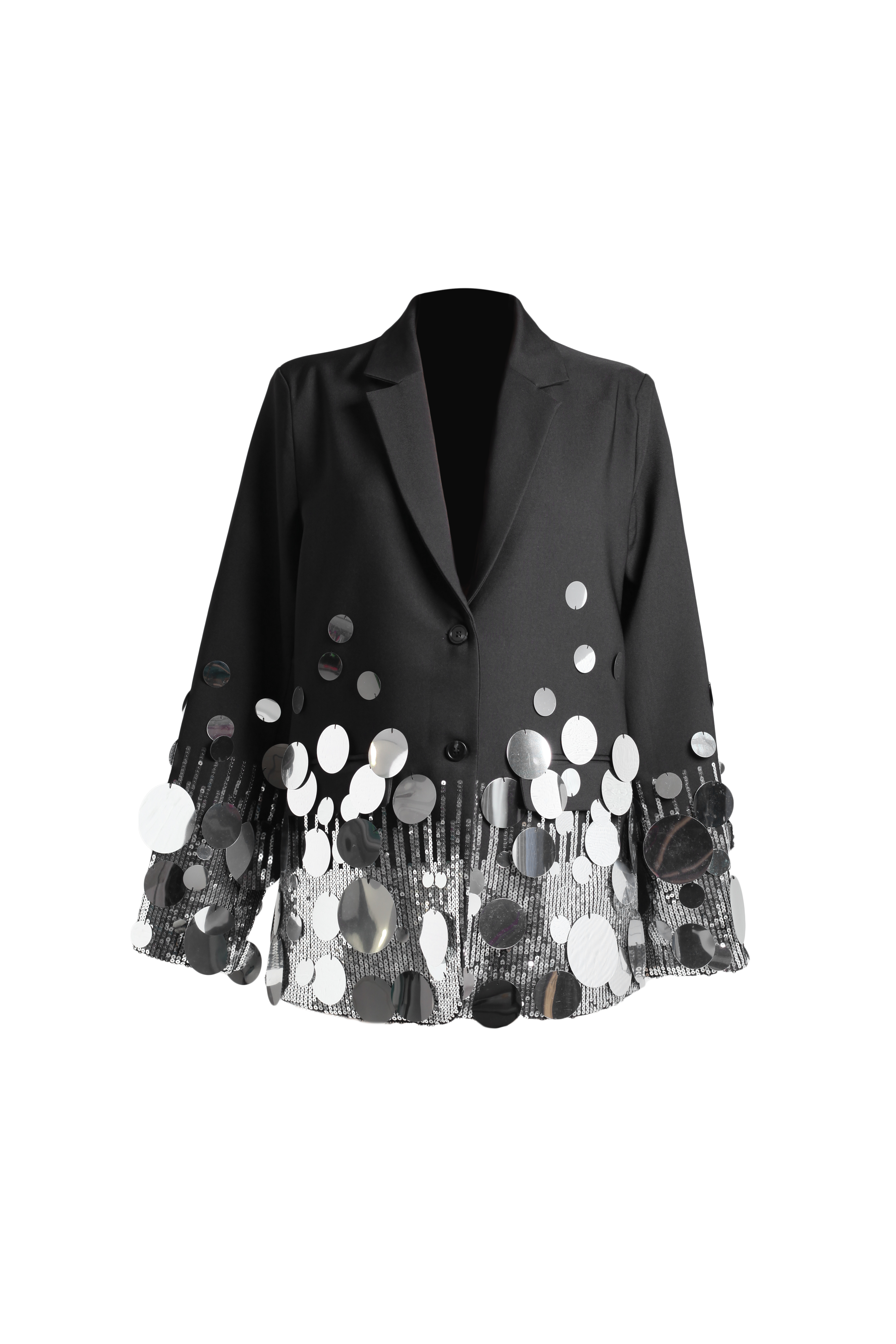 Пиджак черный из костюмной ткани с отделкой из крупной и мелкой пайетки