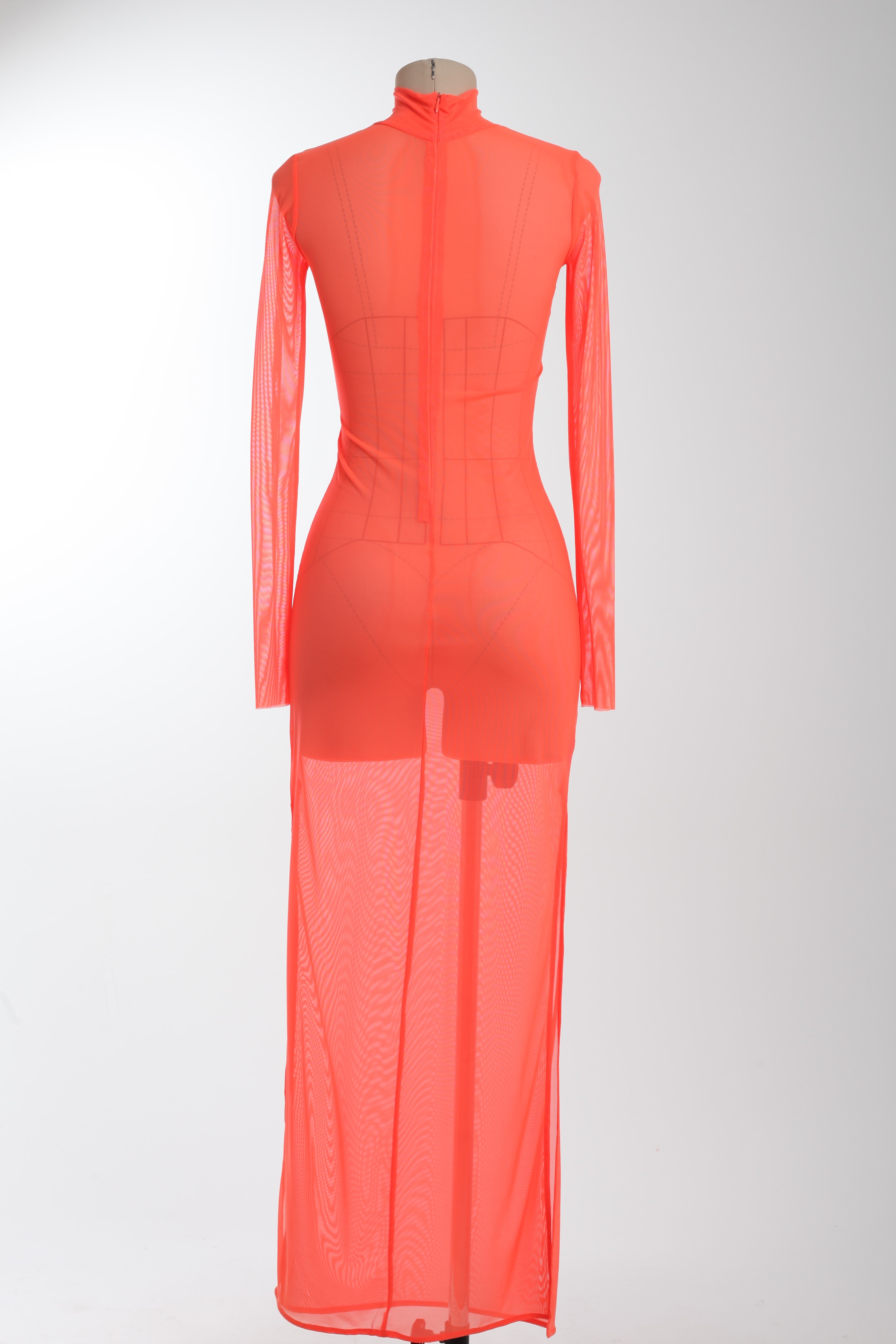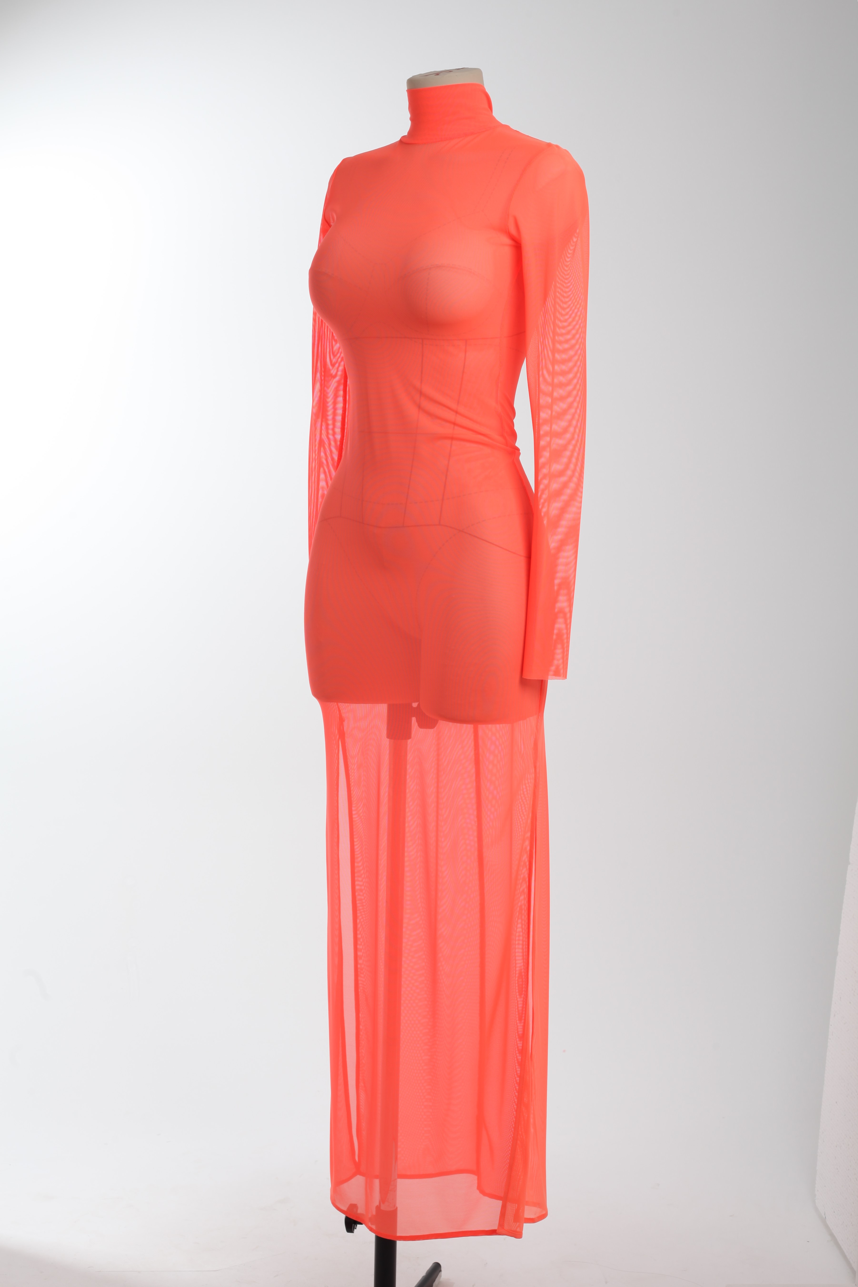 Платье длинное из мелкой сетки, с длинными рукавами и горлом