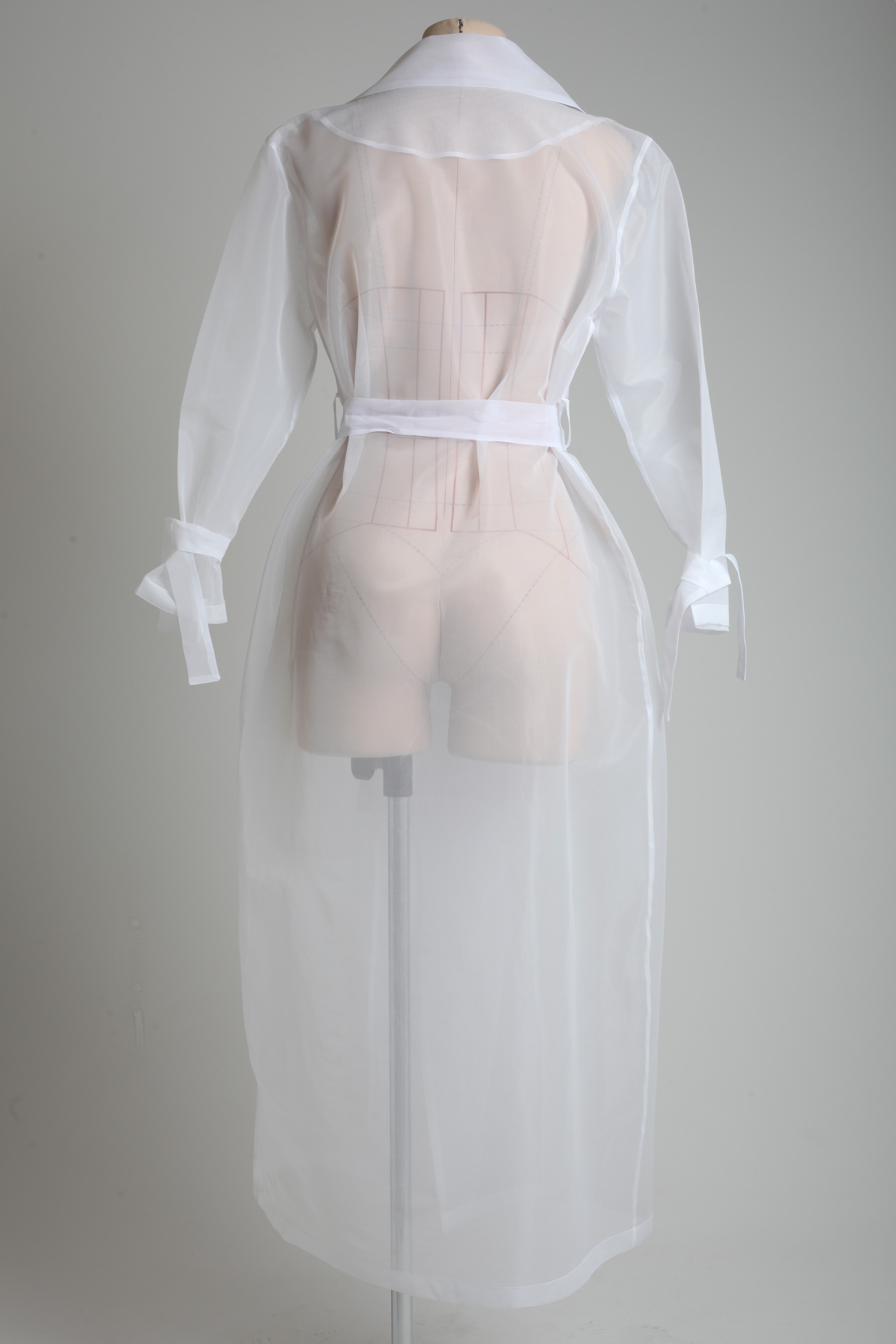 Тренч прозрачный белый из корсетной сетки