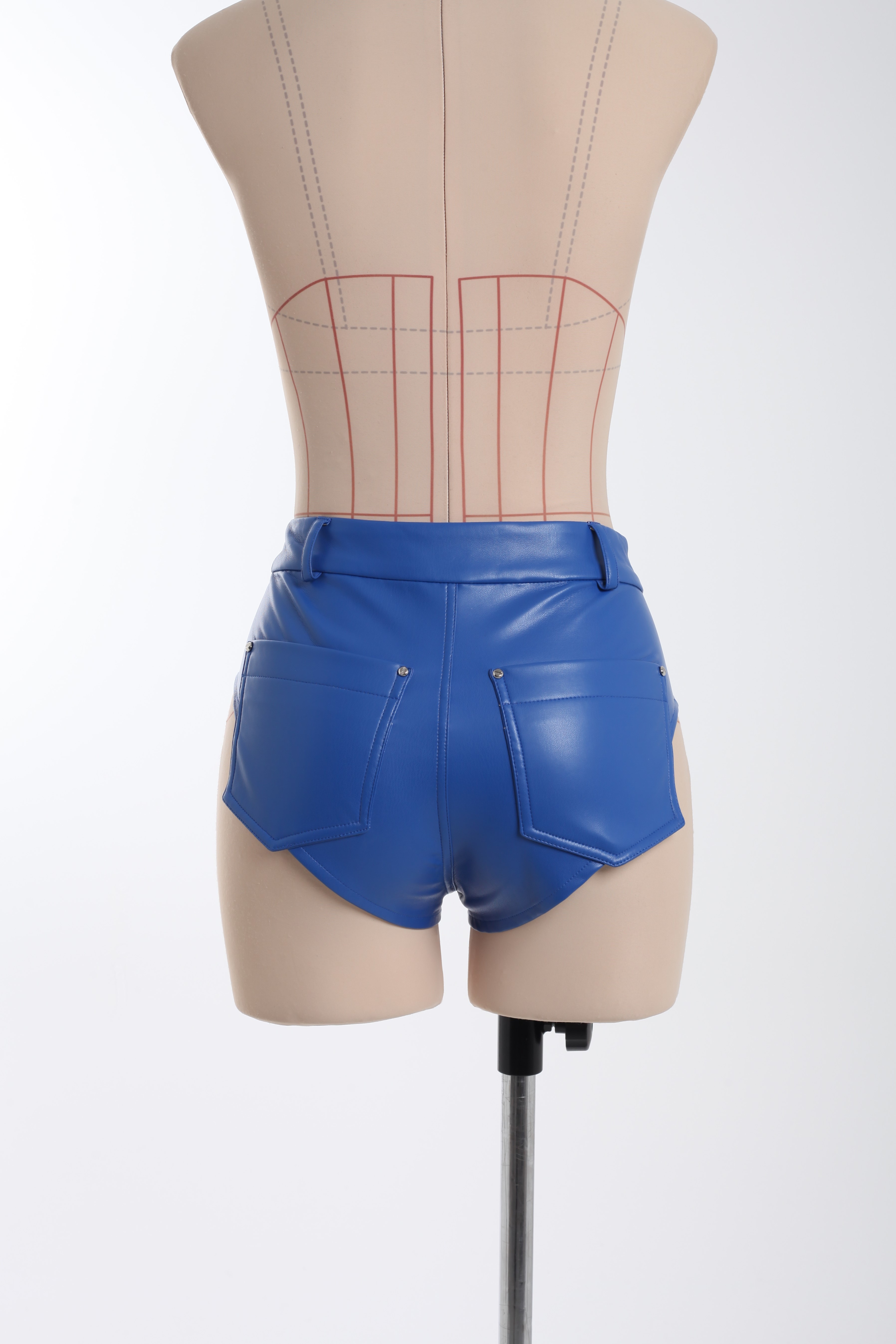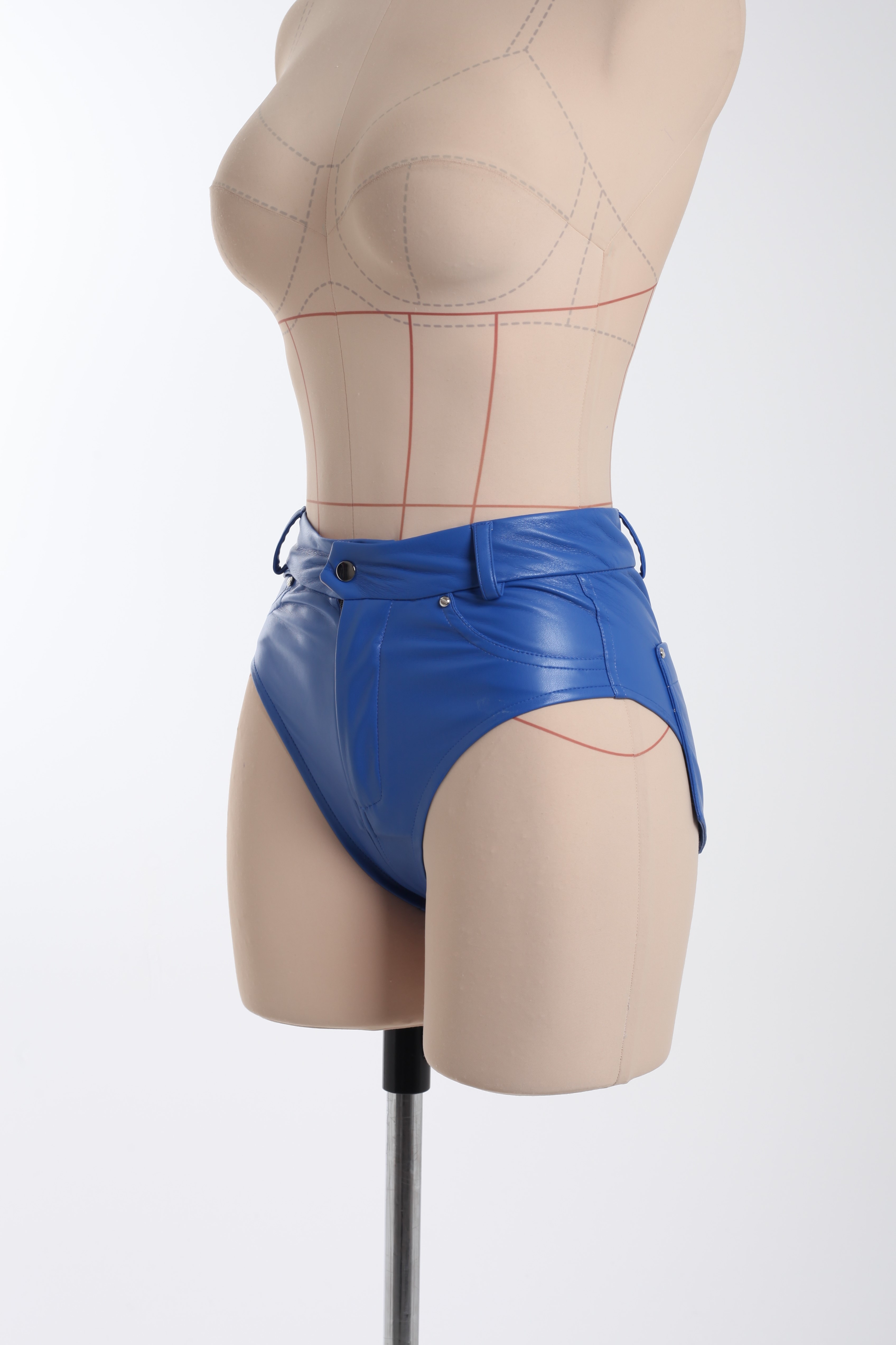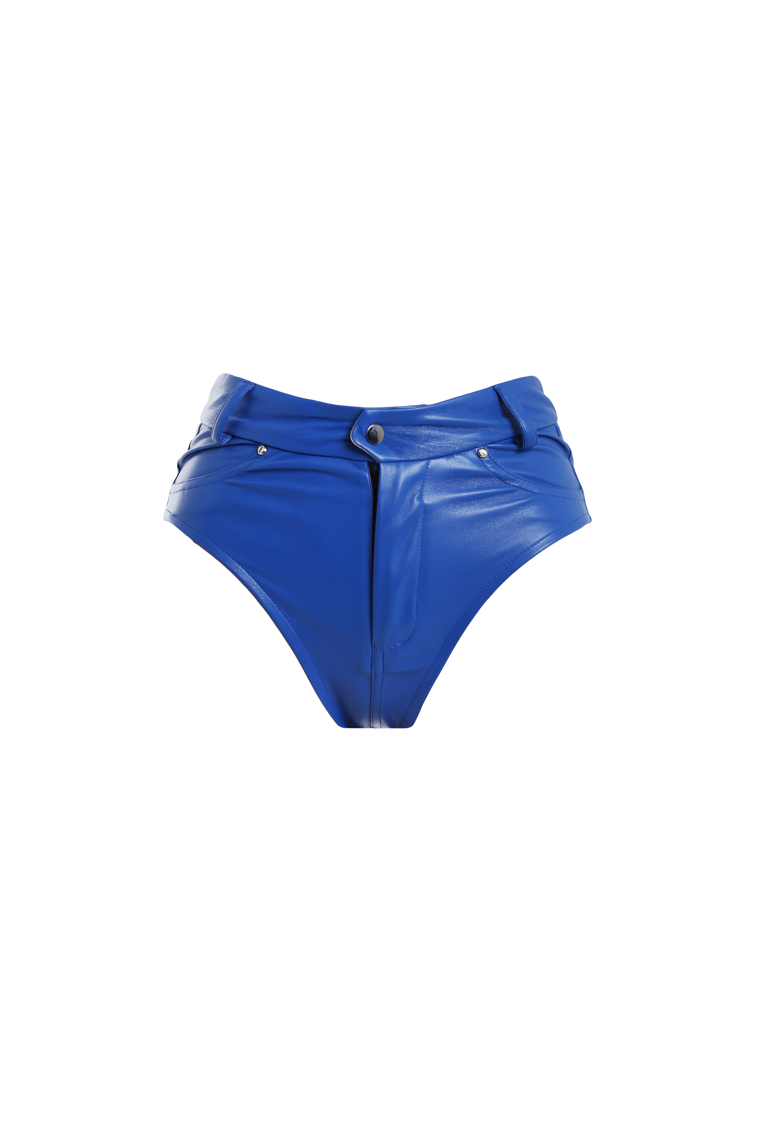Трусы синие из эко-кожи с карманами