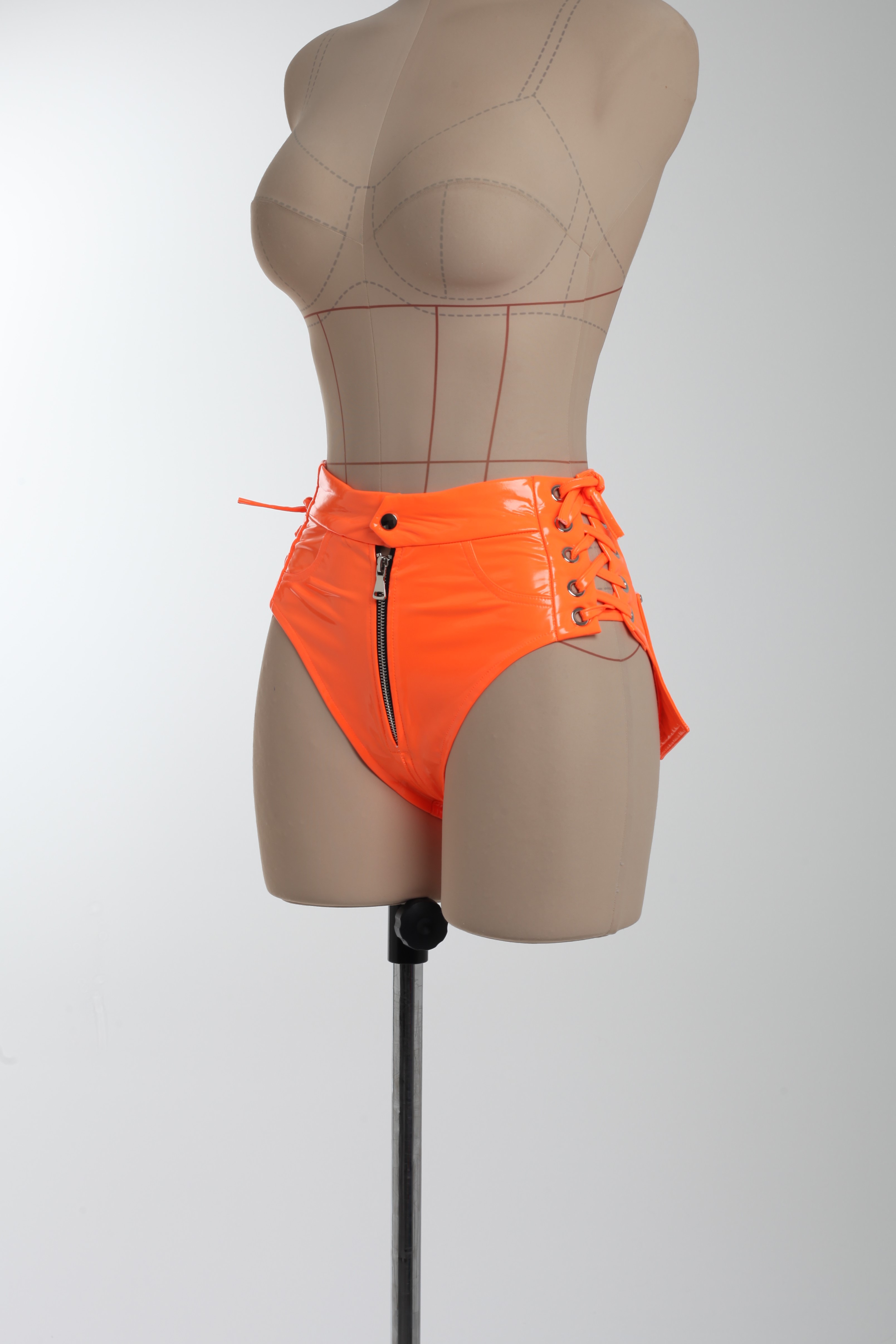 Трусы неоново-оранжевые со шнуровкой из латекса