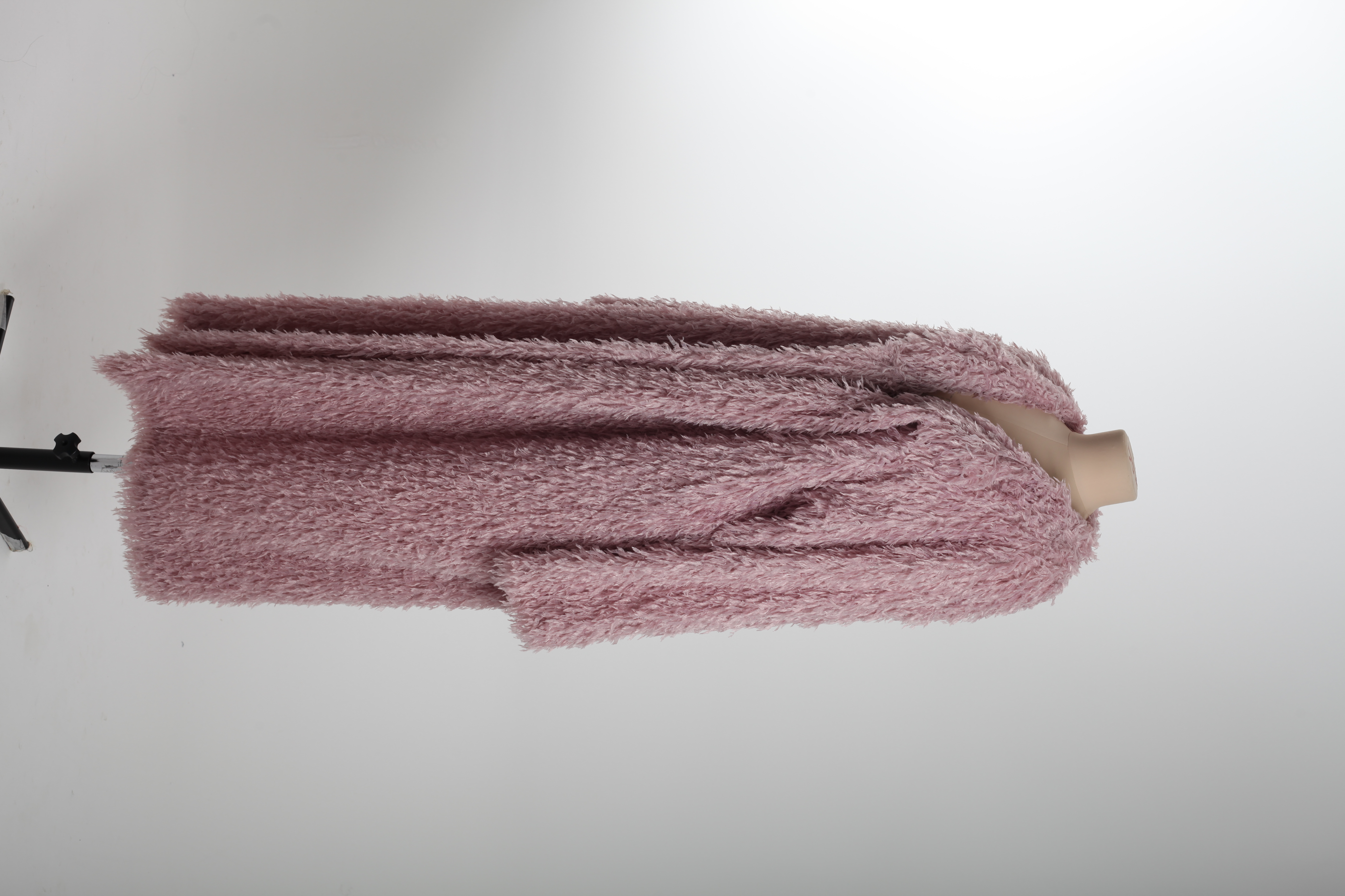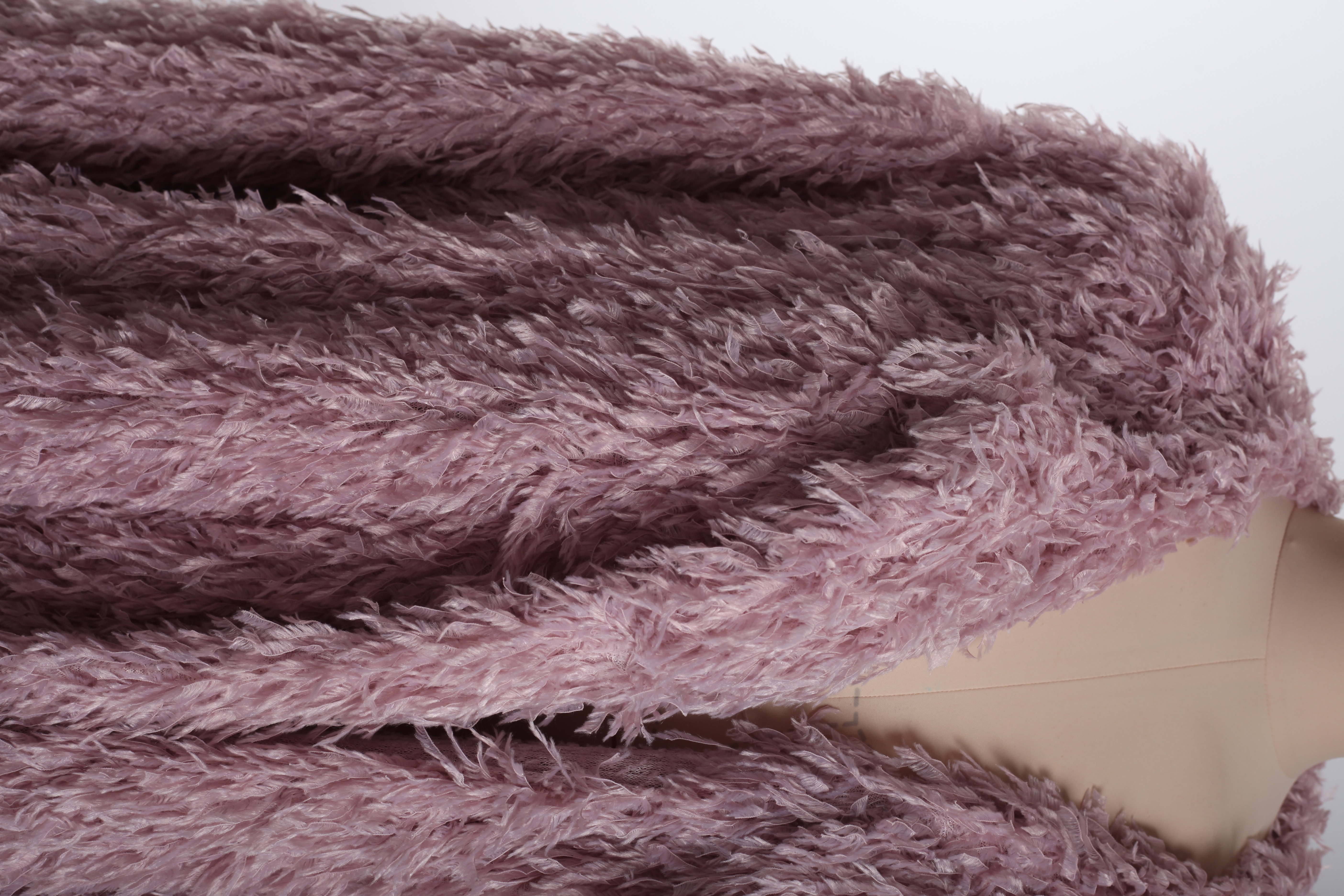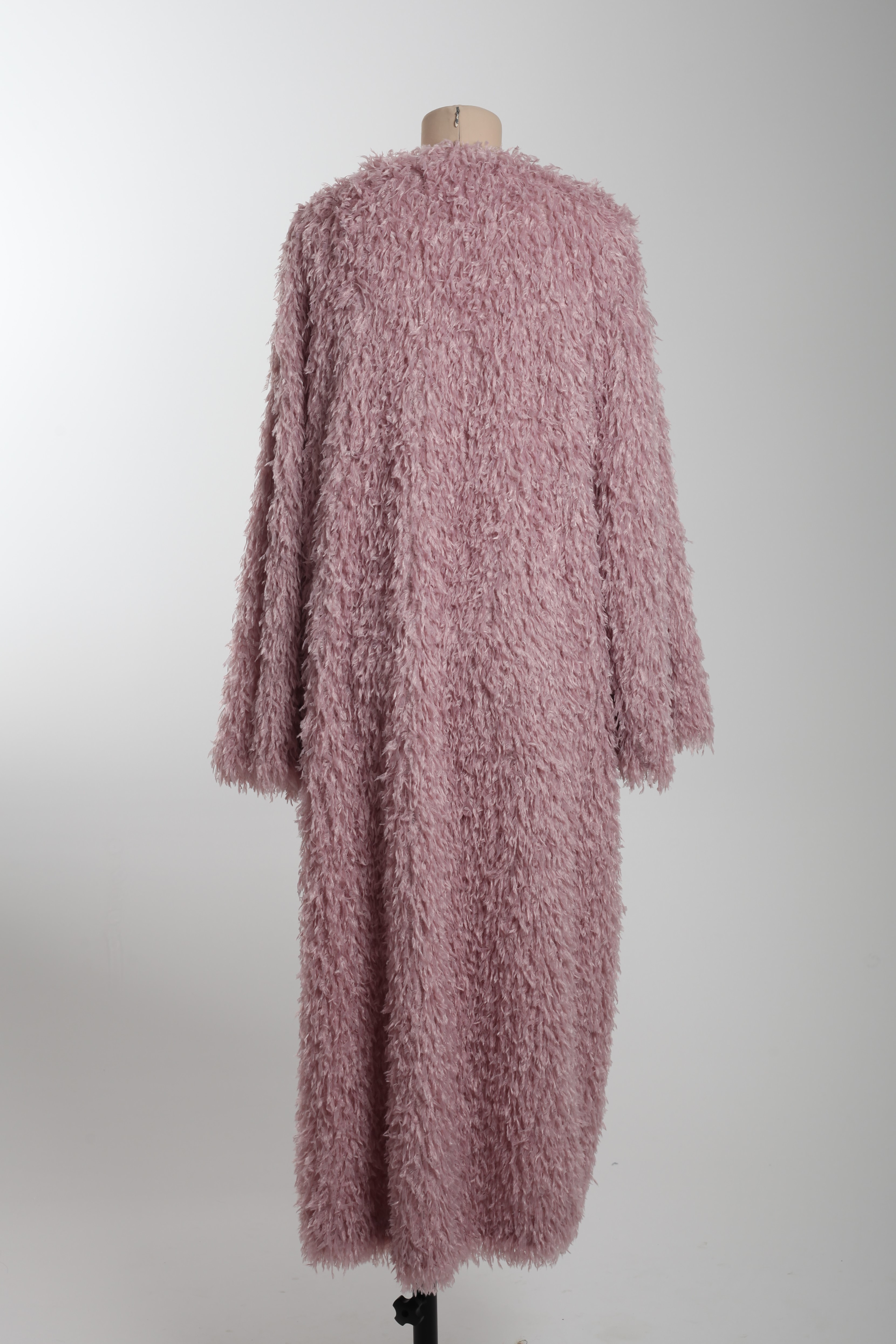 Шуба длинная розовая с имитацией перьев