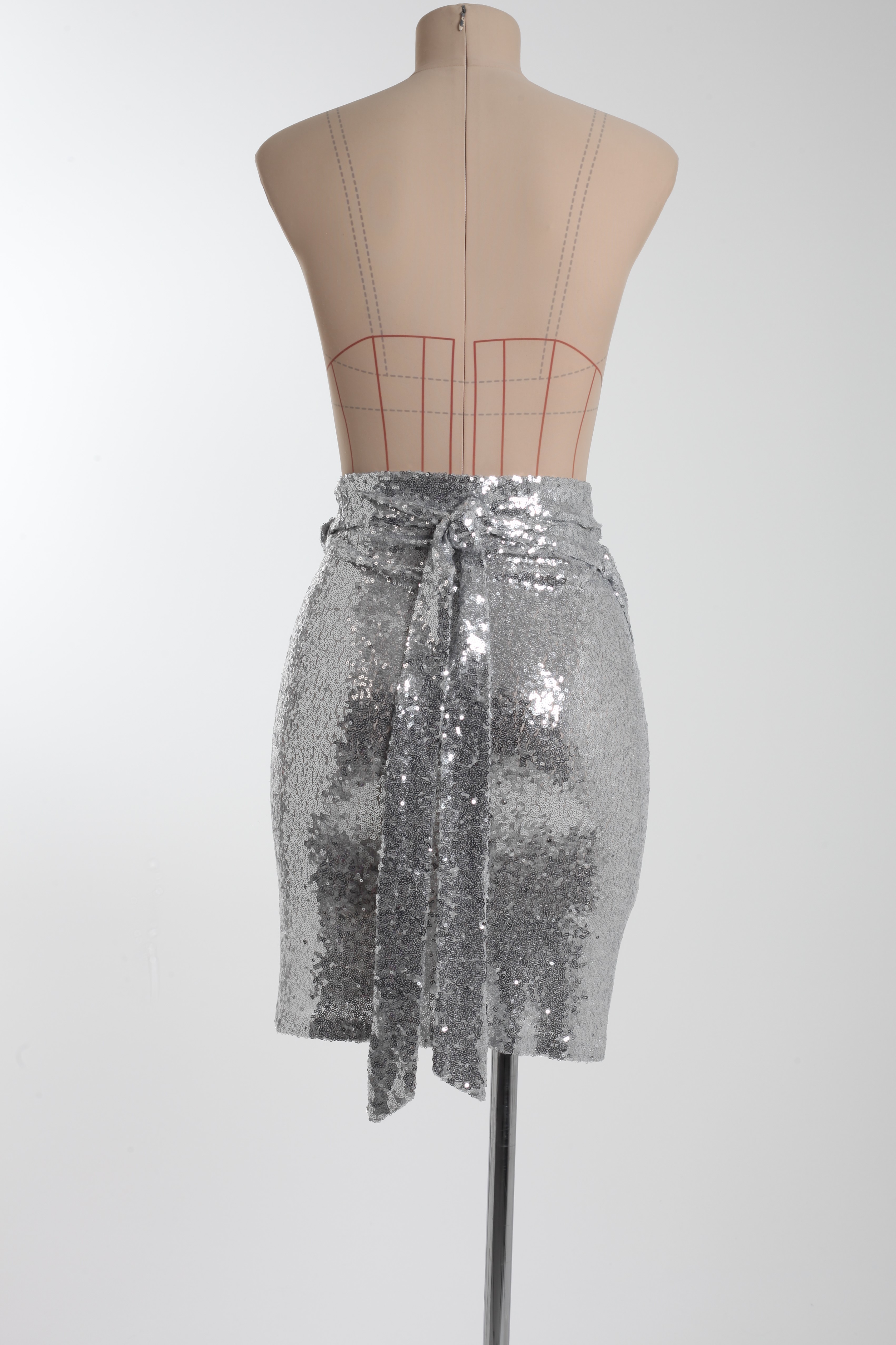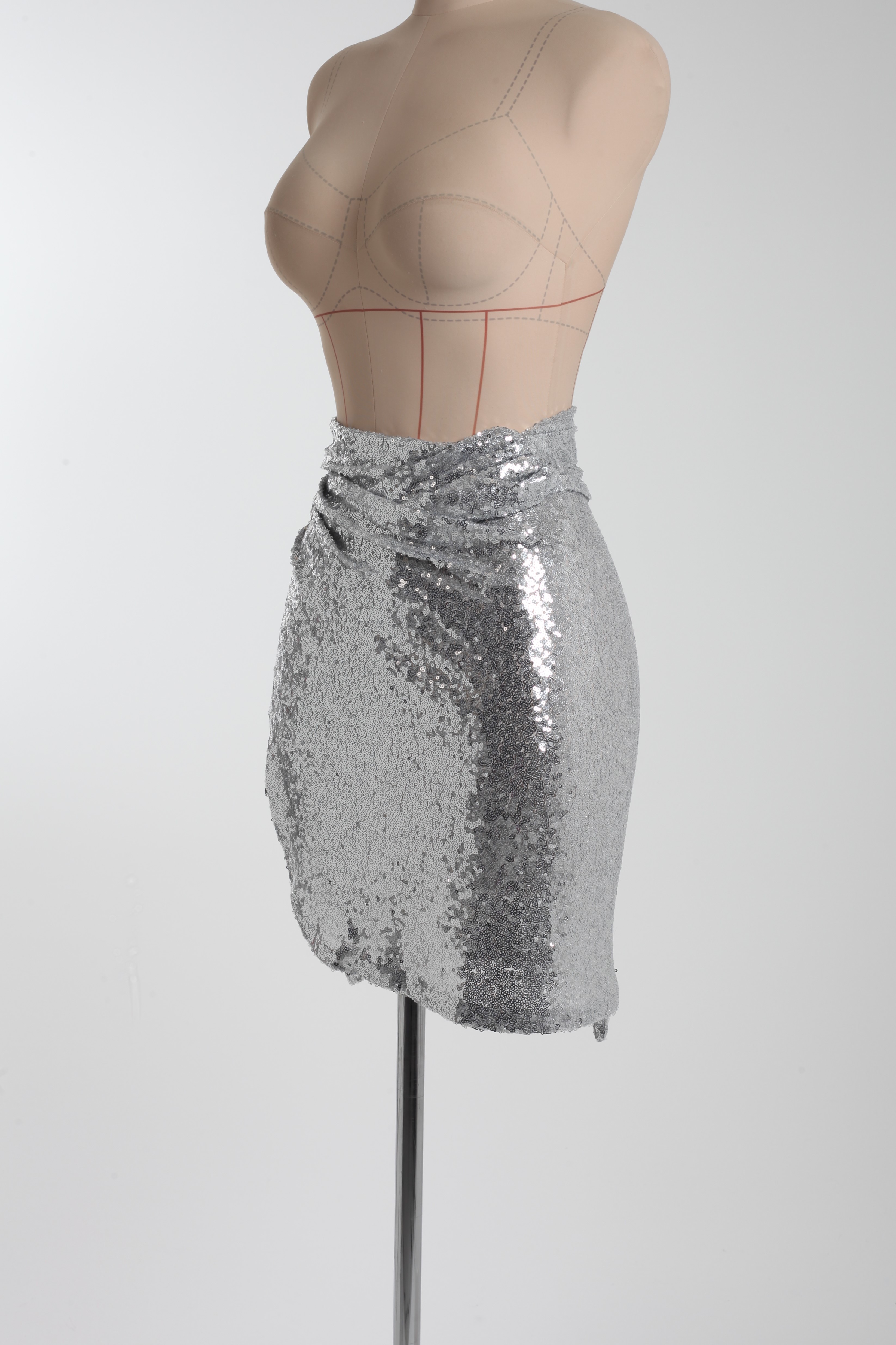 Юбка-мини серебряная из пайеток