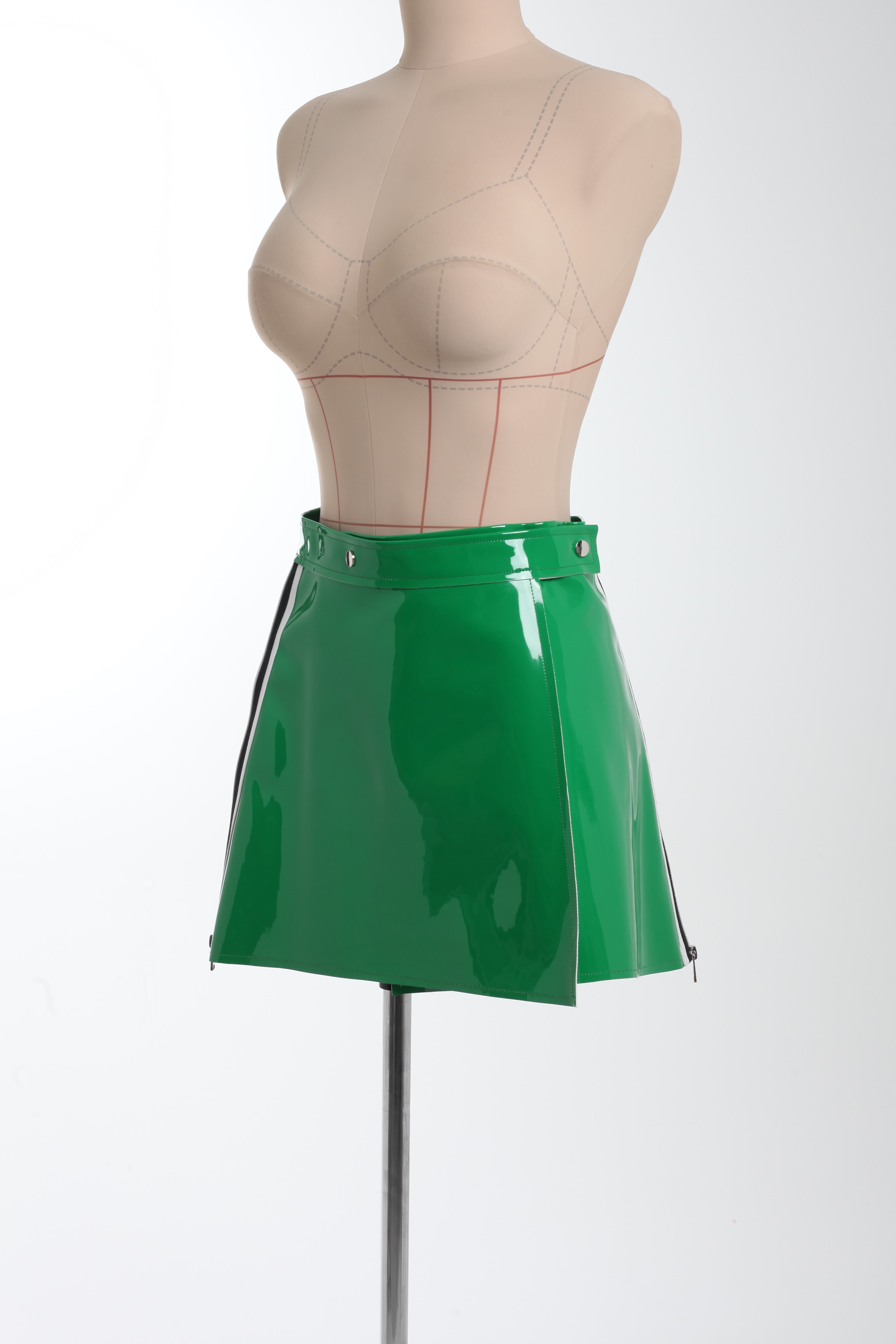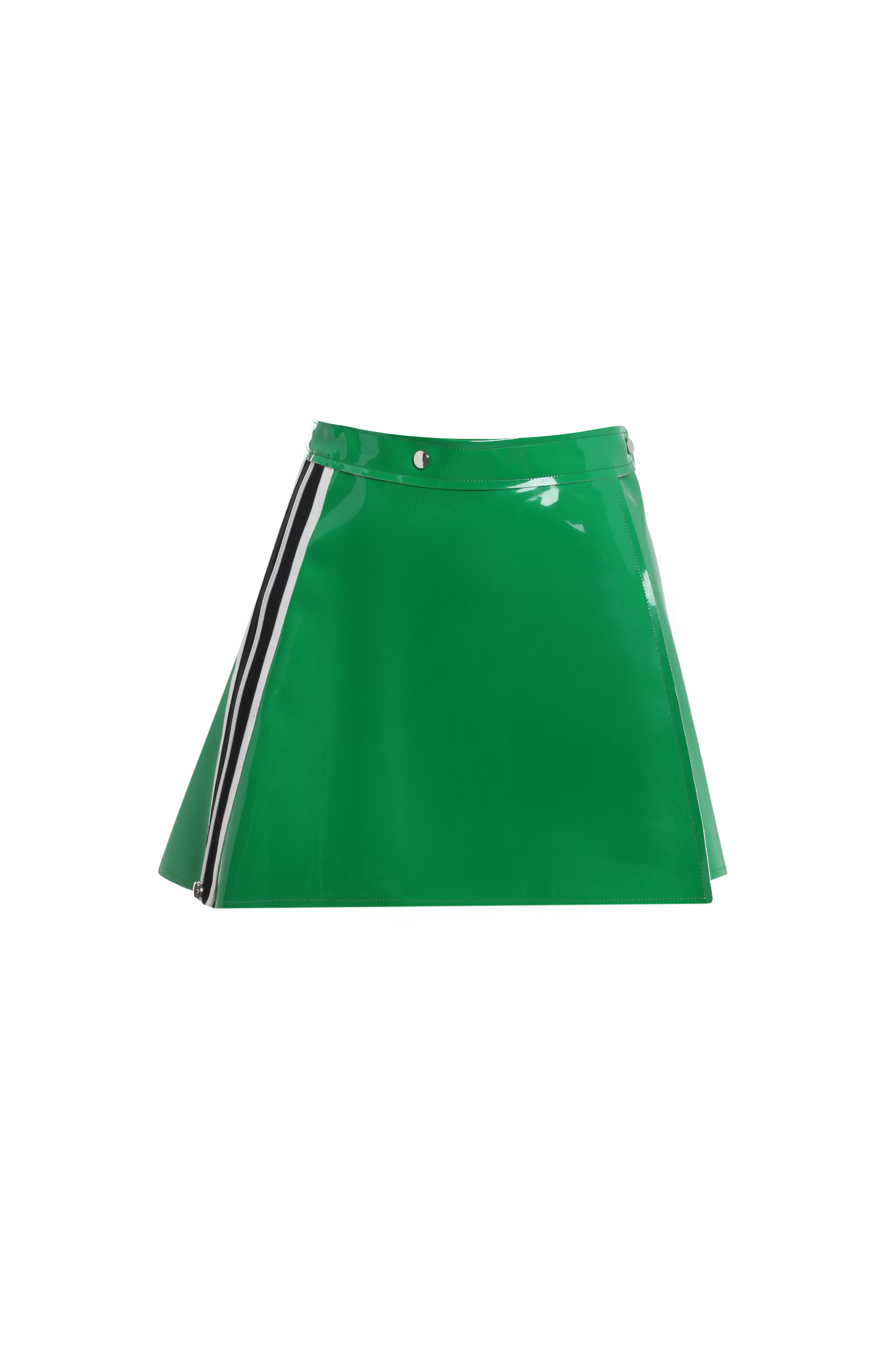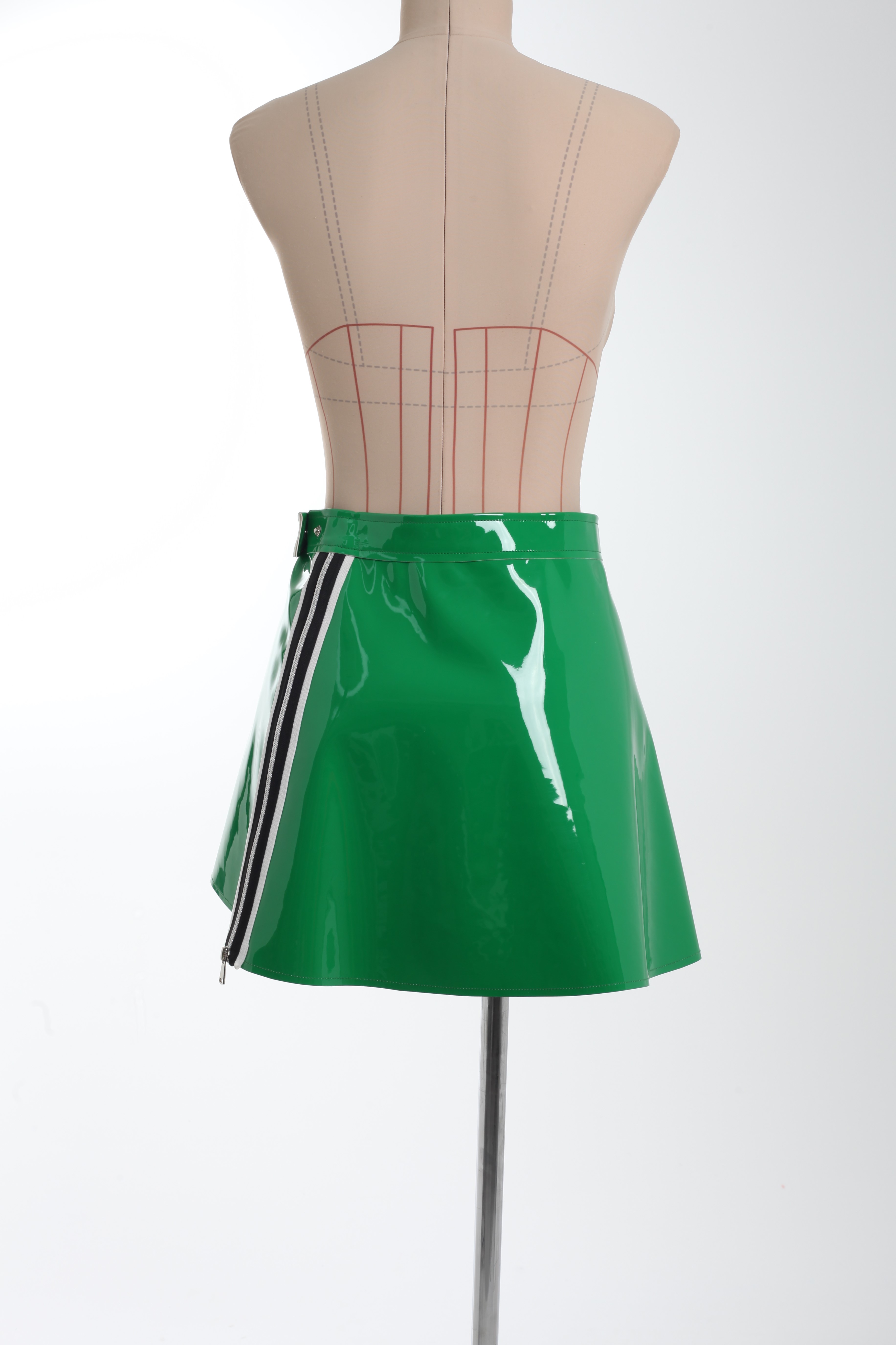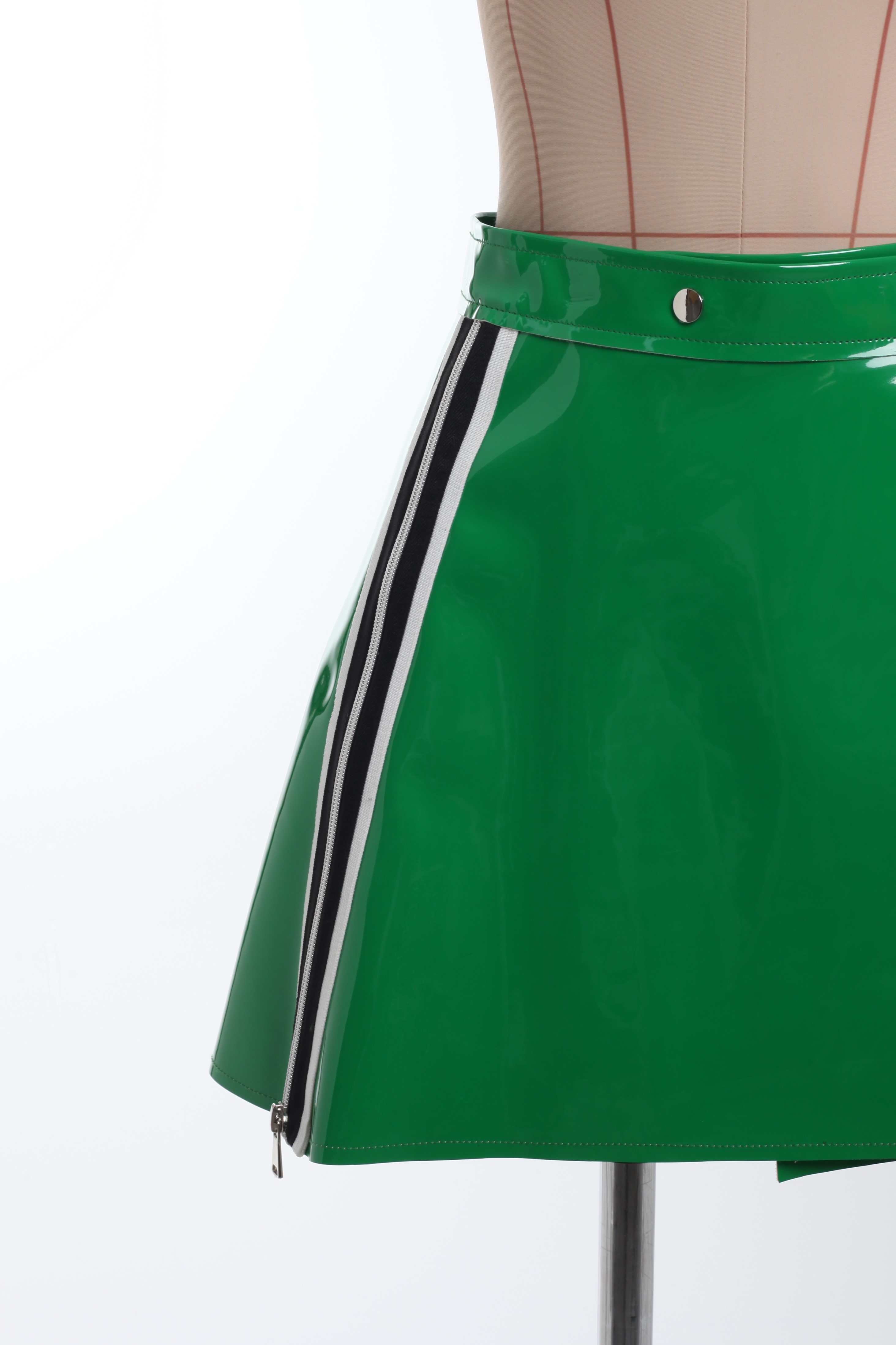 Юбка-мини зеленая из лака с черно-белыми лампасами