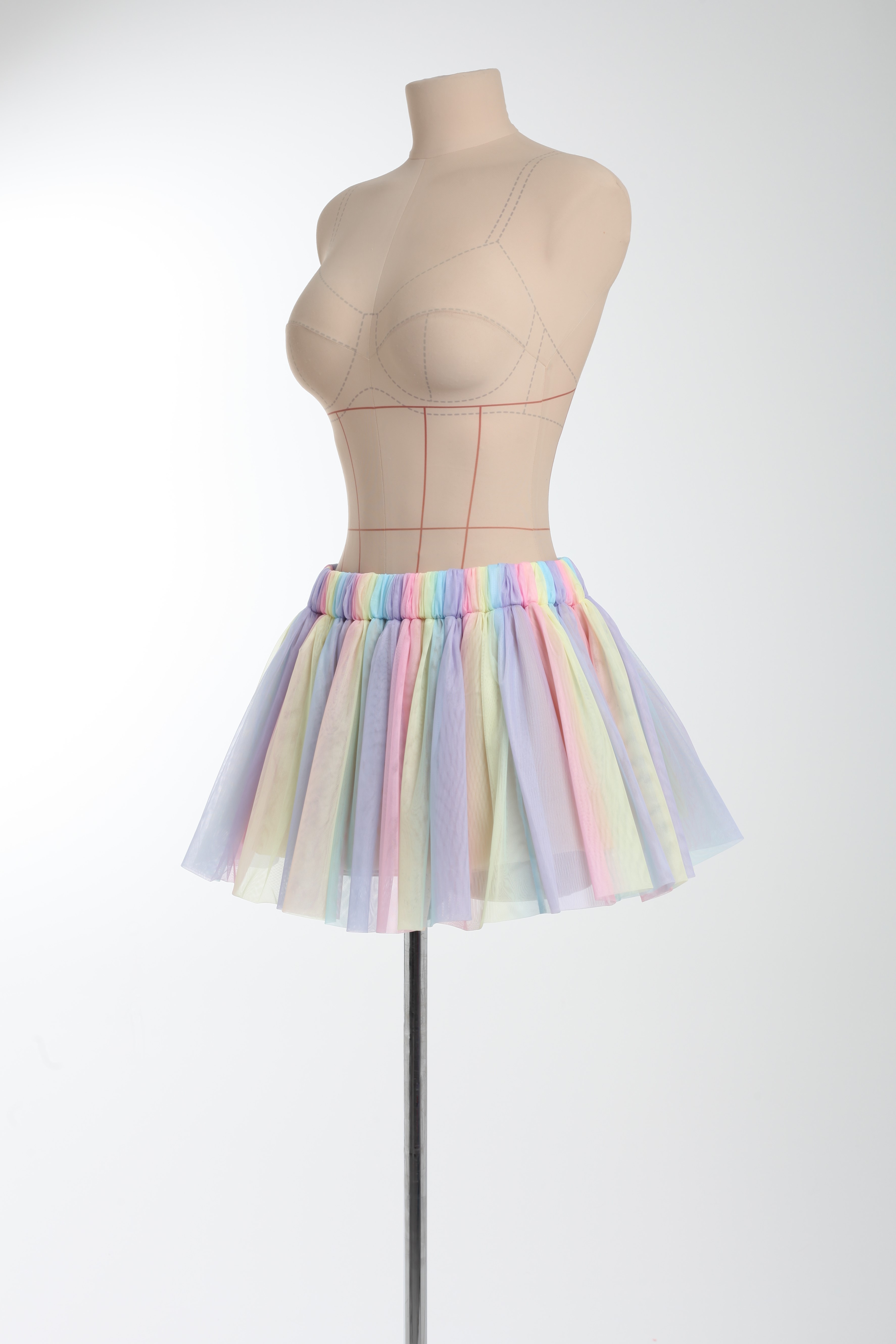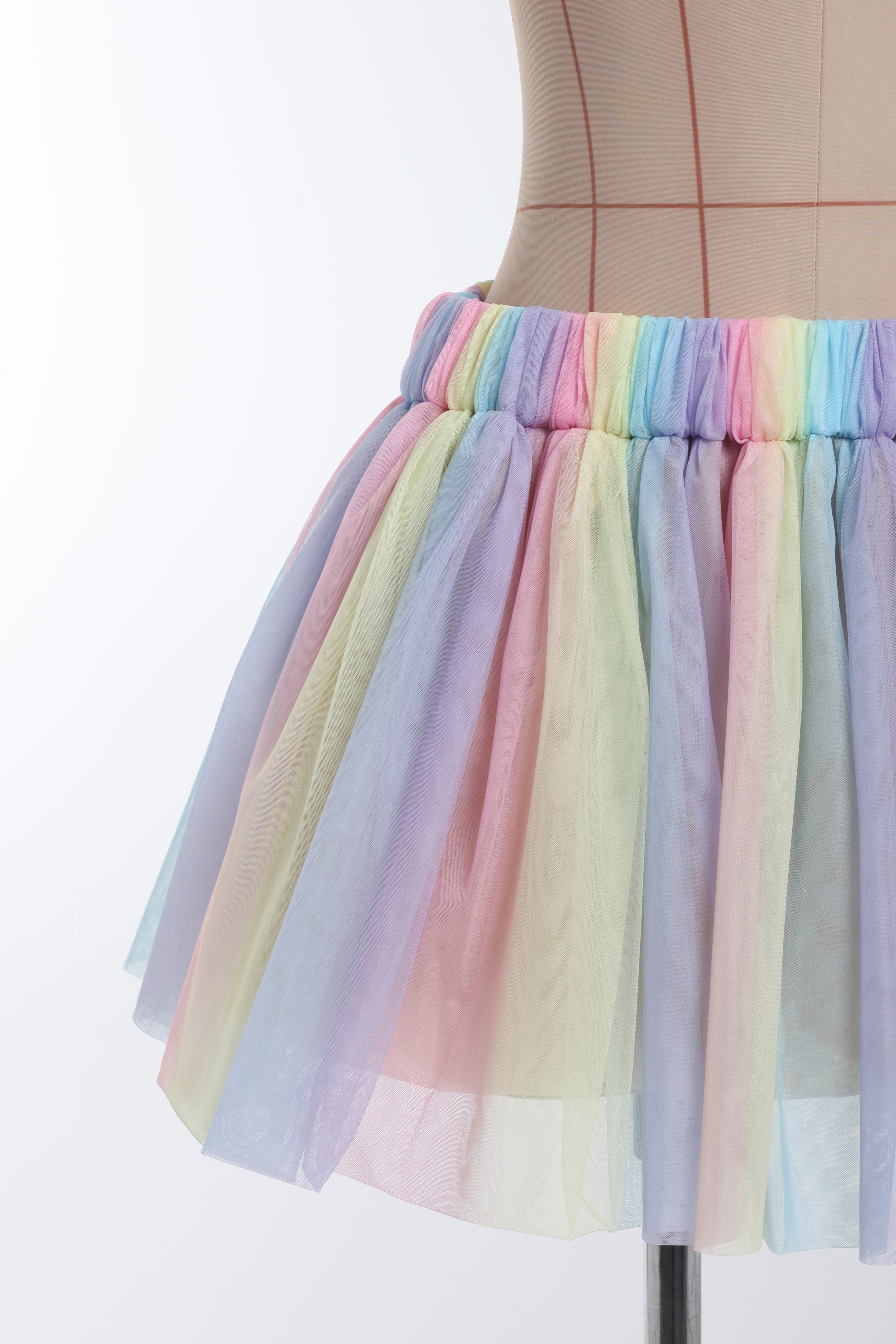 Юбка-мини мультицвет из сетки со сборкой "Радуга"