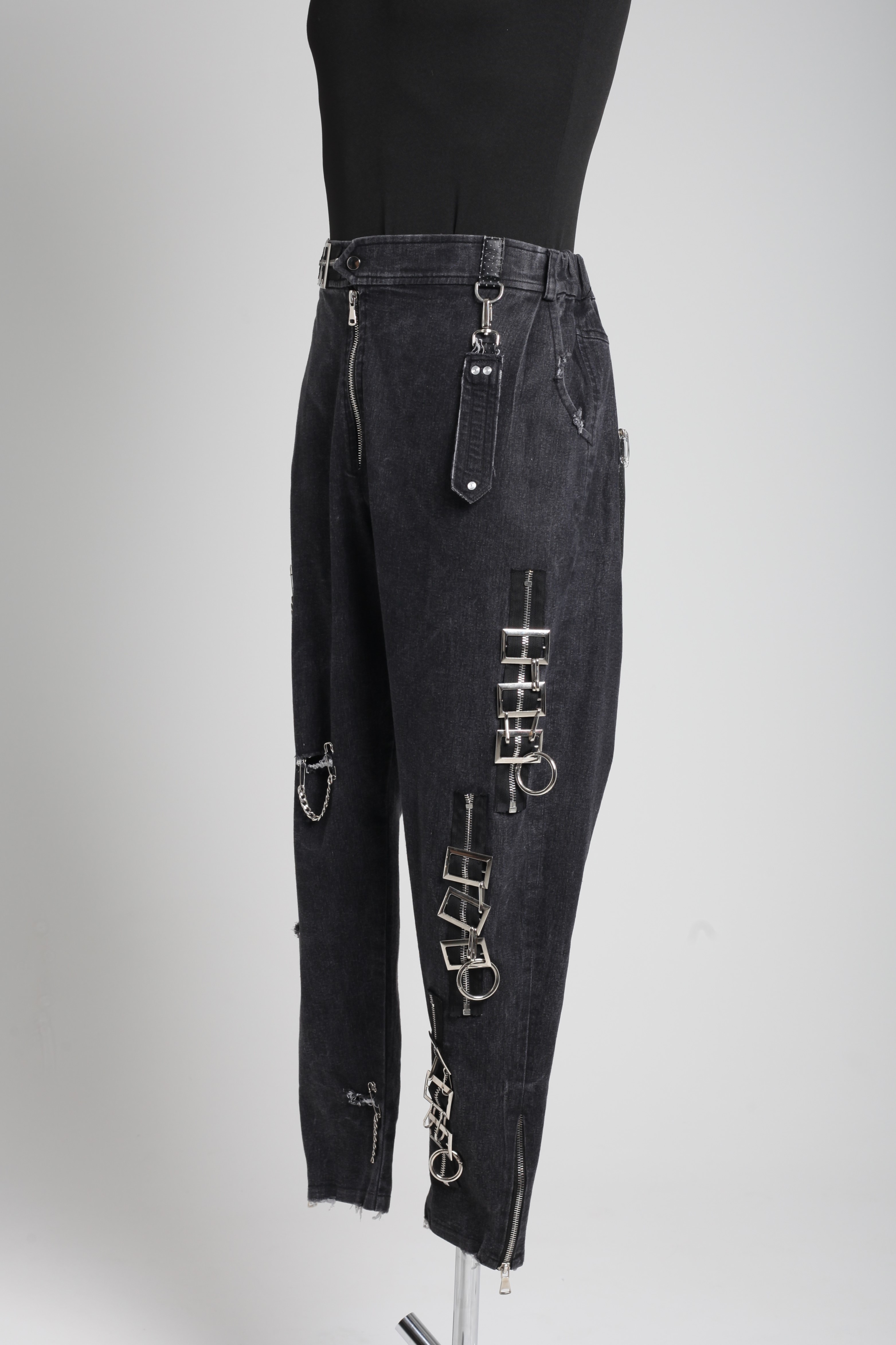 Брюки мужские из черного денима с фурнитурой