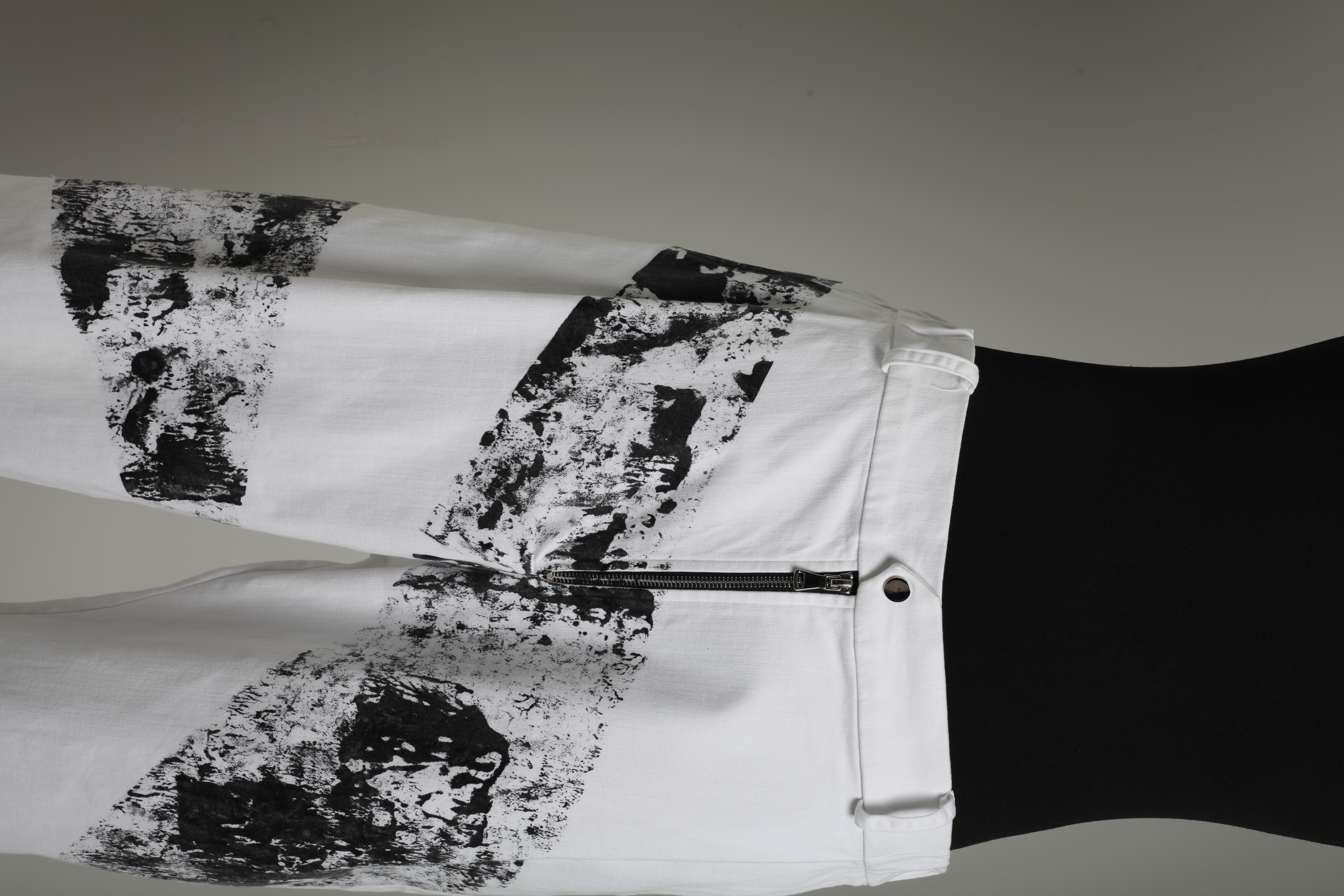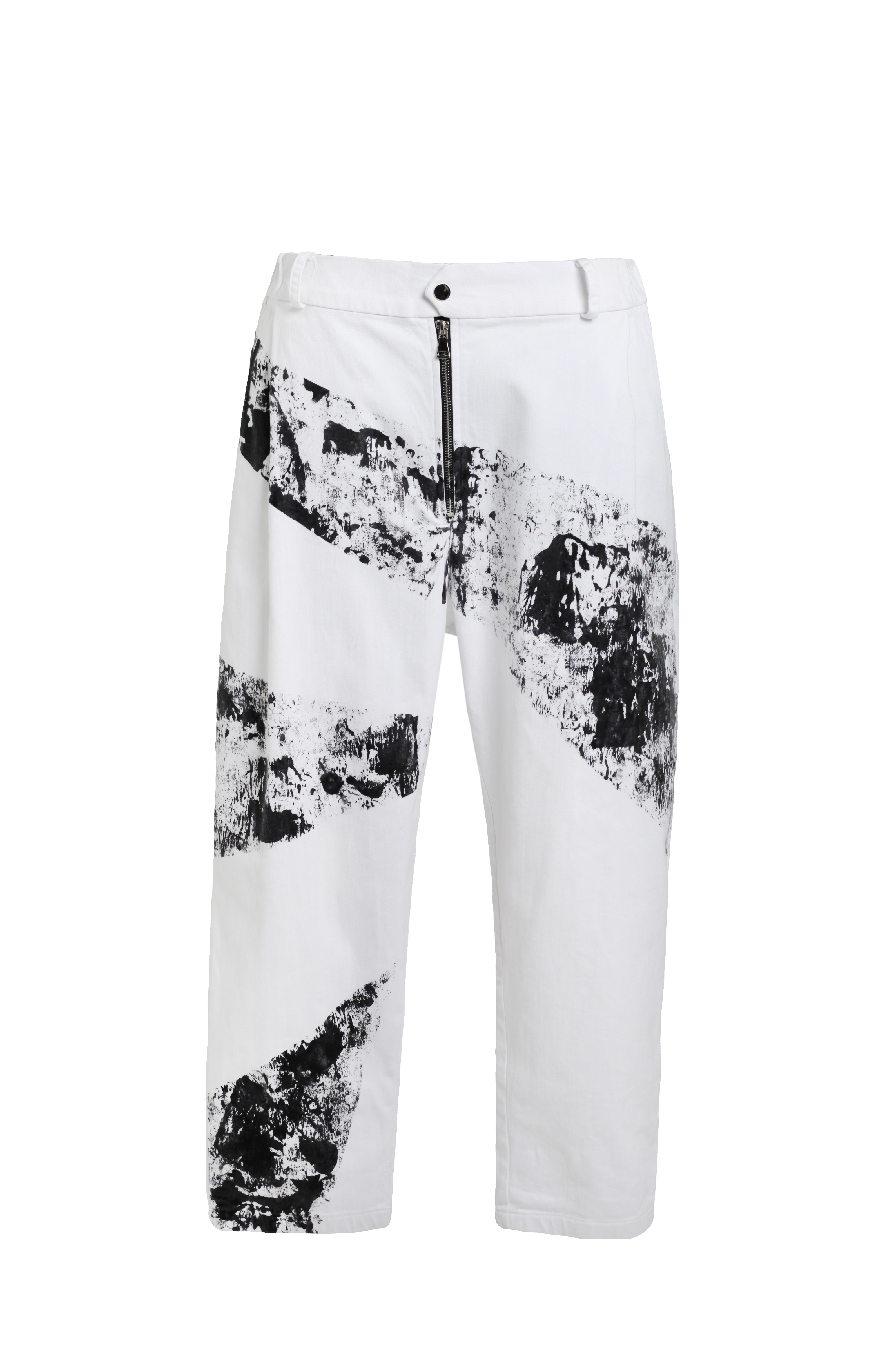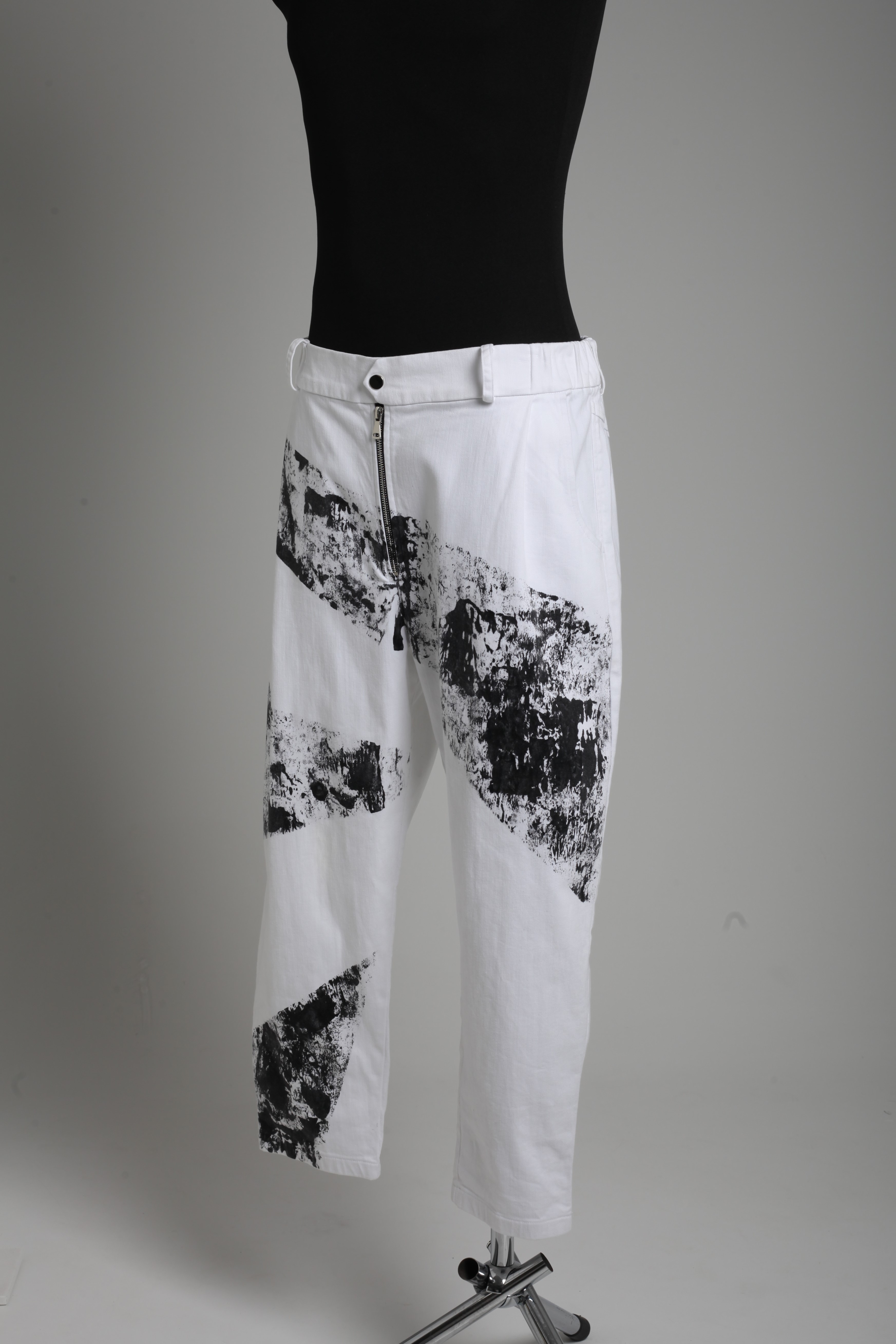 Брюки белые зауженные с черными нарисованными полосами