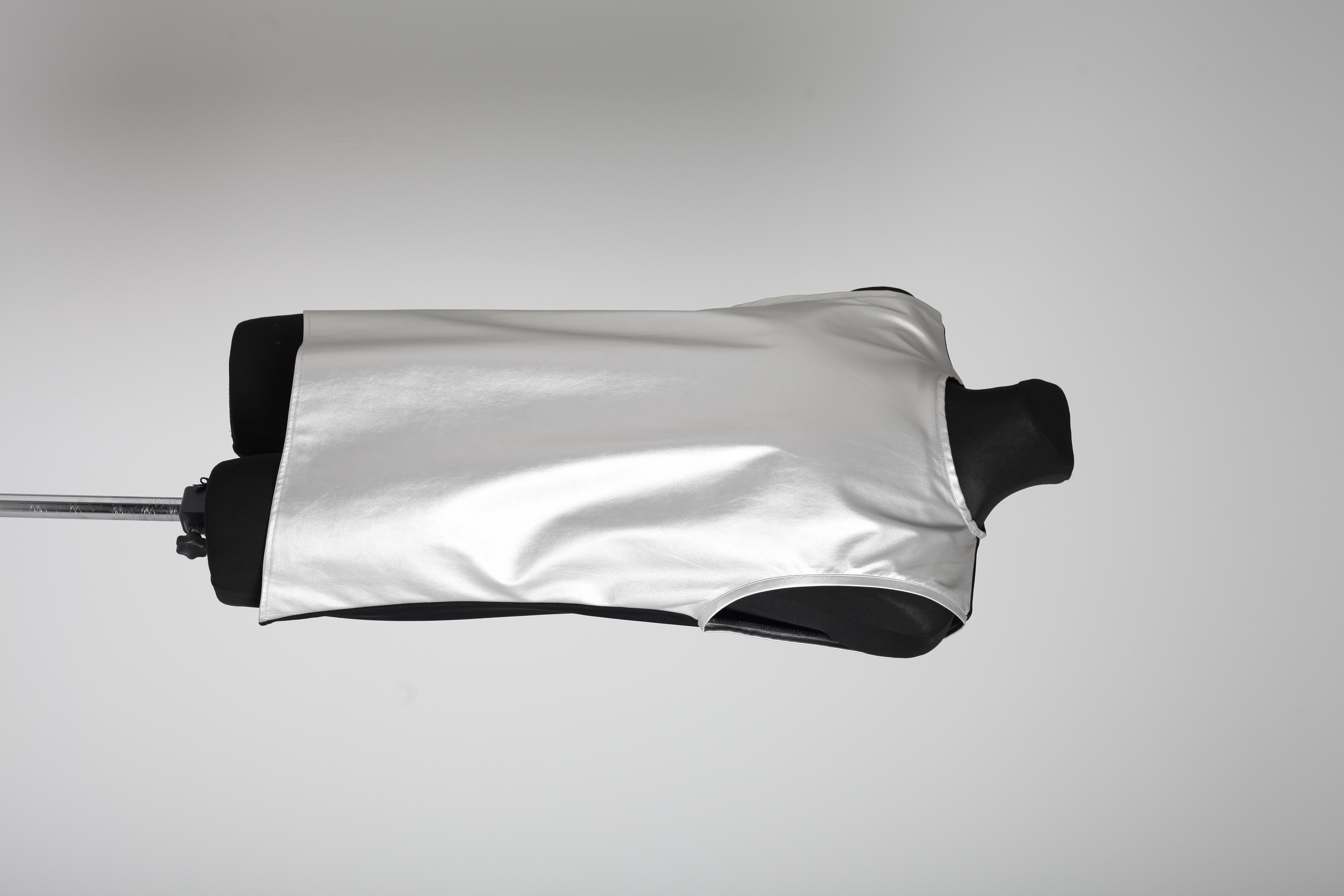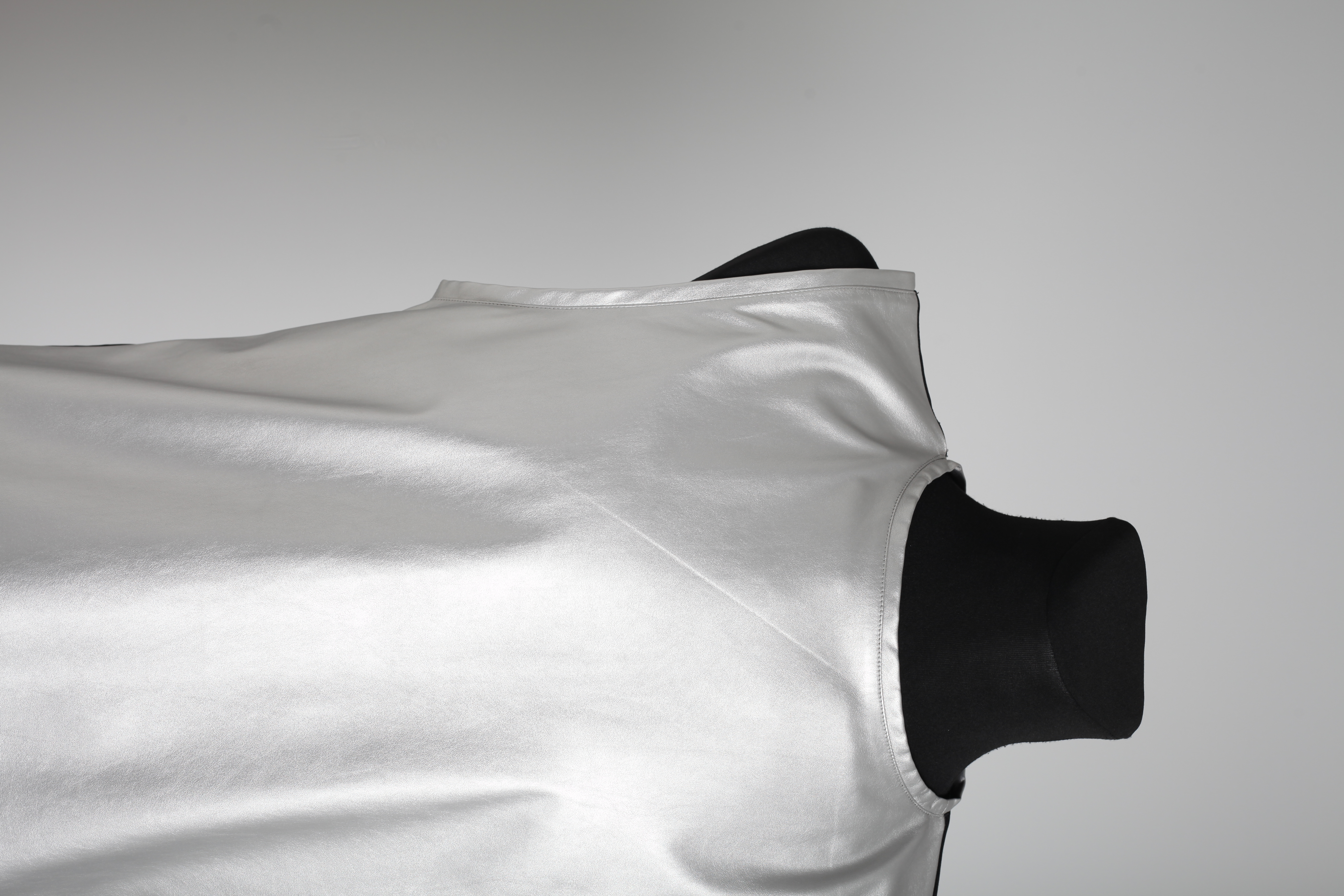 Майка серебряная из эко-кожи с черной трикотажной спинкой