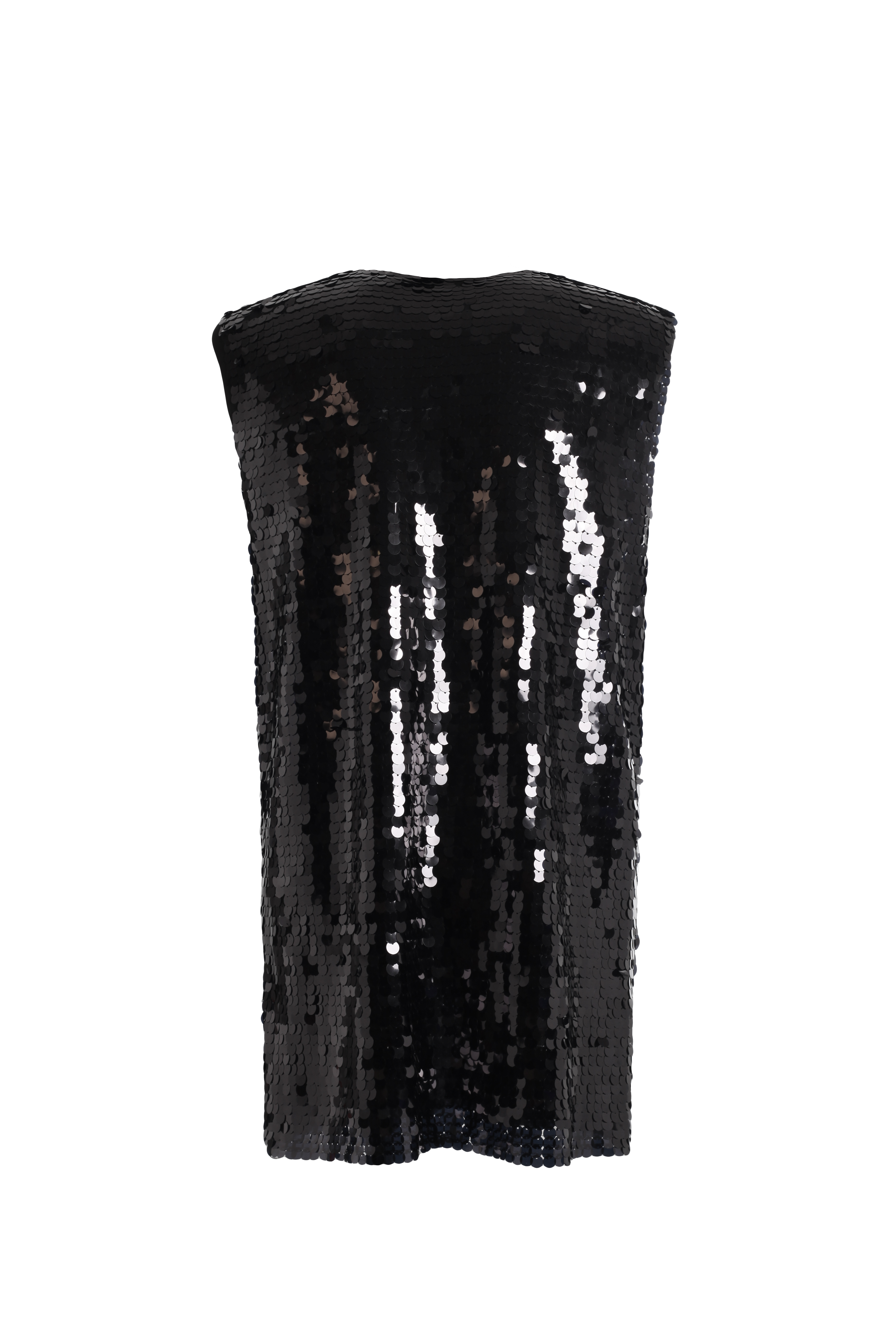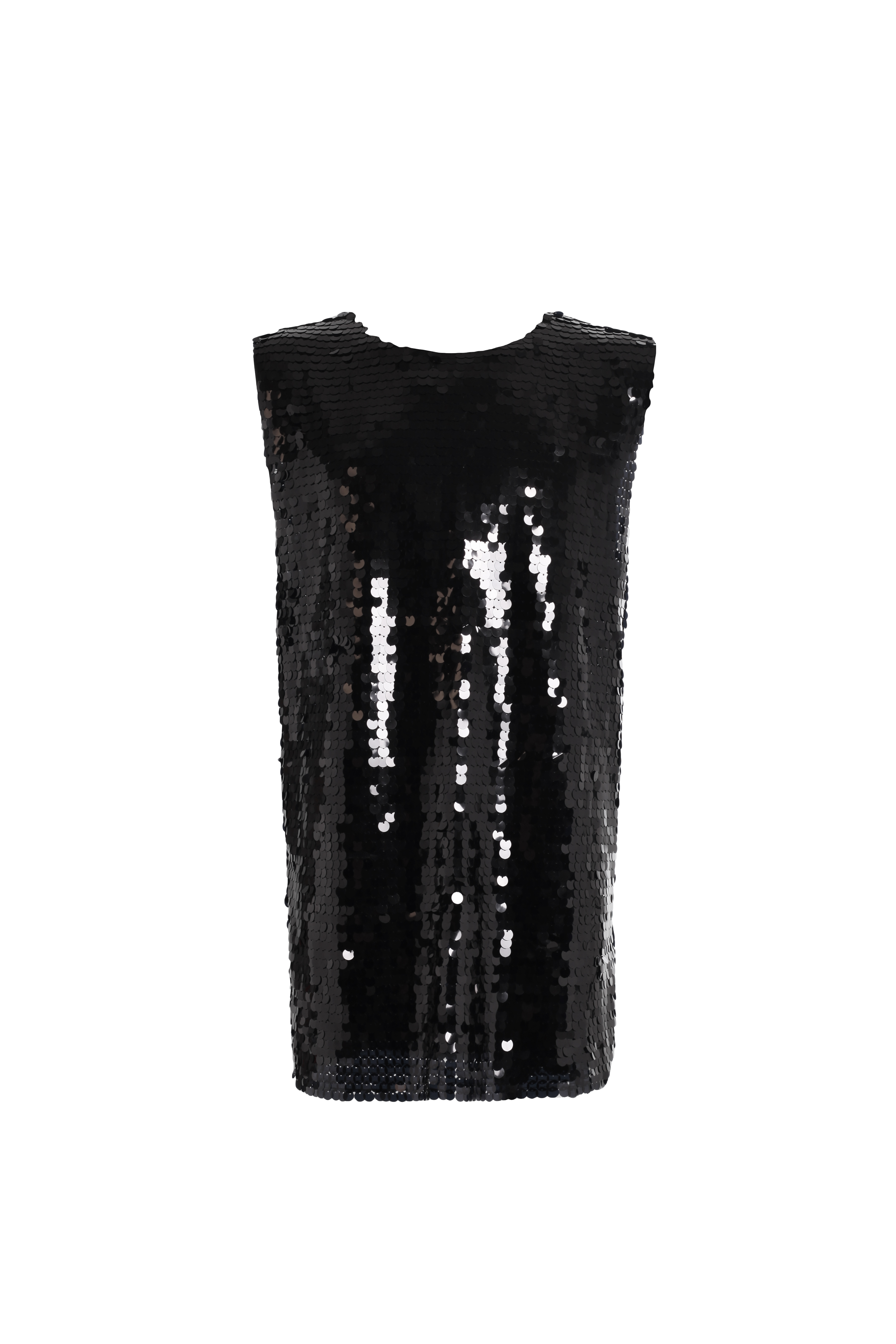 Майка черная из пайеток - уникальная вещь для создания неповторимого образа. Высокое качество исполнения и внимание к деталям. Сияющие пайетки создают эффектное мерцание и притягивают восхищенные взгляды. Доступны размеры: L. Идеально для фотосессий, особых мероприятий и создания образов мечты!