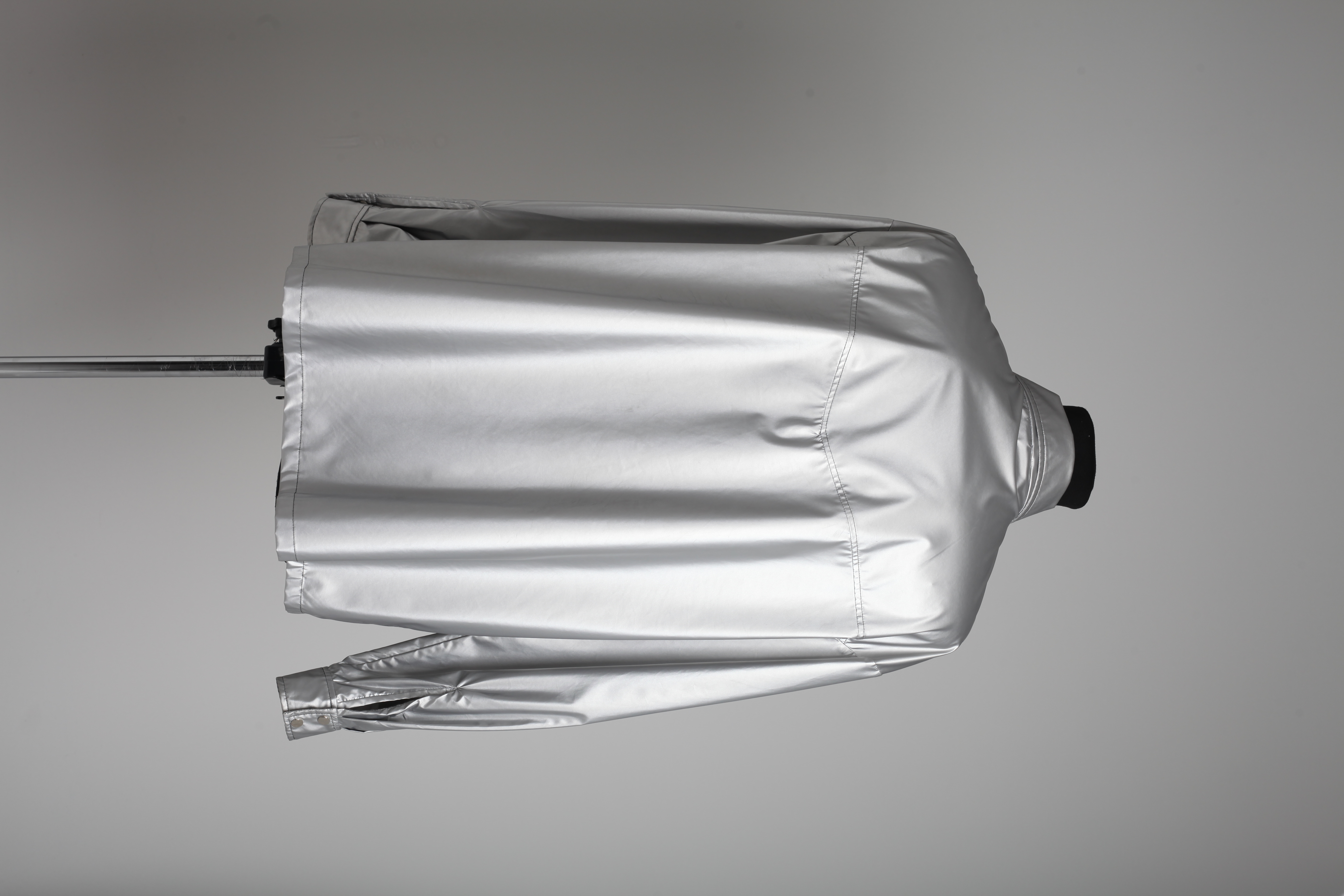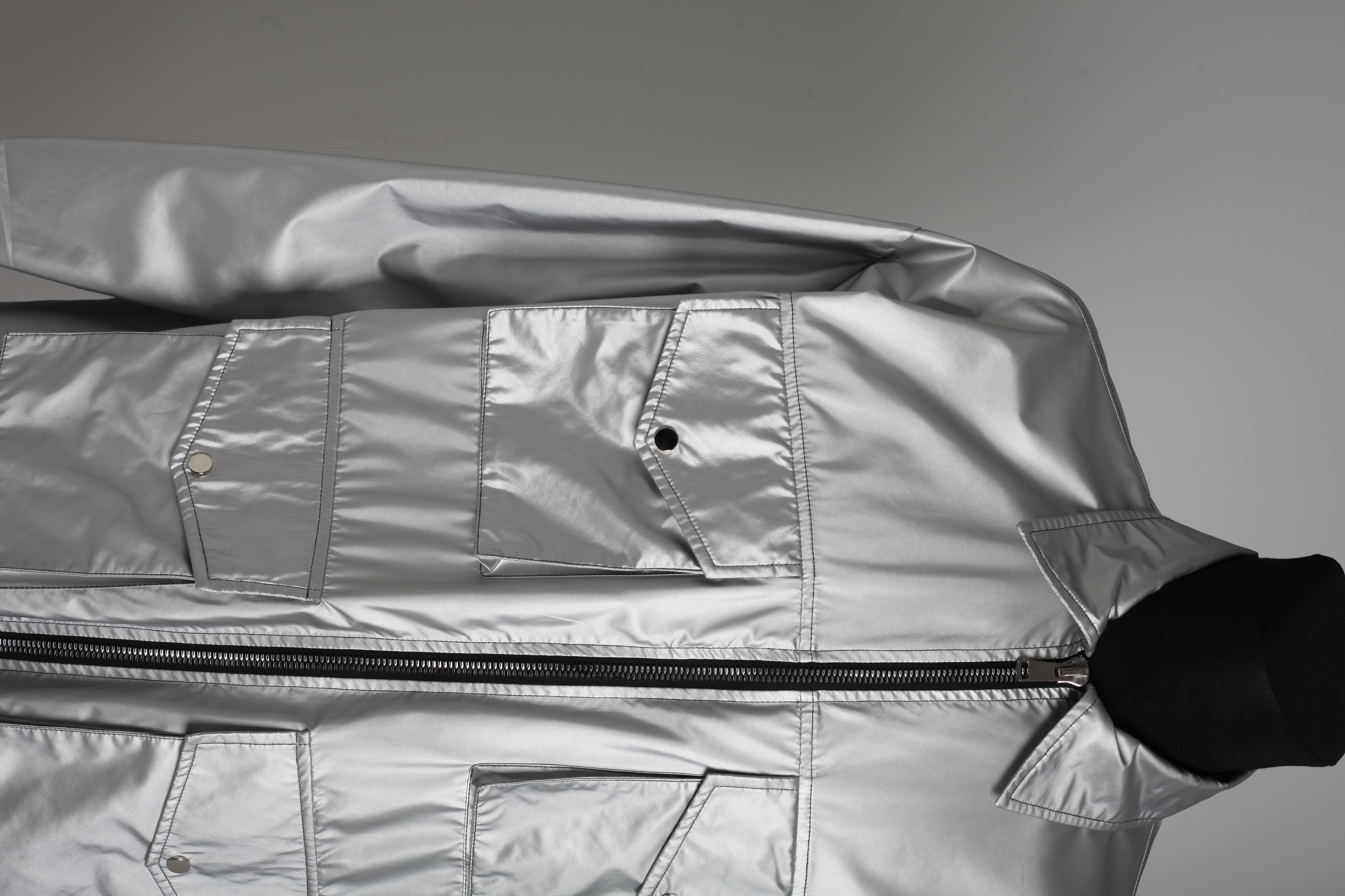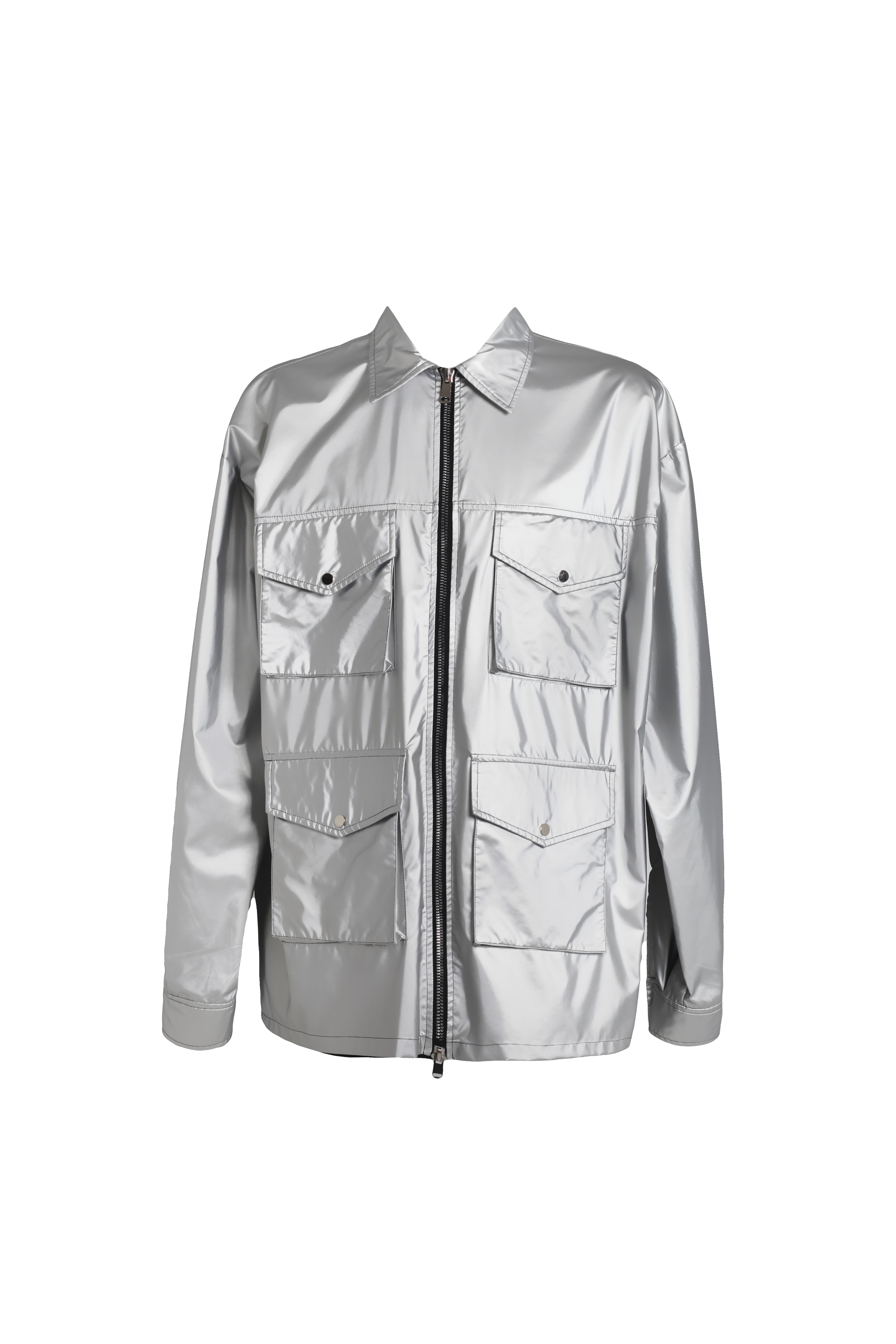Рубашка серебряная из плащевки с объемными карманами спереди