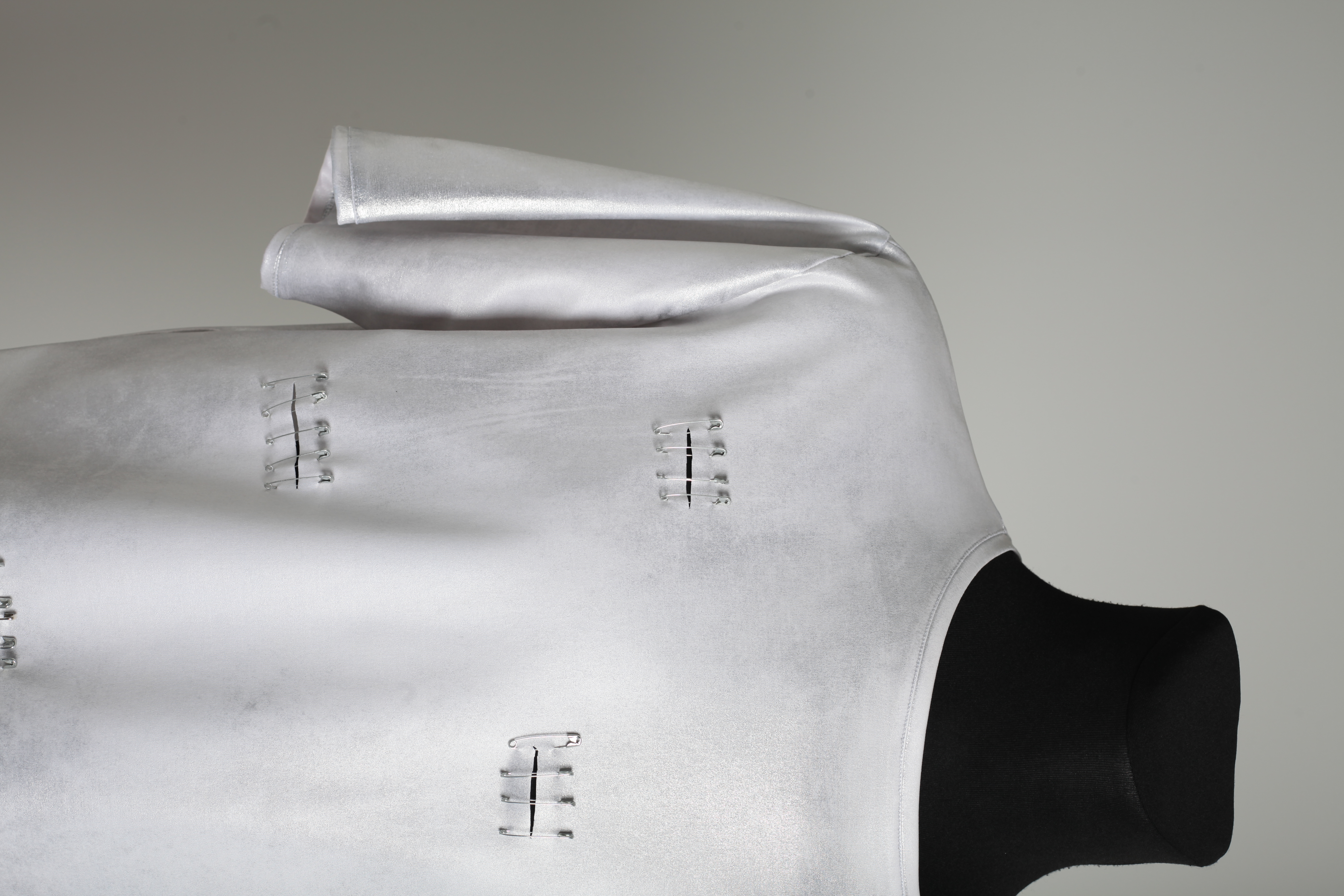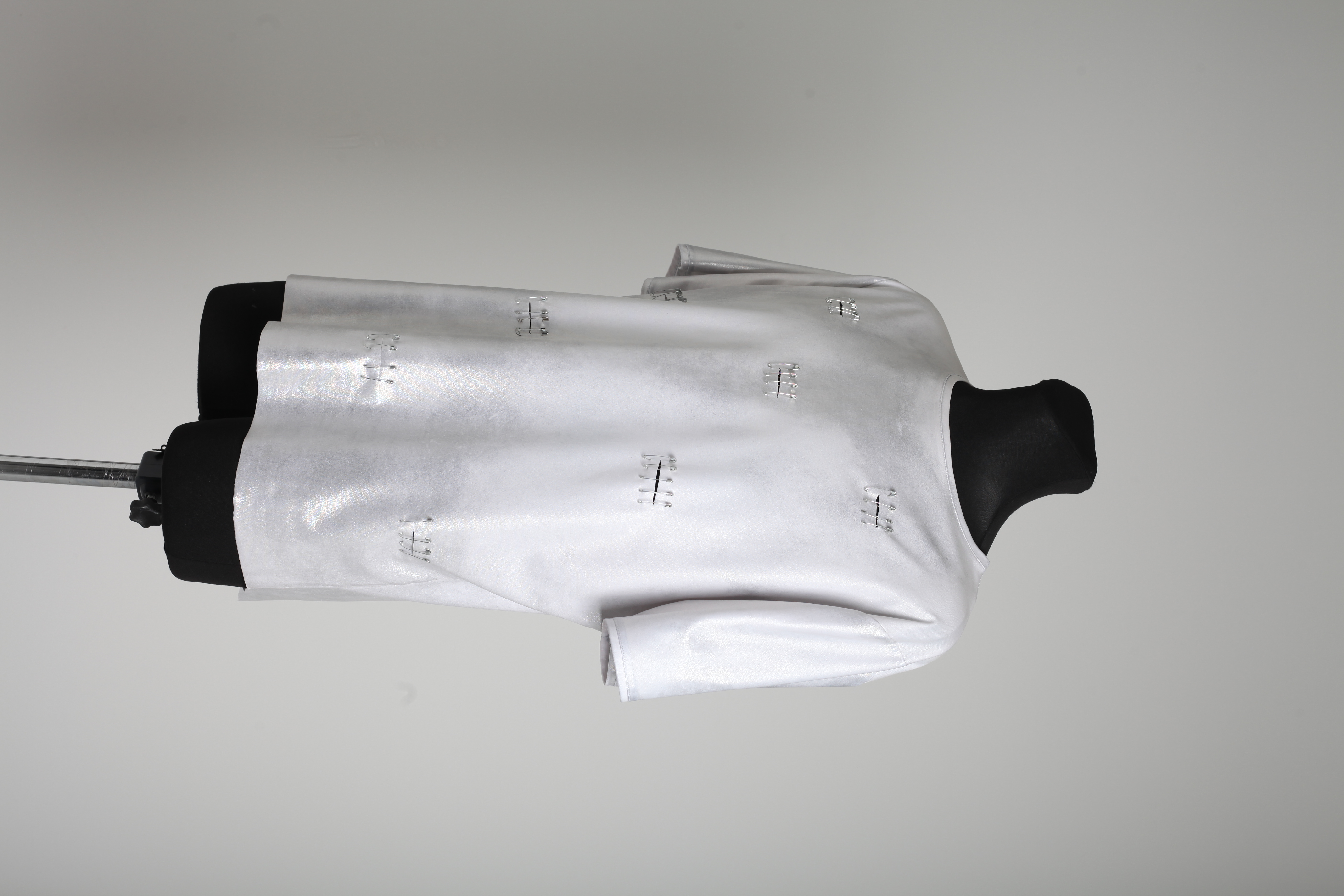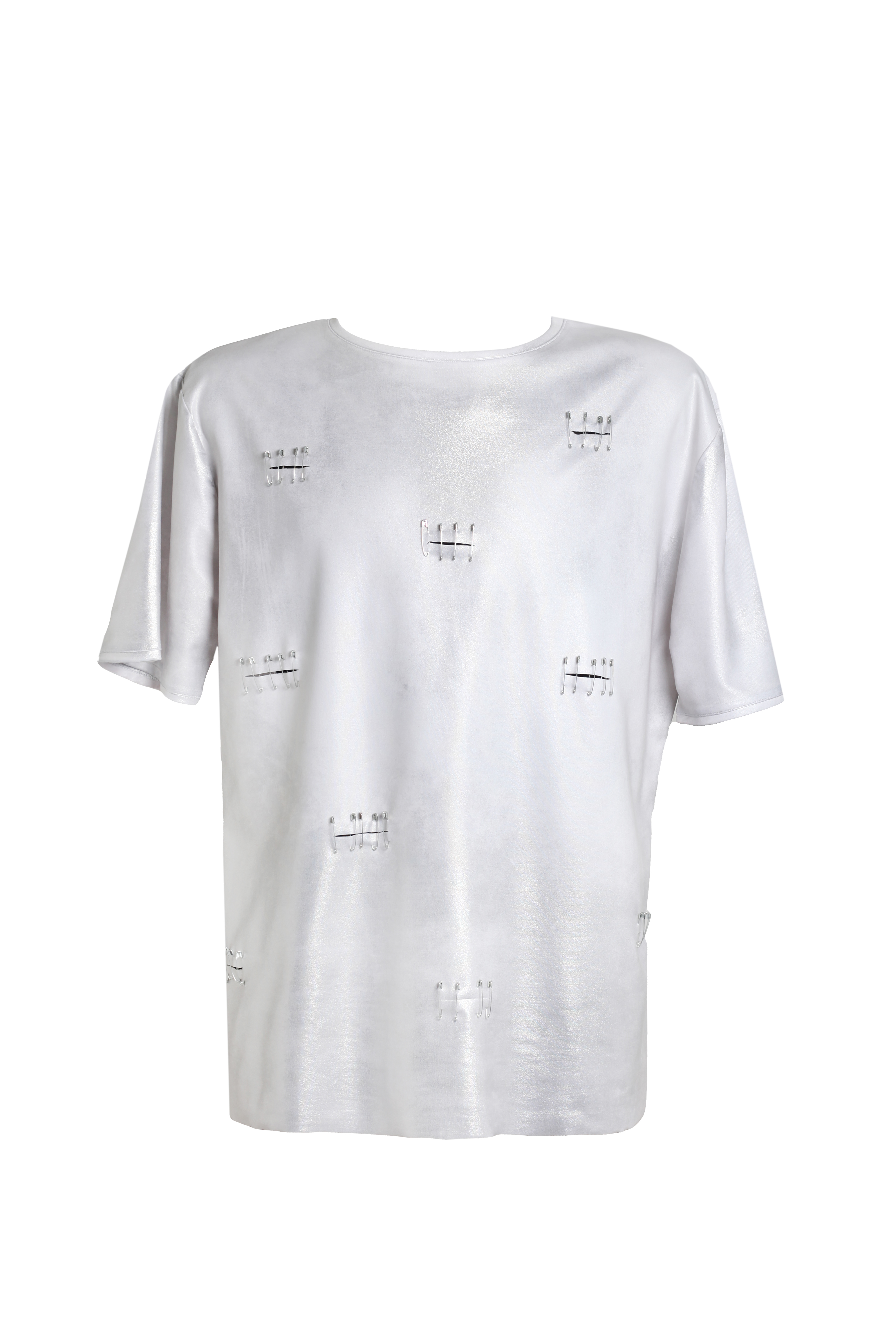 Футболка мужская серебряная из трикотажа с разрезами и булавками
