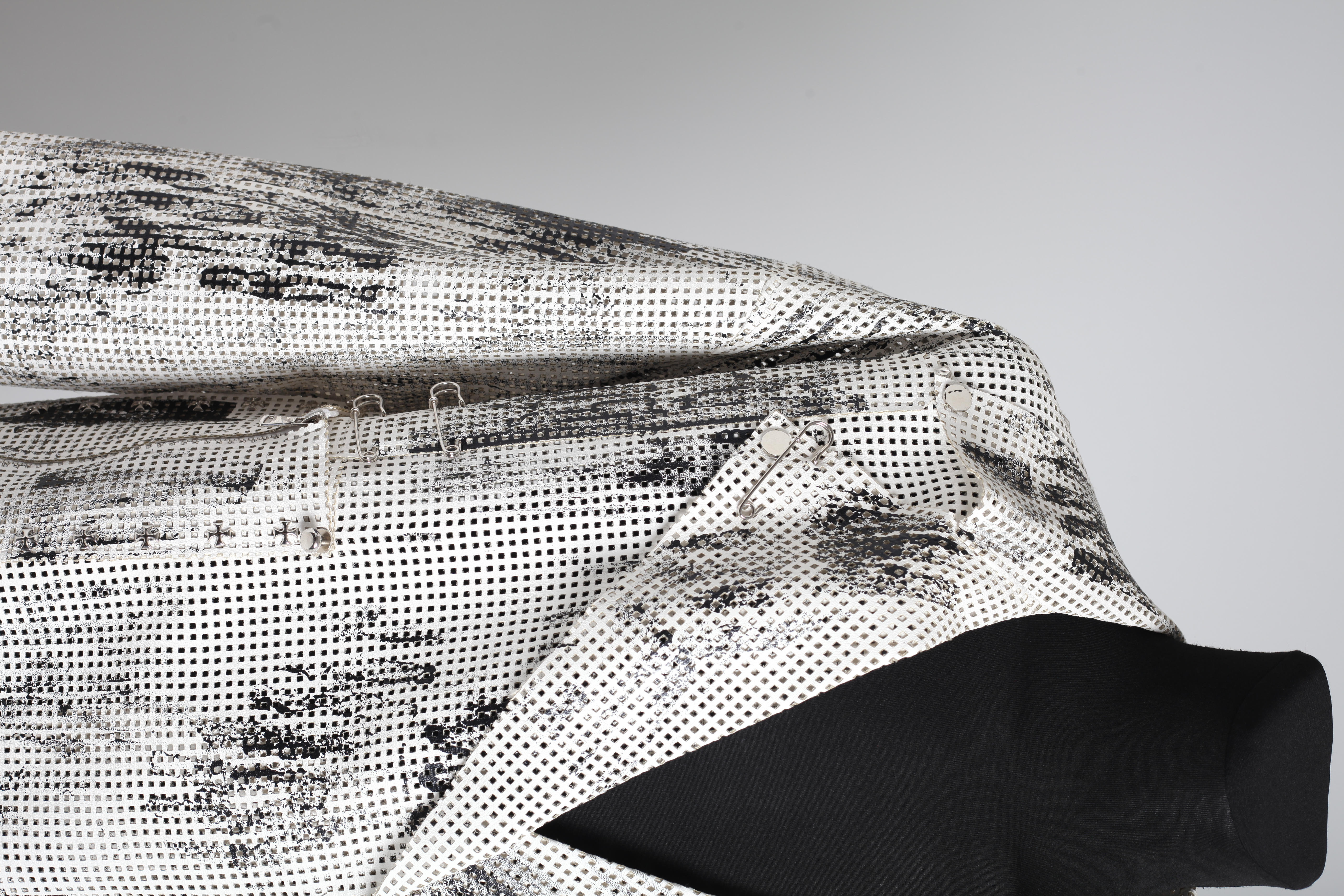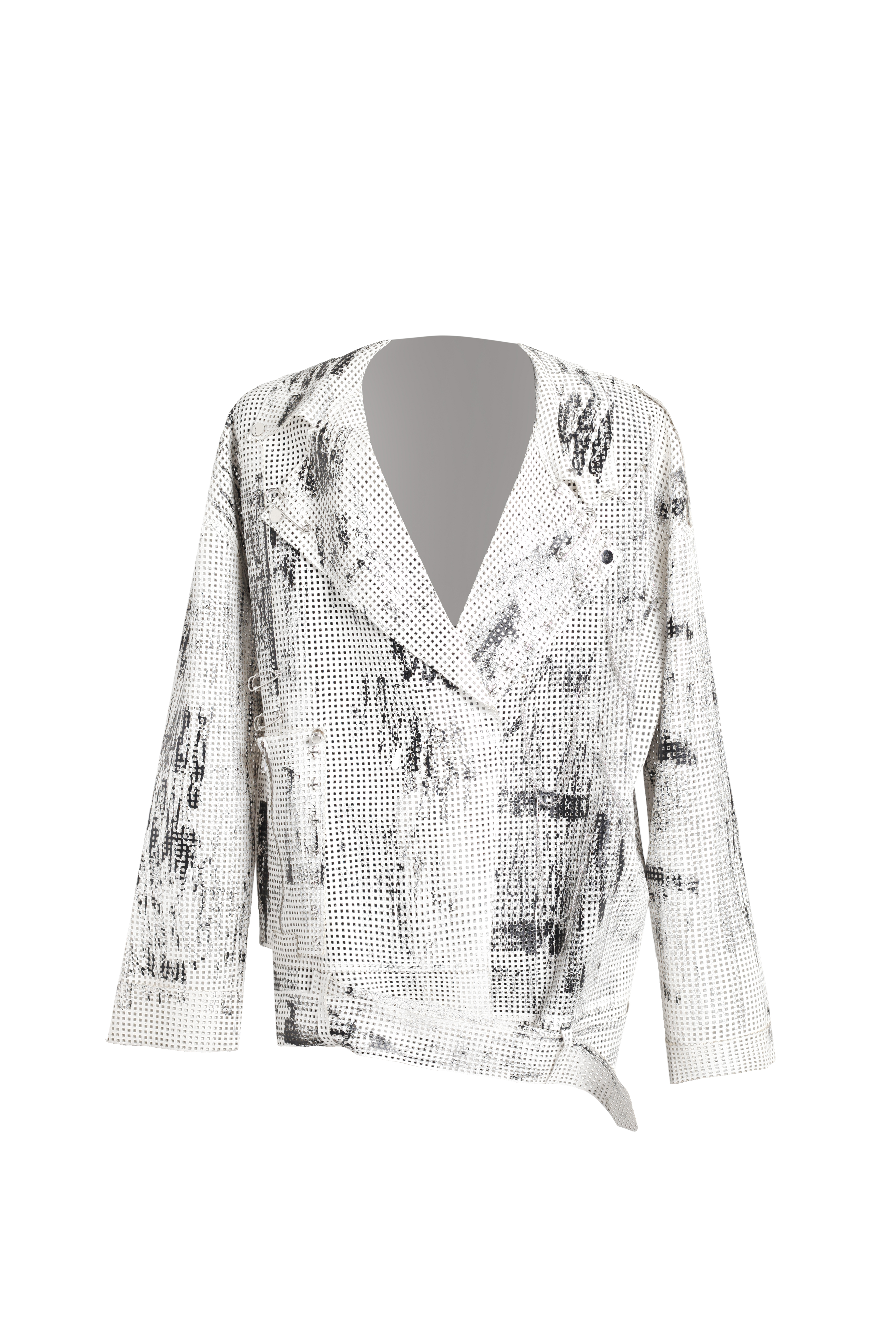 Косуха белая из экокожи с перфорацией и росписью в черном цвете