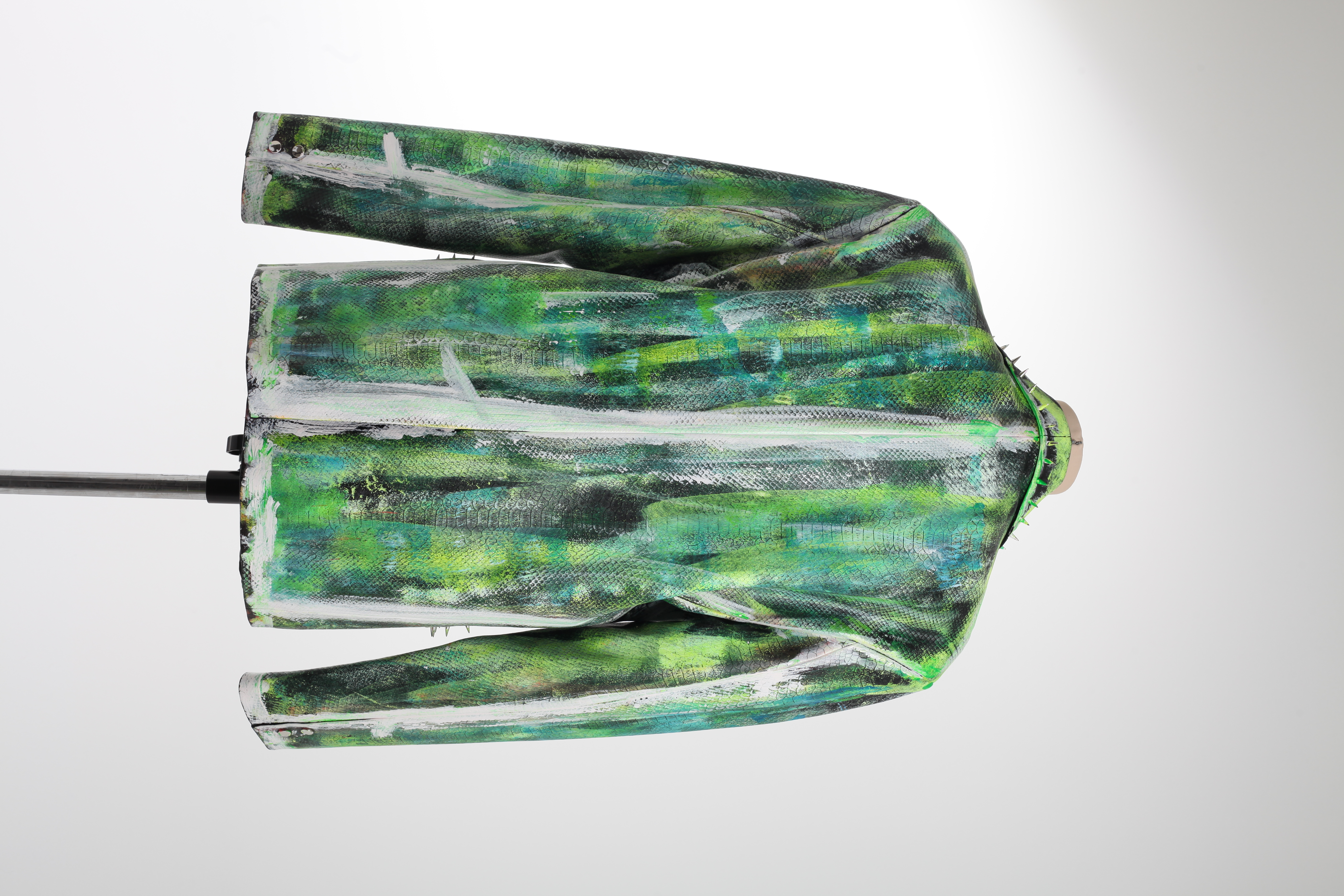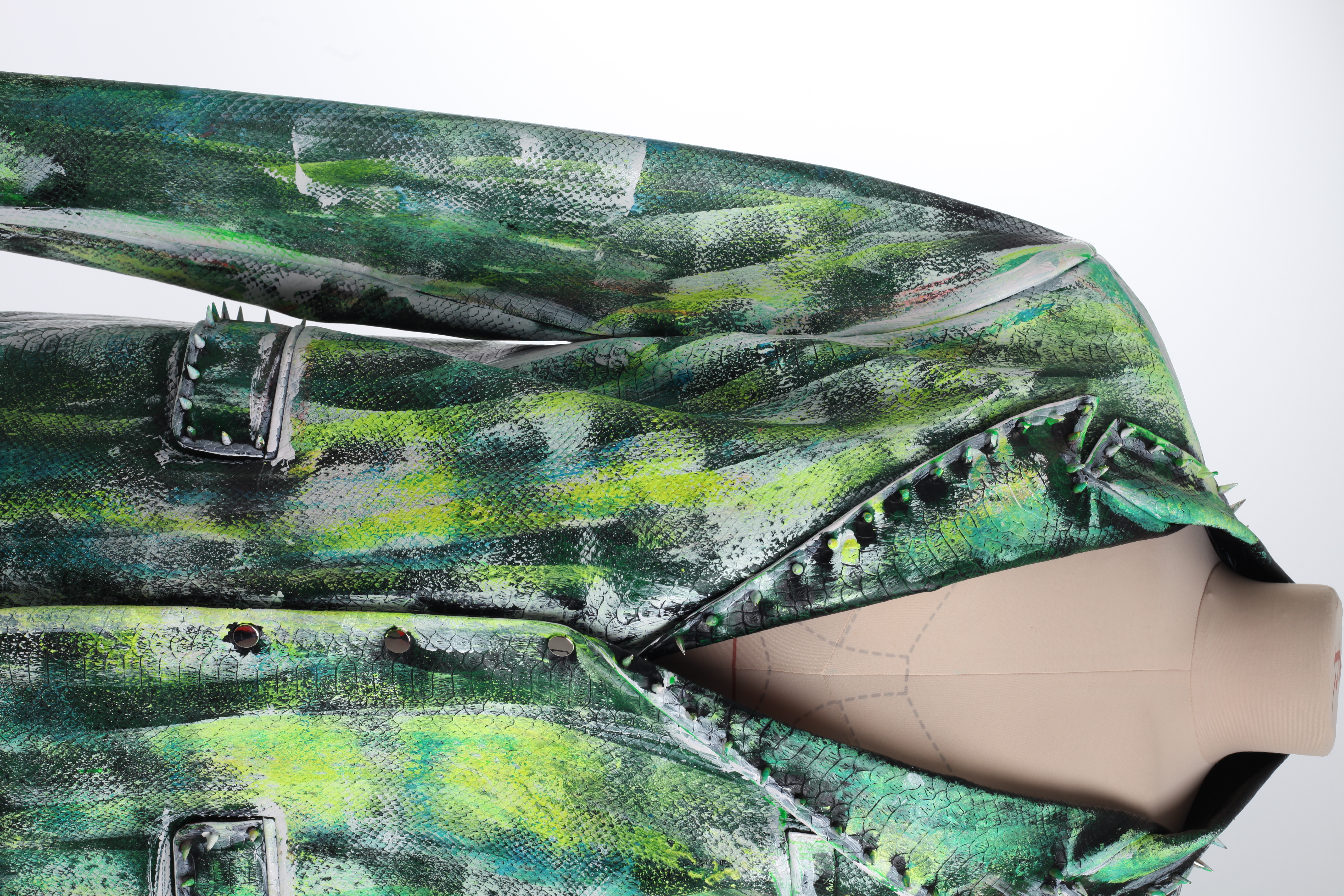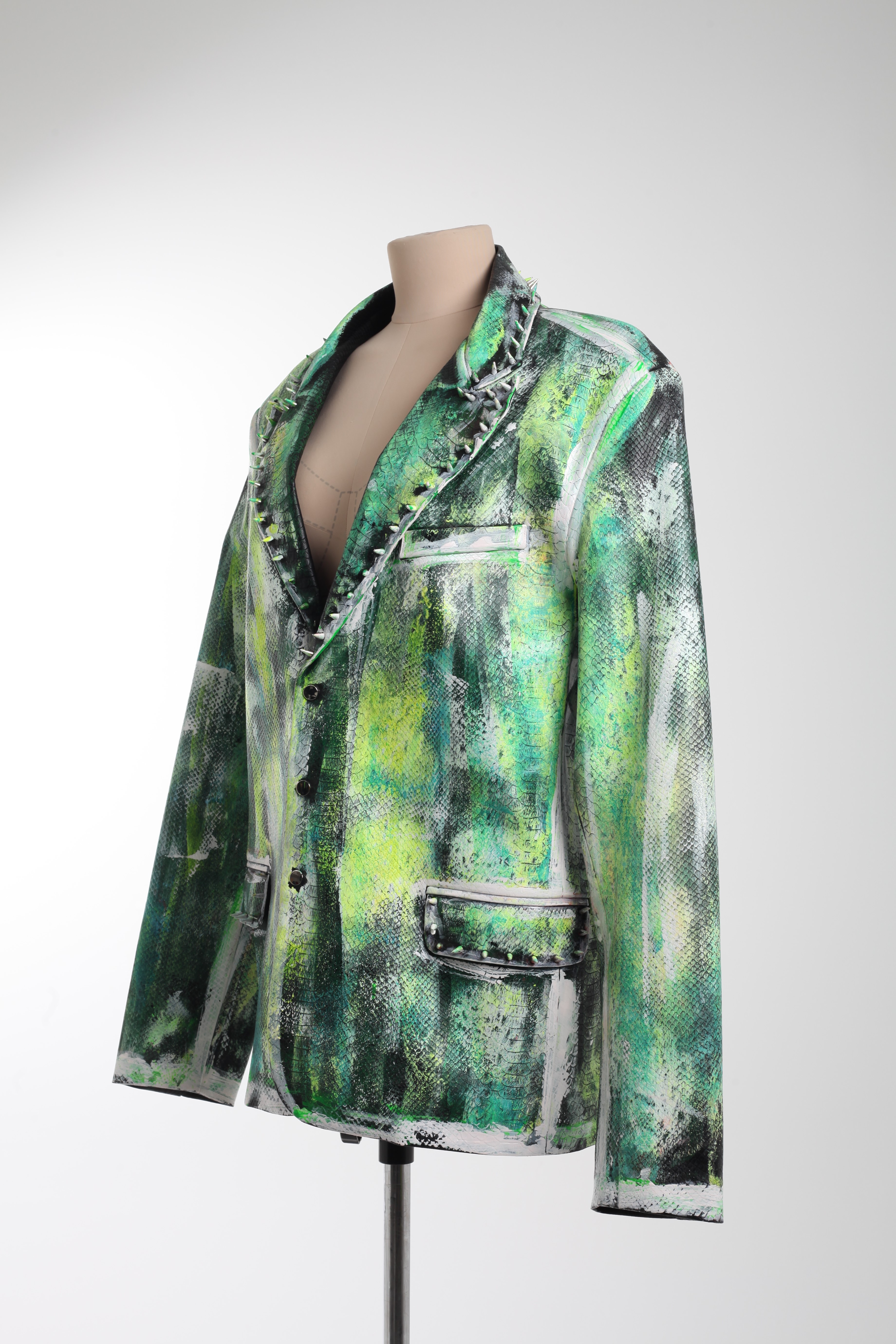 Пиджак зеленый из эко-кожи под рептилию с шипами
