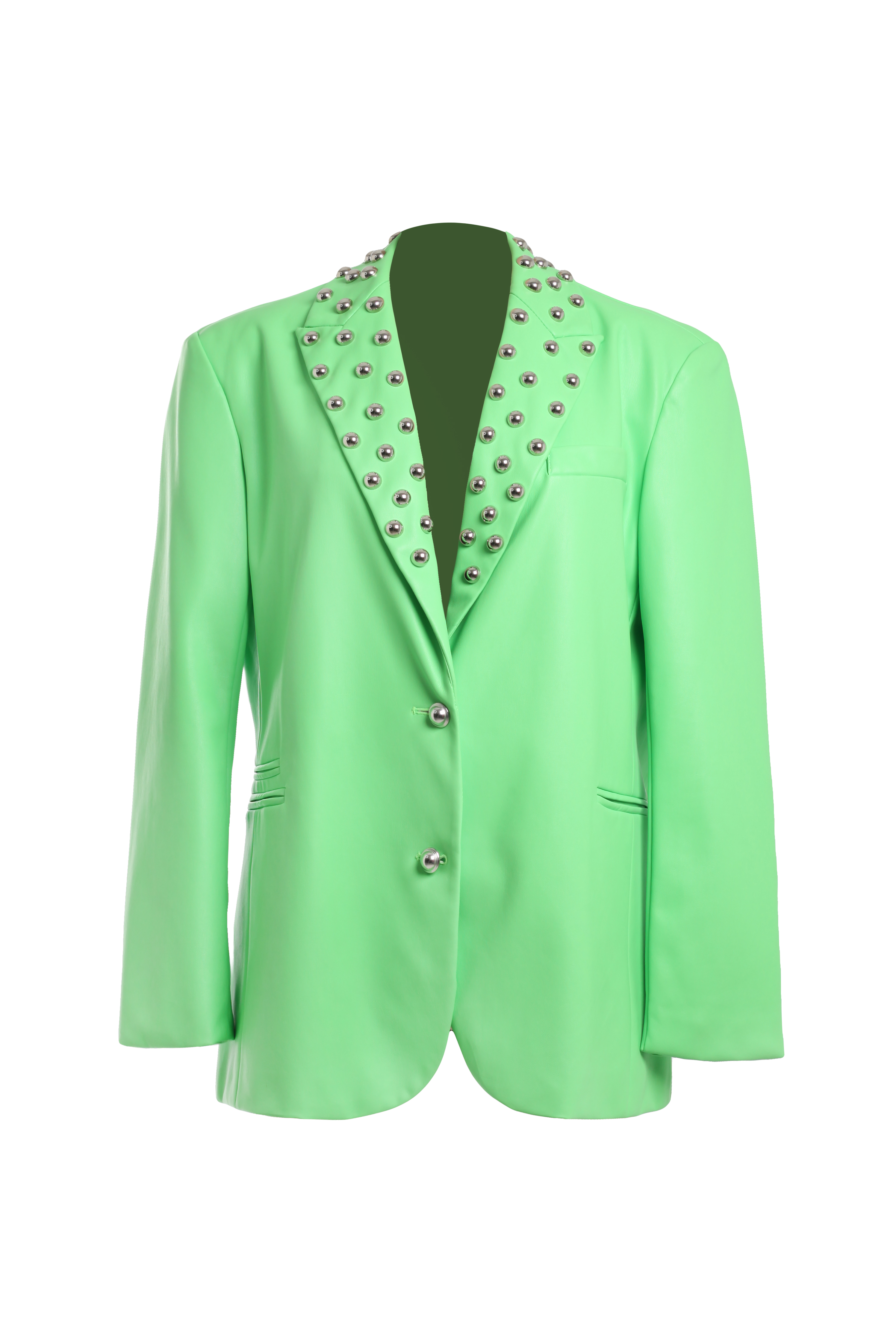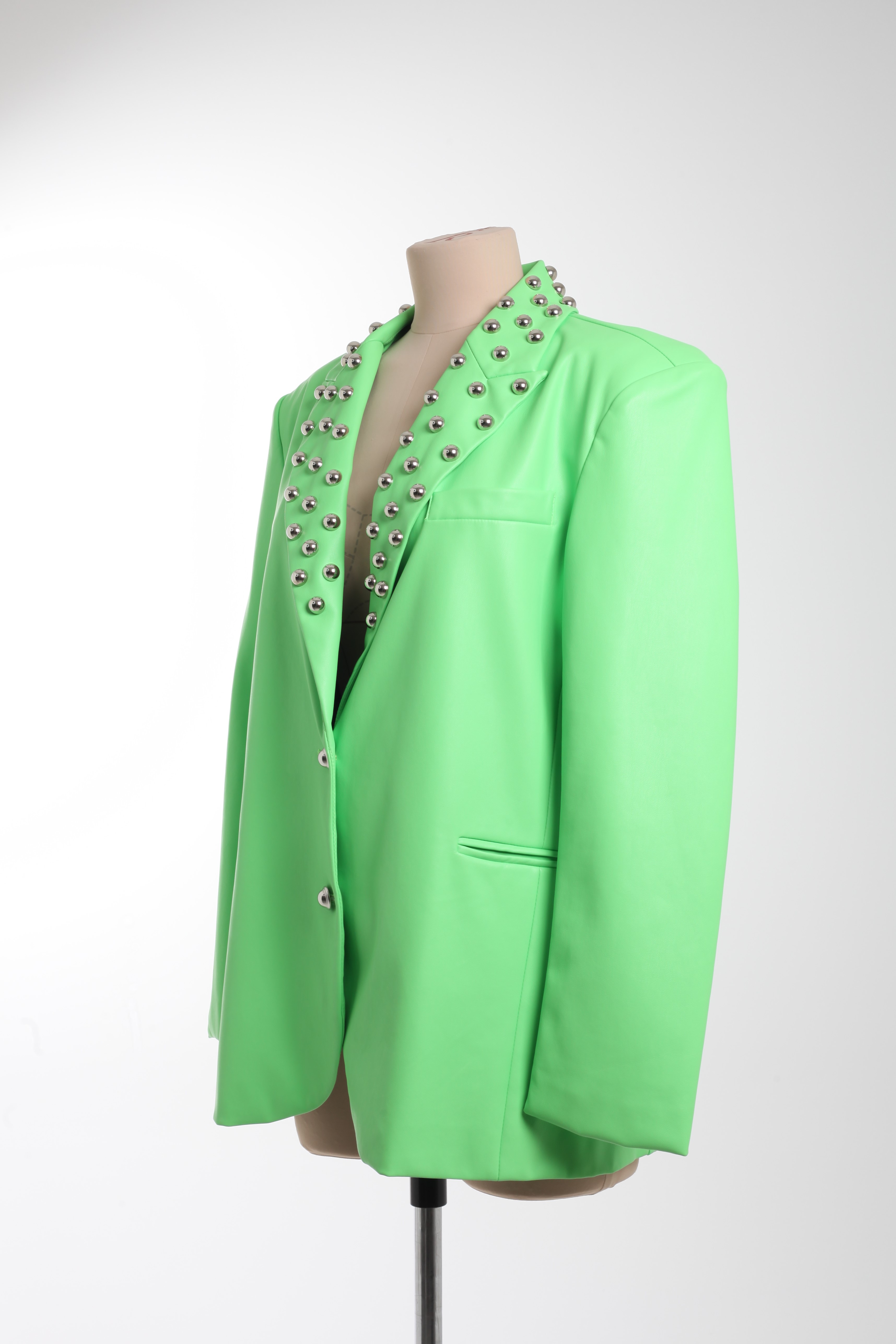 Пиджак зеленый из эко-кожи с фурнитурой на воротнике