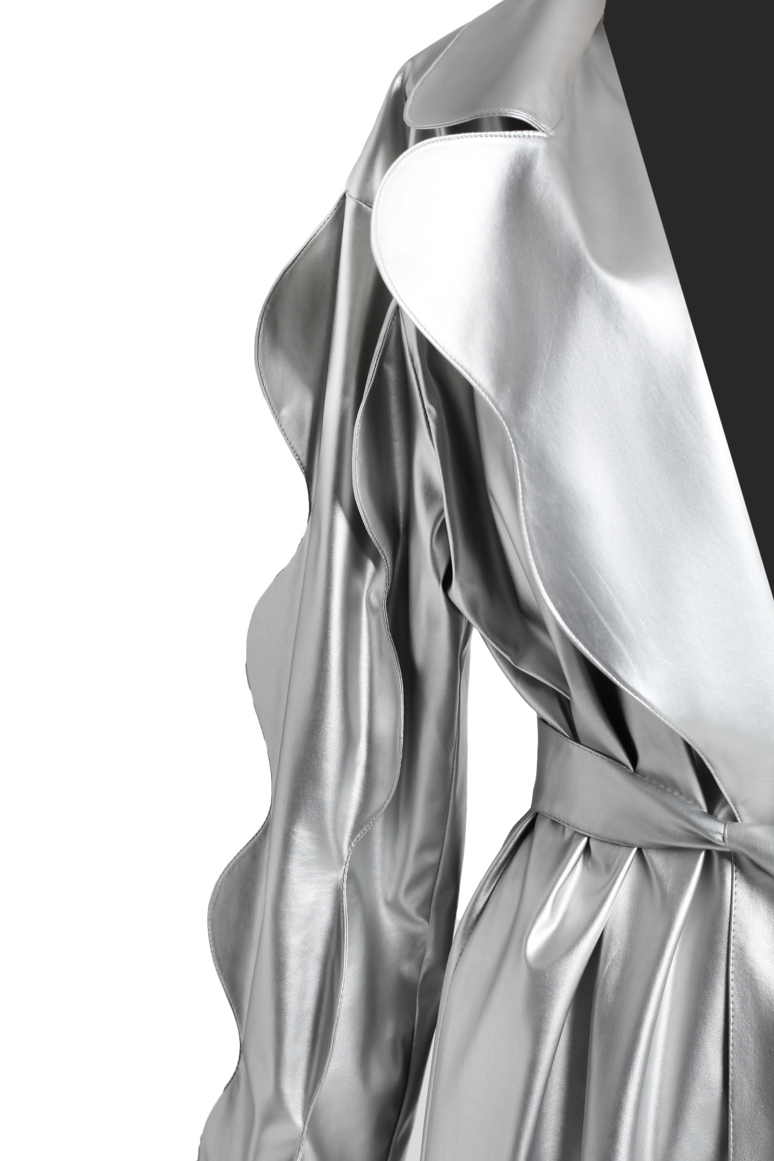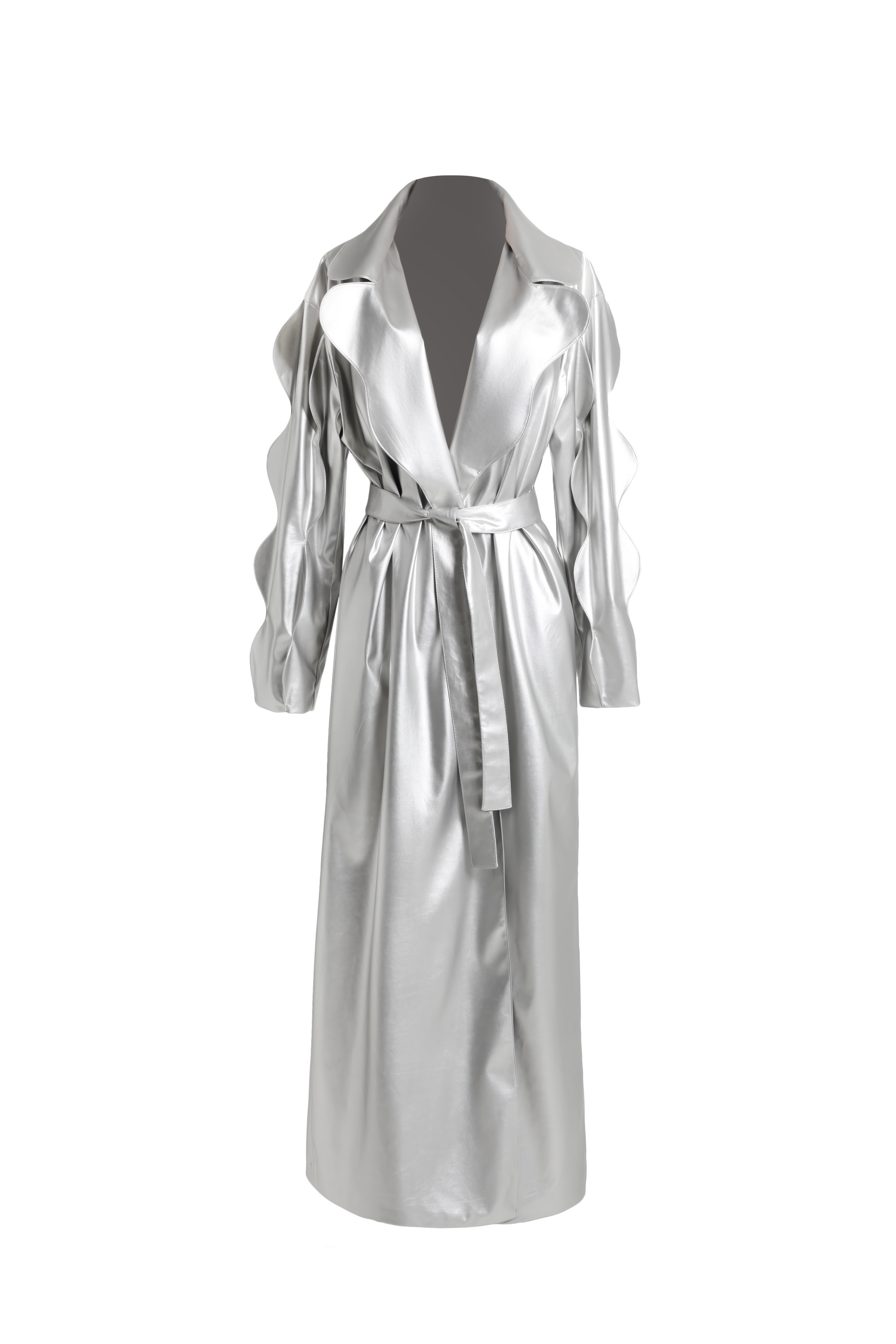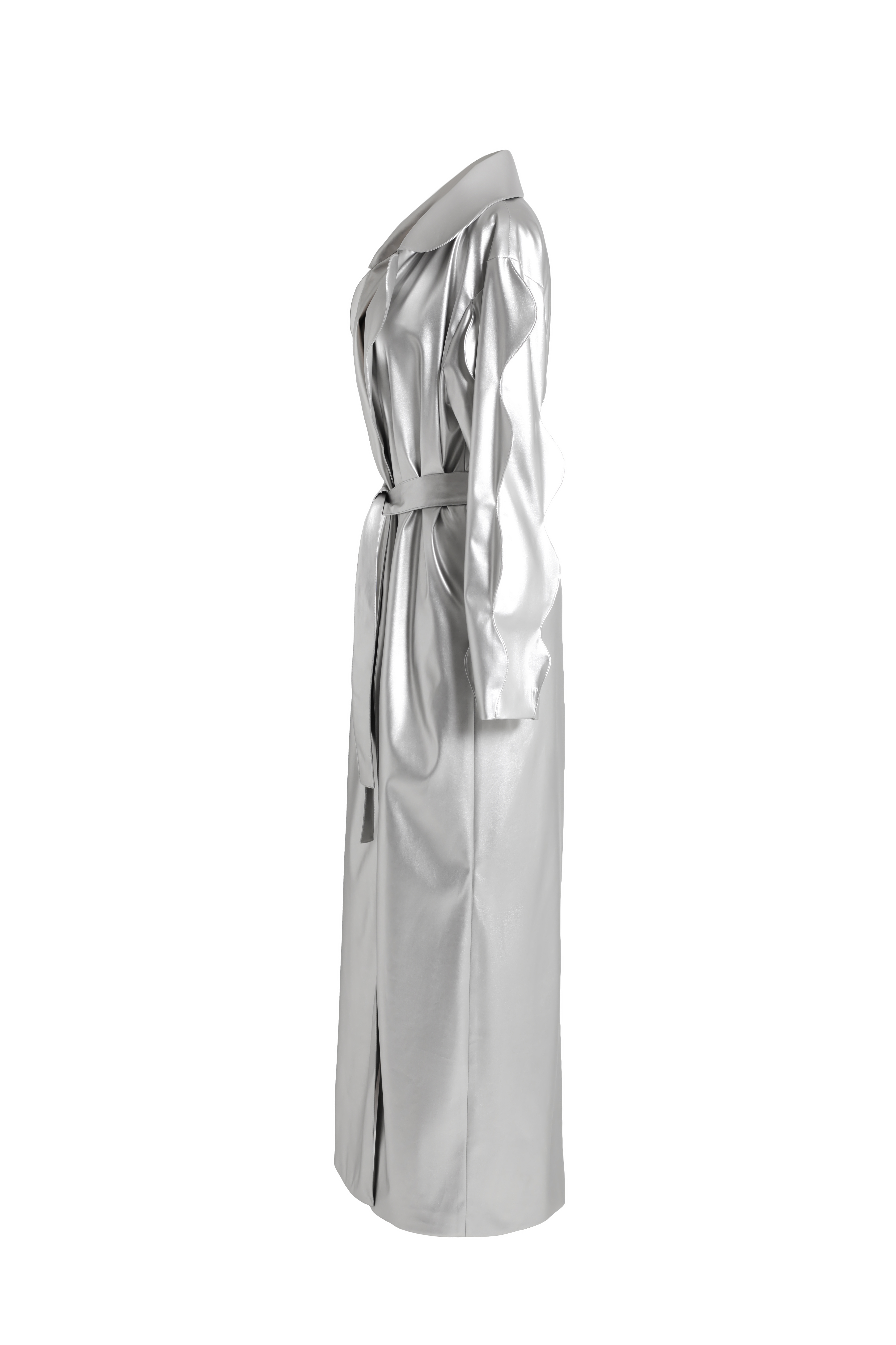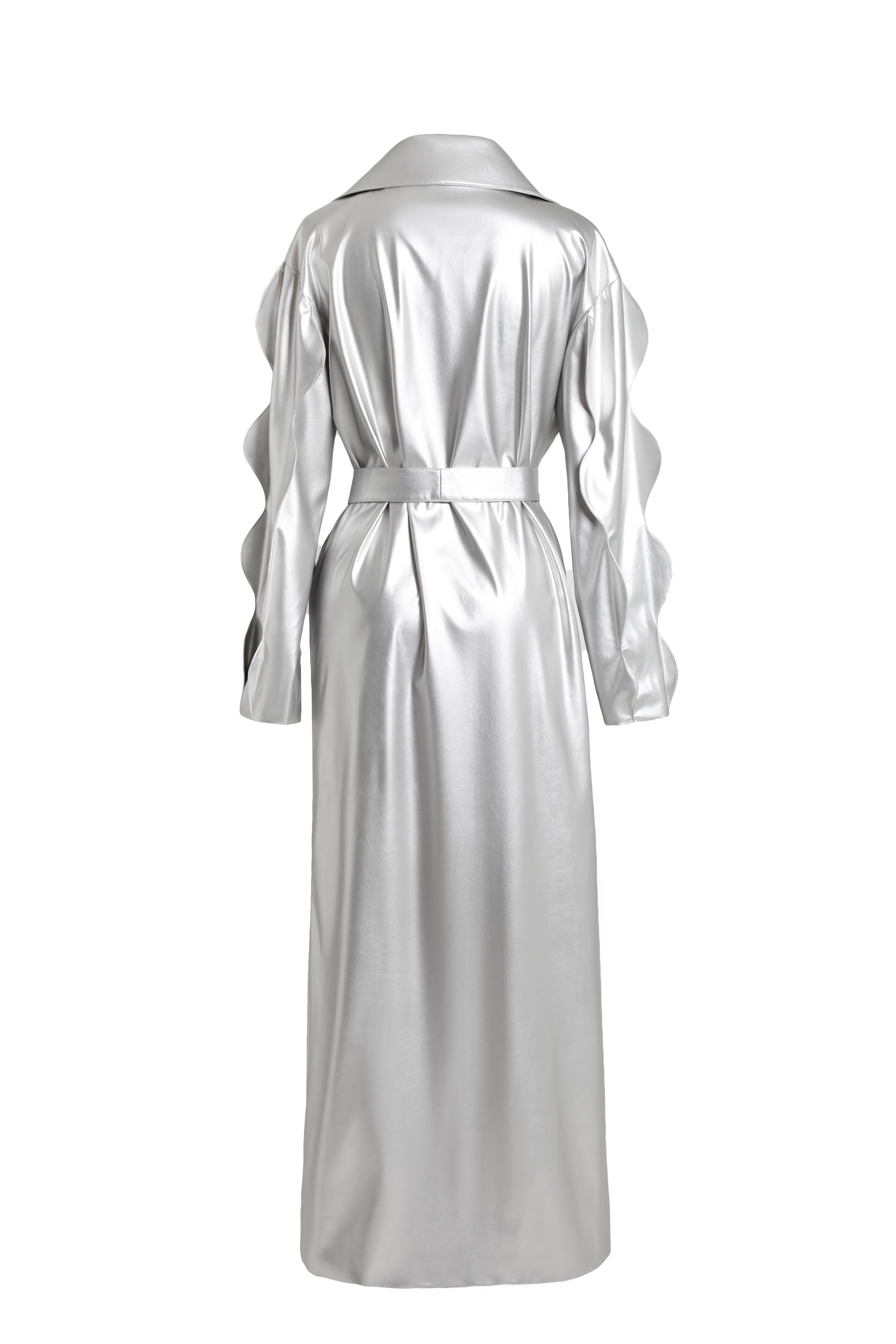 Плащ серебряный из эко-кожи с фигурными рукавами