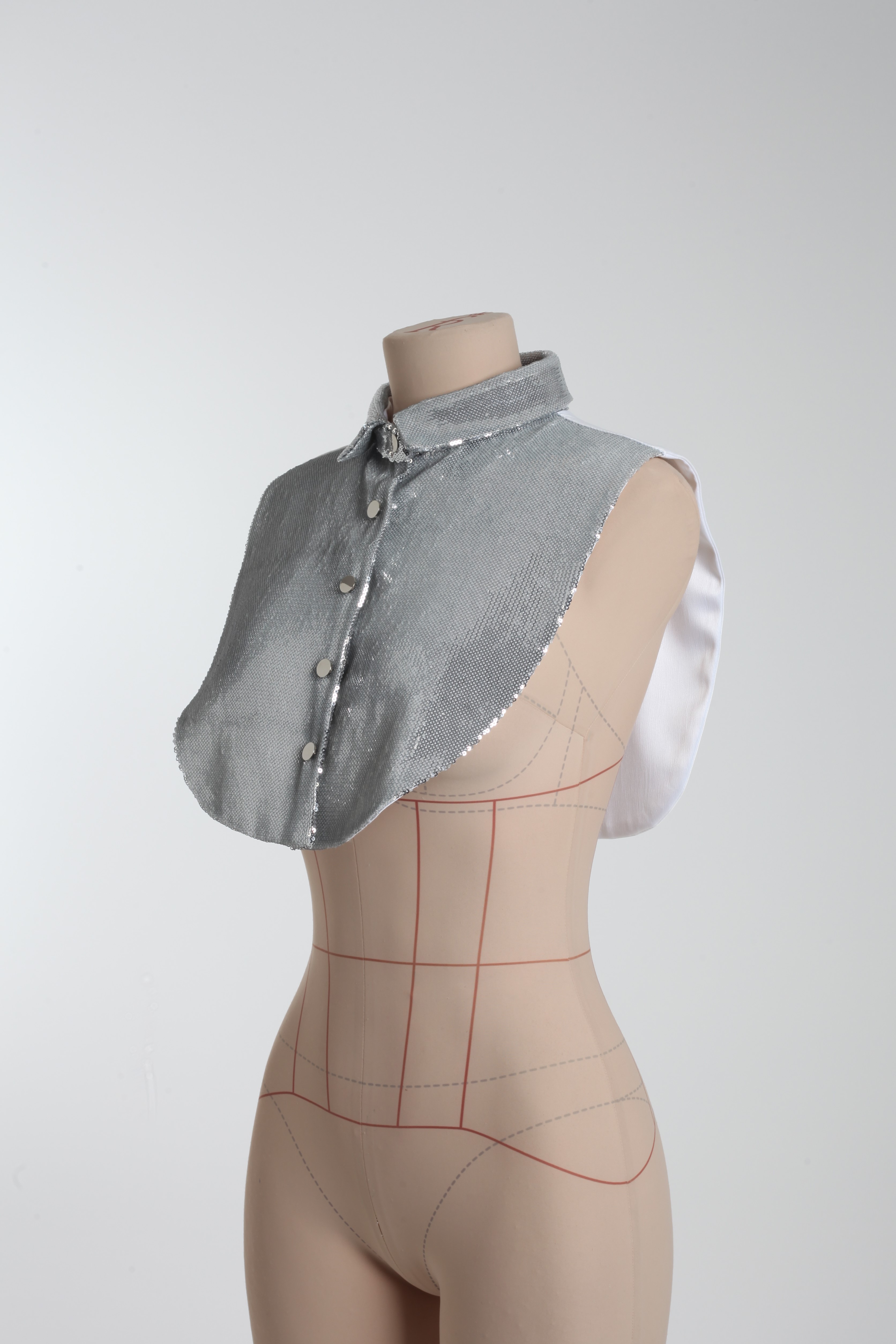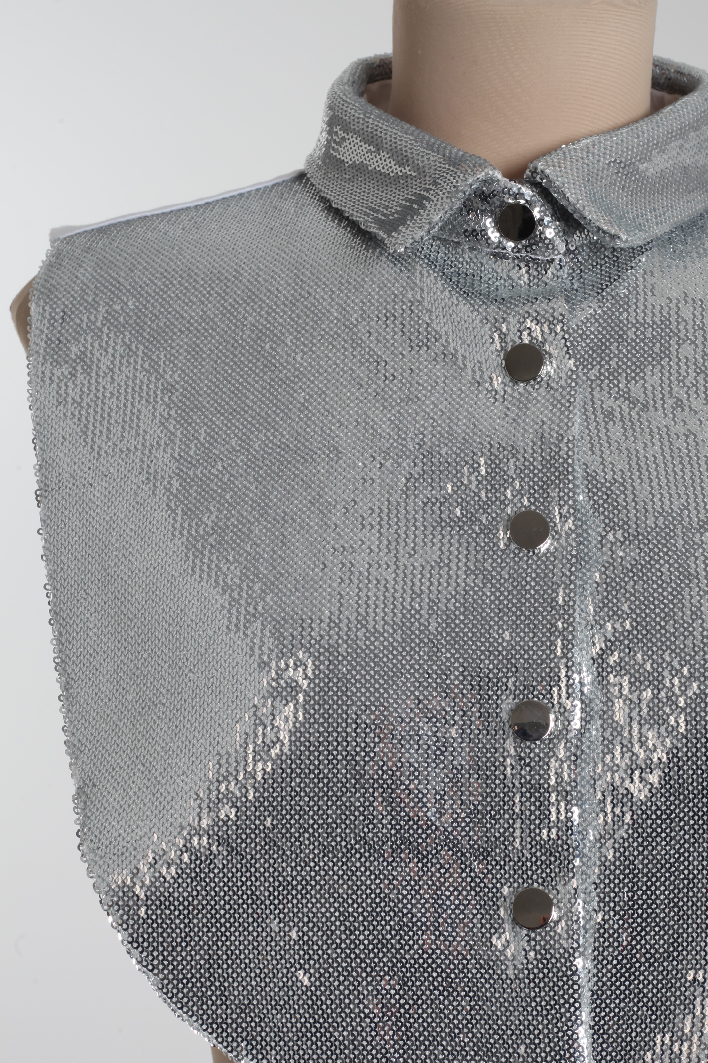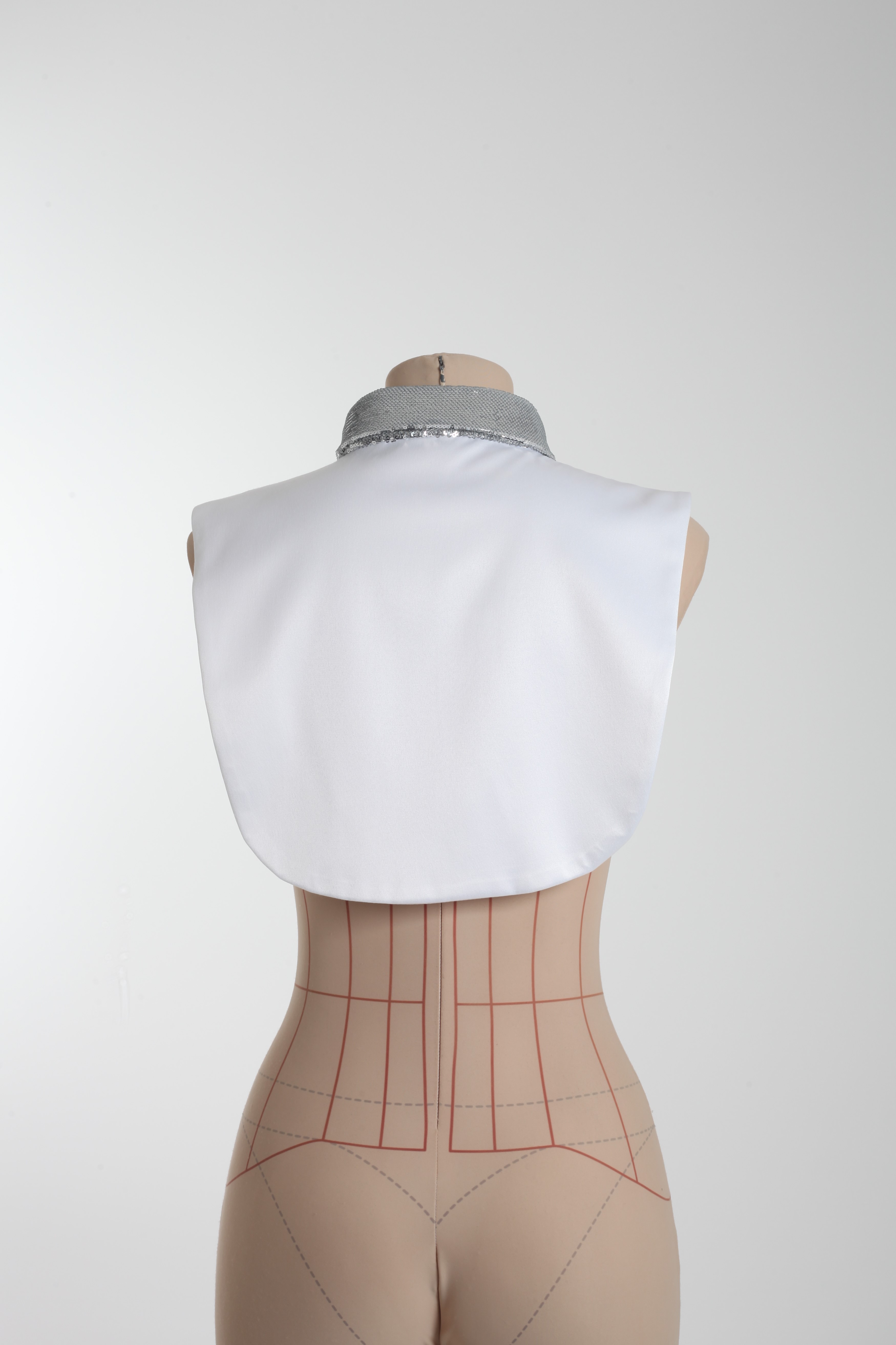 Манишка комбинированная серебряно-белая из пайеток и атласа